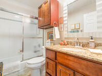 Beautifully updated Austin Model located in a resort-style country club community. This spacious 3-bedroom, 2-bath home features an open floor plan with vaulted ceilings and abundant natural light. The kitchen boasts shaker cabinets, solid surface countertops, and an island. The home features newer windows and accordion shutters, and lush landscaping. The split bedroom design includes a private guest suite area with two guest bedrooms, and an updated full bathroom, complete with an entryway and pocket door for added privacy. One guest bedroom offers private access to a charming outdoor atrium, perfect for relaxing with a morning coffee. The expansive primary suite opens to the large, screened lanai and features a beautifully renovated en suite bath with double vanities, a tiled walk-in shower, and a generous walk-in closet. Enjoy the tranquil setting of the lanai, enhanced by a retaining wall for privacy, and with only green space and water beyond the community wall.