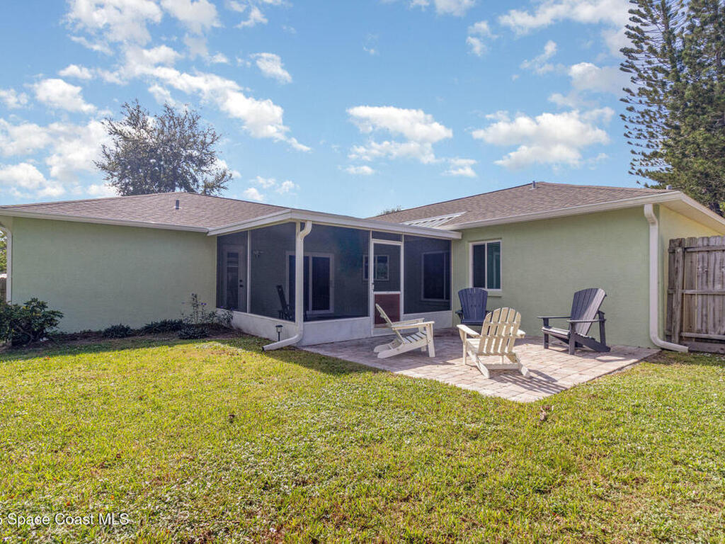 Island Oaks NEW IMPACT WINDOWS, New lights/most fixtures, New plantation shutters, New paver patio extension off screened porch, Fresh Paint inside & out gives this 4 bedroom, 2 bath, concrete block Merritt Island home many endless possibilities. The ''good'' flood zone X. Granite kitchen, Living/Dining combo, laminate & tile flooring. Many furnishings can convey, list available/agent will email you. Vaulted ceilings. Screened patio. fenced backyard. Recent Roof 2018 & A/C . Recent Hot water heater w/ pressurized tank. No adjacent neighbors on south side, common area HOA property for drainage/swale.