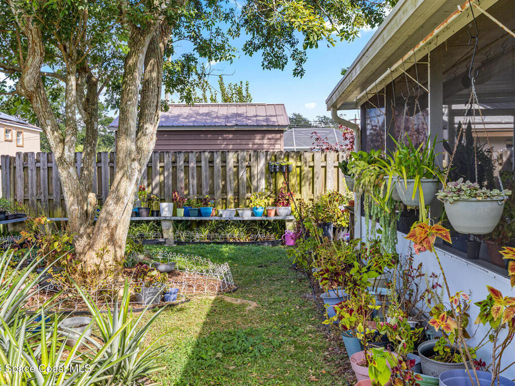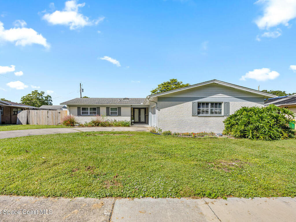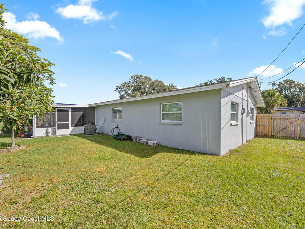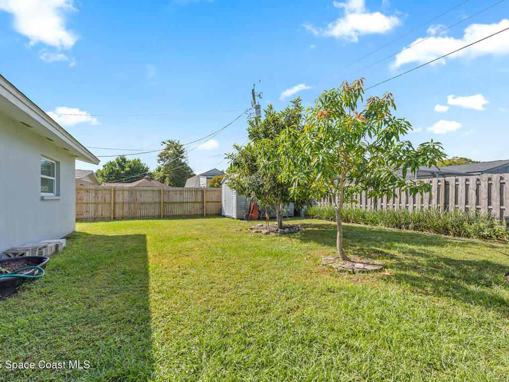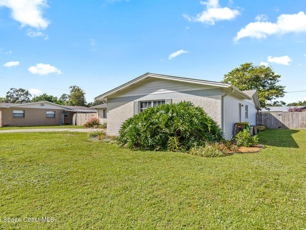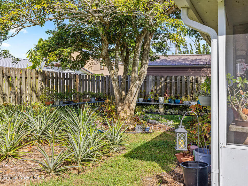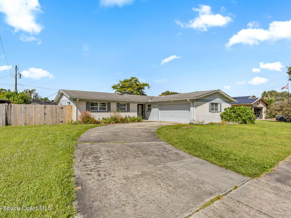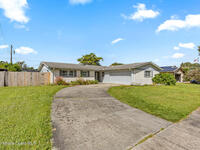 Well-maintained 3-bedroom, 2-bath home offering 1, 612 sq ft of comfortable living space. Features include a 2-car garage, covered screened-in porch, and a fantastic, private and fenced backyard, with mature mango and loquat trees plus a producing pineapple garden. Interior layout includes good-sized bedrooms and two full baths with tubs. Located in a family-friendly neighborhood within the Oak Park Elementary school district. Convenient access to Kennedy Space Center, Enchanted Forest Sanctuary, and beaches are less than an hour away.