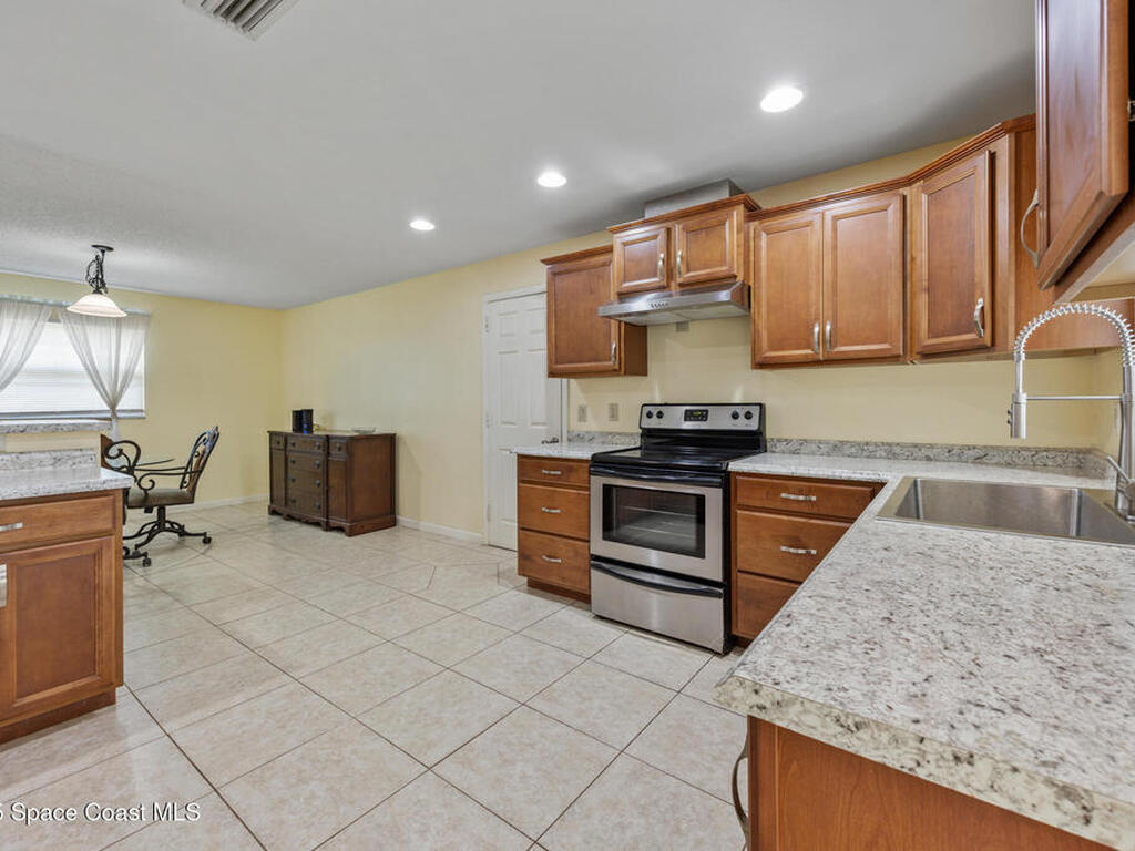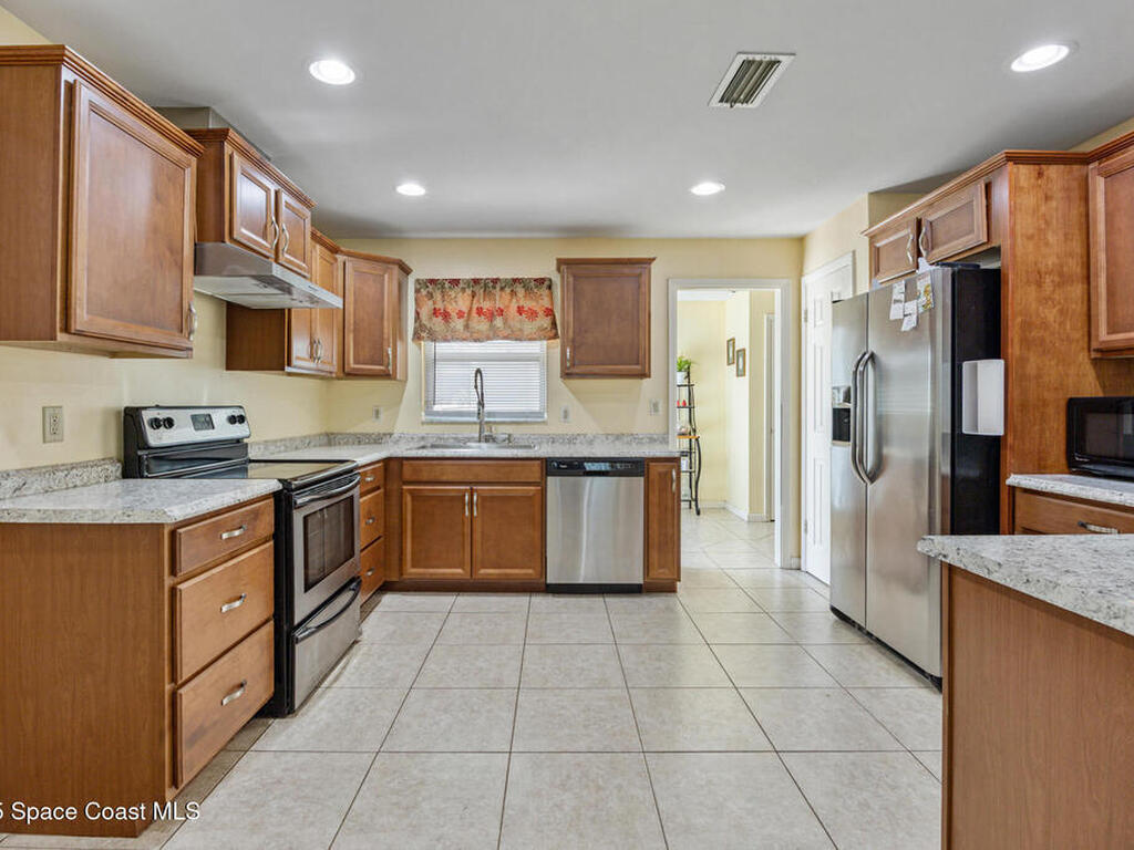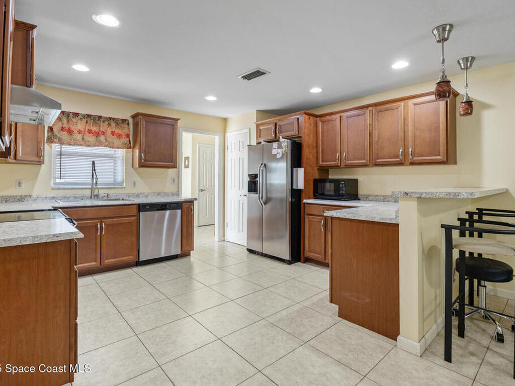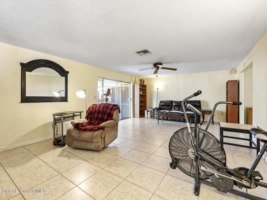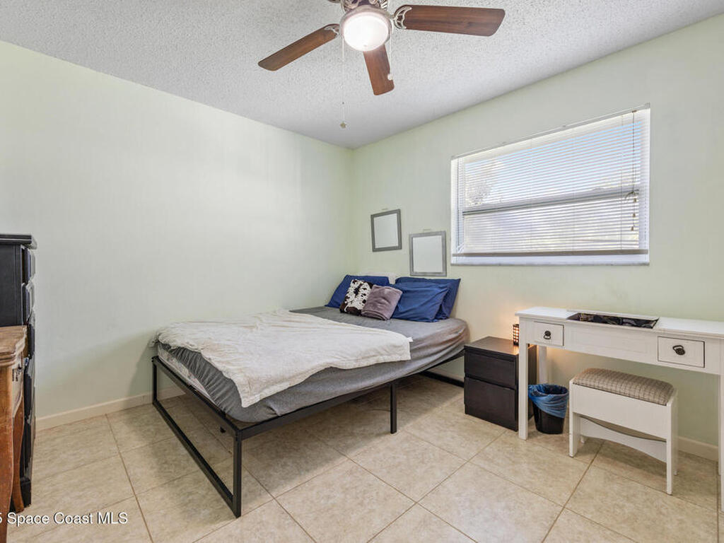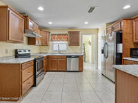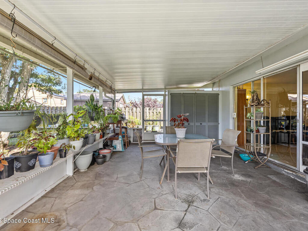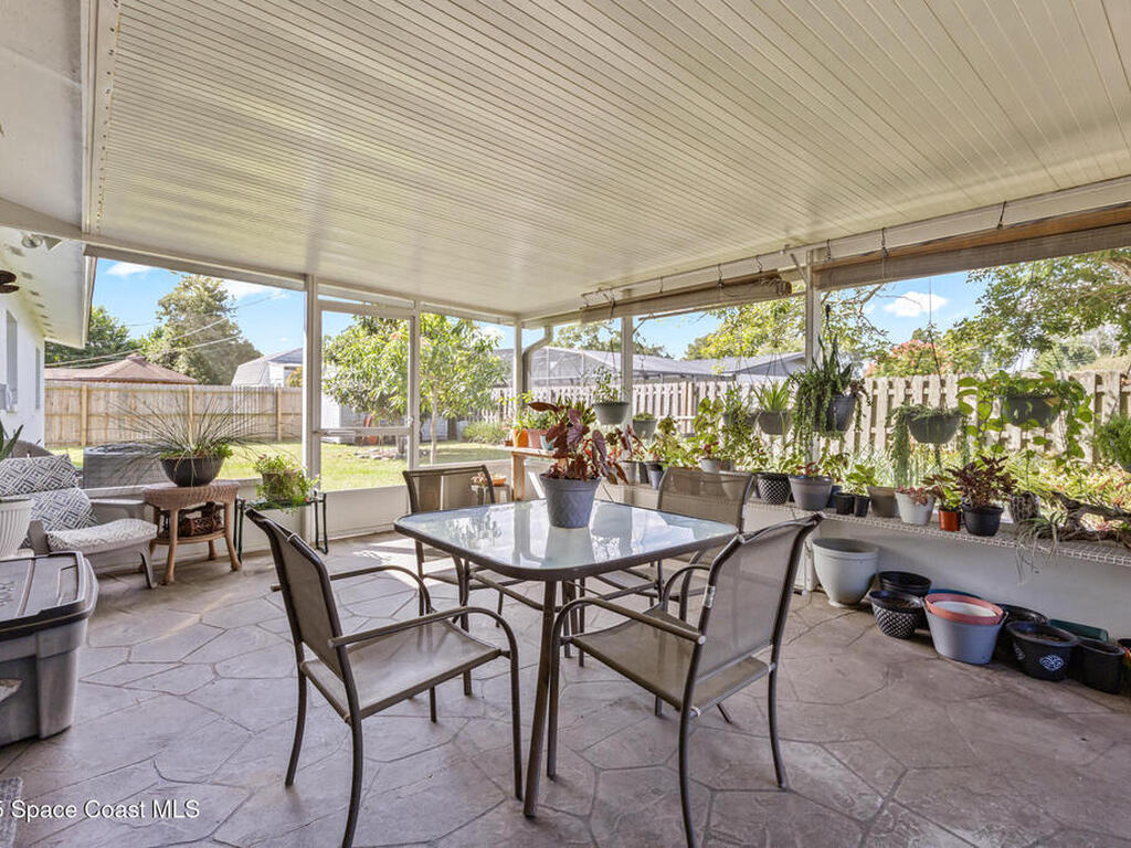Well-maintained 3-bedroom, 2-bath home offering 1, 612 sq ft of comfortable living space. Features include a 2-car garage, covered screened-in porch, and a fantastic, private and fenced backyard, with mature mango and loquat trees plus a producing pineapple garden. Interior layout includes good-sized bedrooms and two full baths with tubs. Located in a family-friendly neighborhood within the Oak Park Elementary school district. Convenient access to Kennedy Space Center, Enchanted Forest Sanctuary, and beaches are less than an hour away.