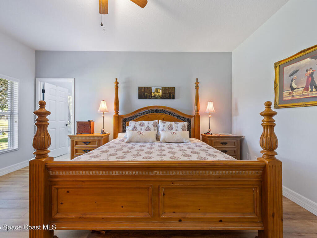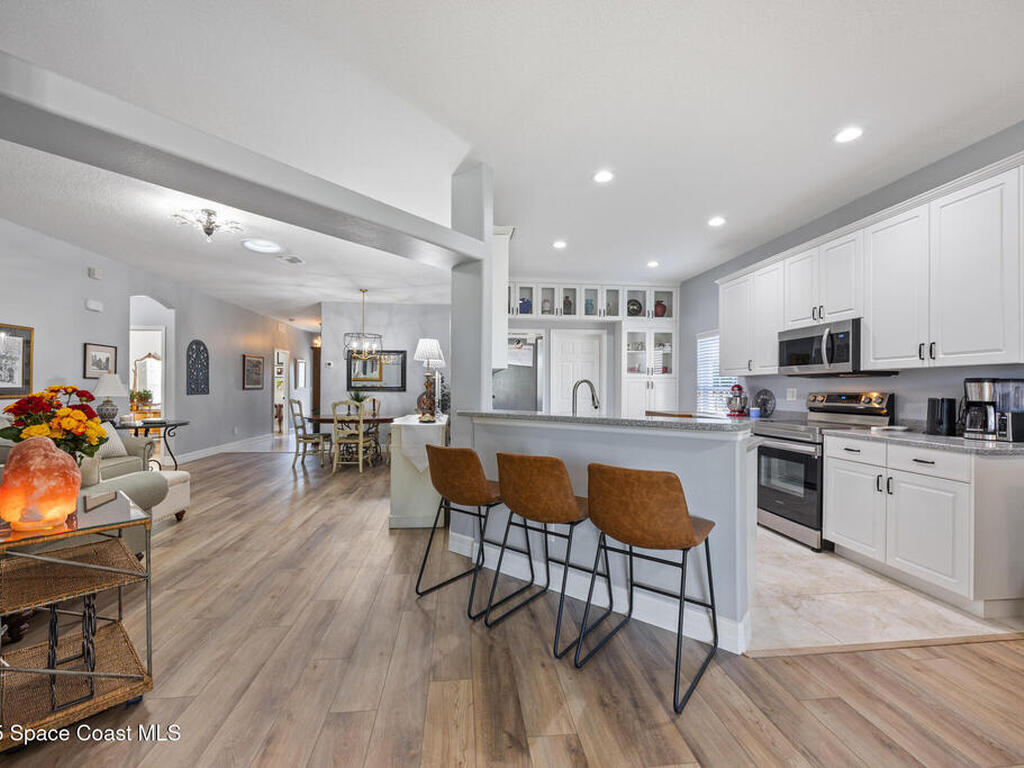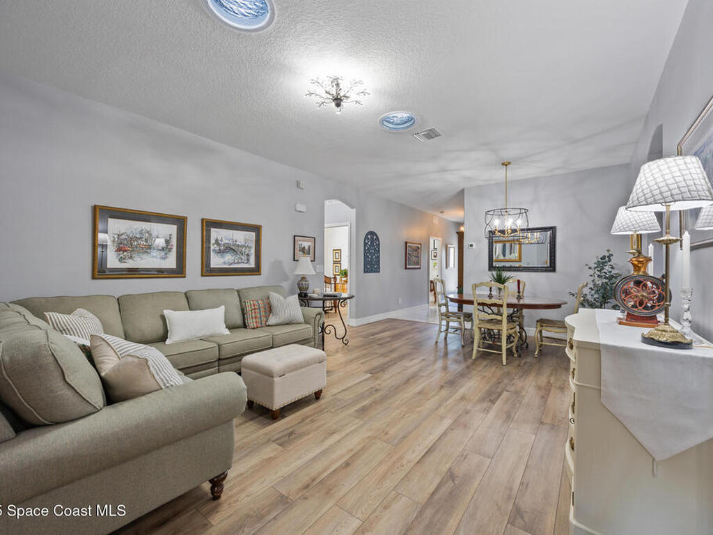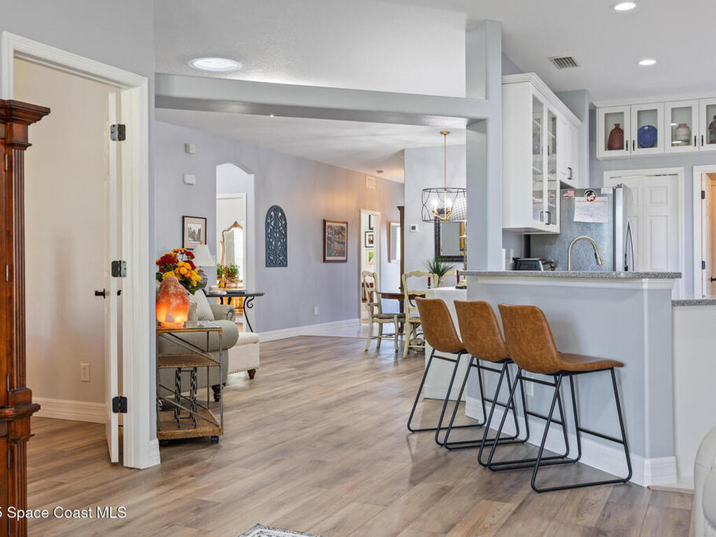 Extensively updated 4-bedroom lakefront home in the highly sought-after Indigo Crossing community of Viera. Major improvements include a 2024 roof with solar tubes, luxury vinyl flooring, fresh interior paint, remodeled baths, and 5'' baseboards. The raised and enclosed Florida room adds valuable living space with impact rated windows and its own AC unit (2023). The kitchen features 42'' shaker cabinets, stainless appliances, expanded lighting, a walk-in pantry, and extra cabinetry for storage. The primary suite offers a beautifully renovated bath and expanded closet. Additional updates include a 2022 water heater, storm door, custom sunroom shade, gutters, and a termite bond (2023). Enjoy a calm lake view in a community offering a pool, park, basketball court, and playground--all within a walk or bike ride or golf cart ride to Viera schools, shopping, and dining.