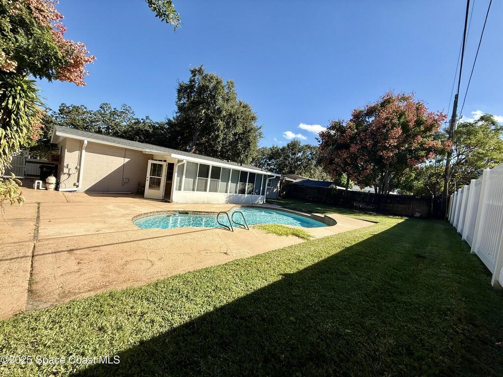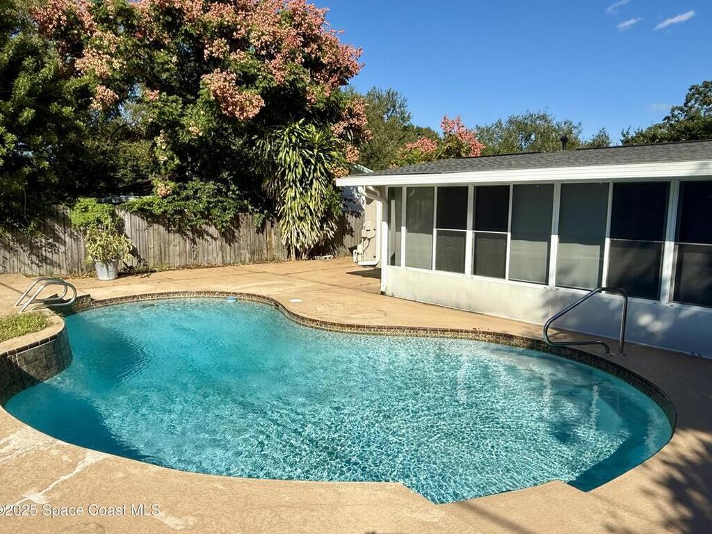 This charming three-bedroom, two-bathroom home features concrete block construction and boasts mature landscaping that enhances its curb appeal. Embrace the Florida lifestyle with a screened porch, a privacy-fenced backyard, and an inviting inground pool. The interior has been thoughtfully updated, including the kitchen, bathrooms, and flooring. Recent improvements include a gas hot water heater installed in 2017, a new roof and gutters added in 2023, an HVAC system from 2016, and modern appliances such as a gas range and dishwasher, both acquired in 2023 and 2022, respectively. This residence is truly move-in ready.