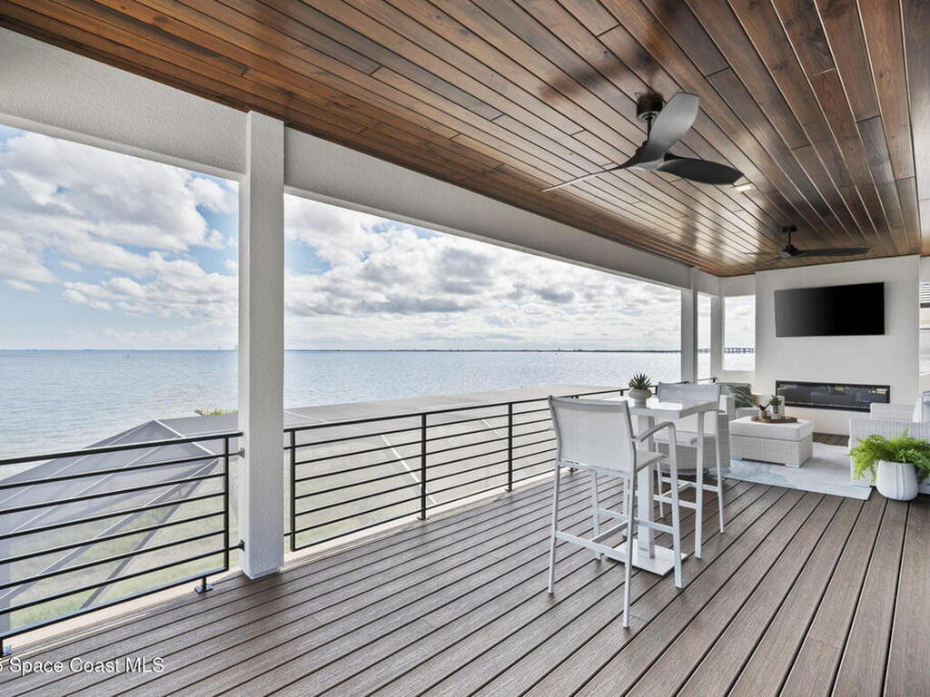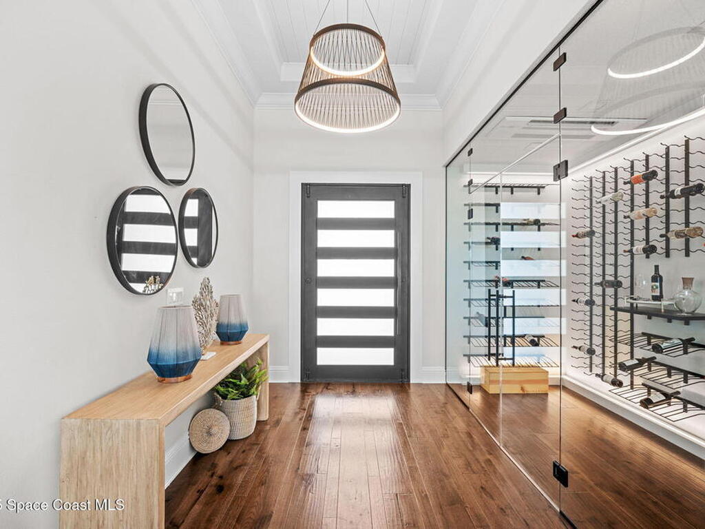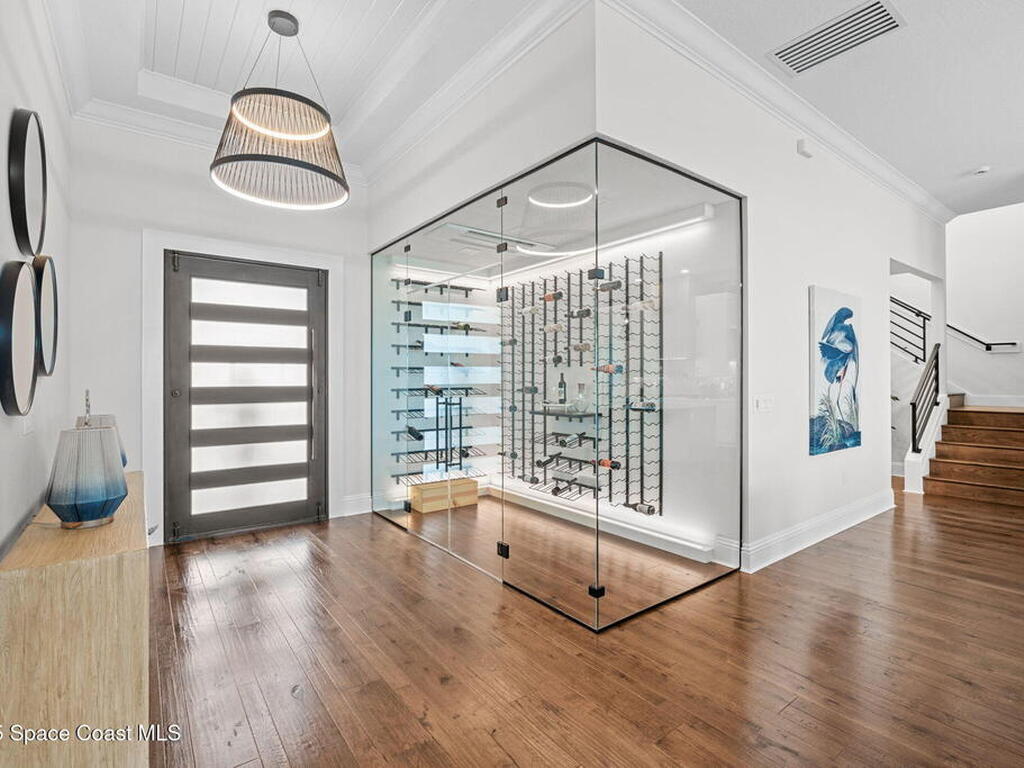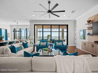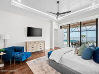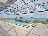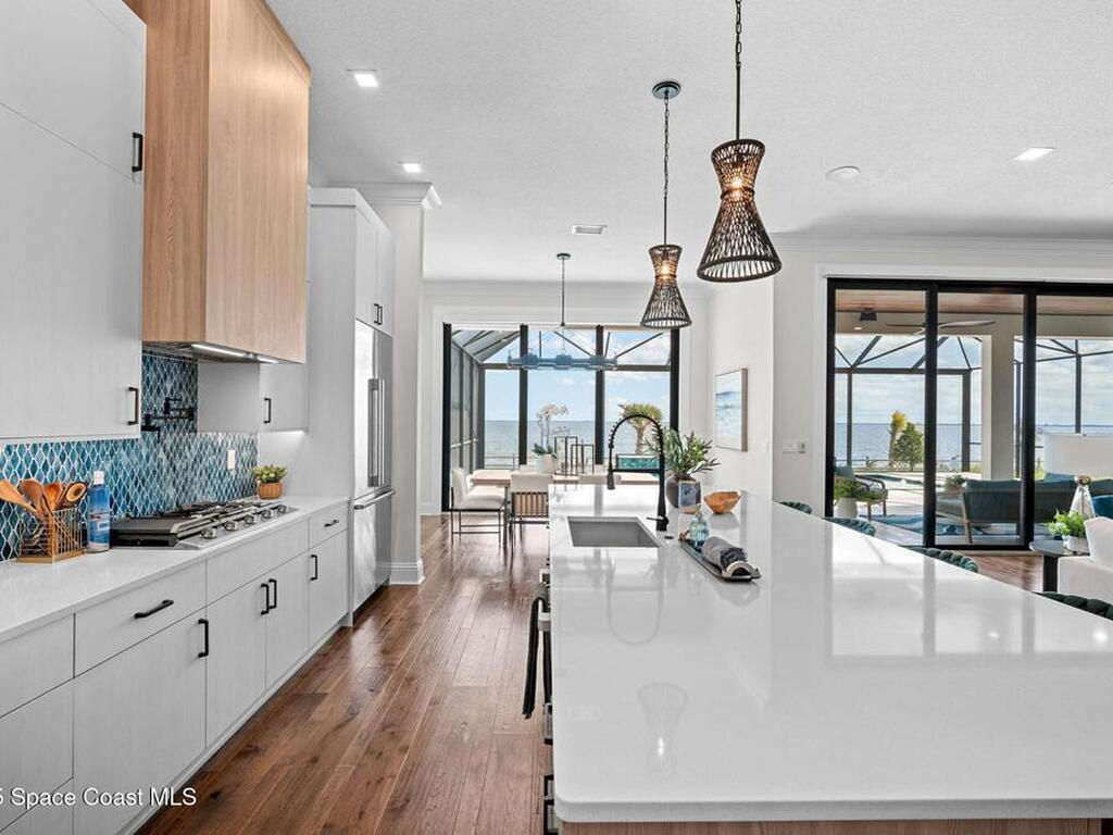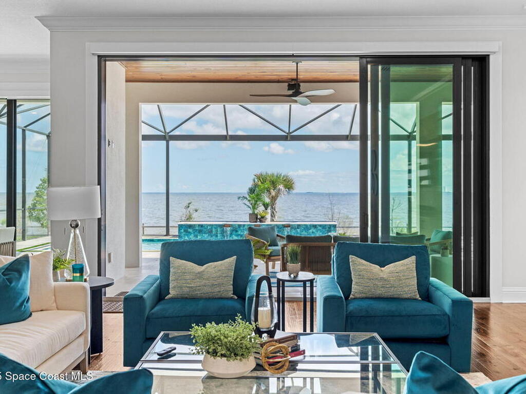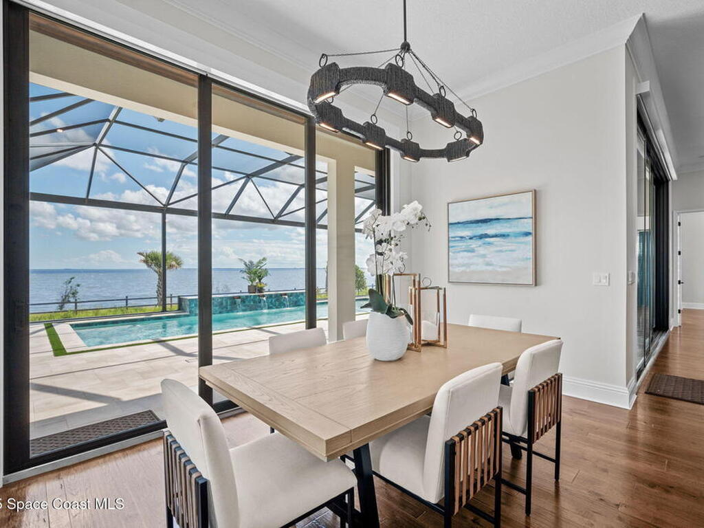 The Shores at Tranquility is a gated lifestyle community with a planned marina, town center, clubhouse, resort-style pool, fitness center, pickleball courts, and more.Experience luxury waterfront living in this beautiful custom Hulbert Homes build featuring 4 bedrooms, 3.5 bathrooms, and a 4-car garage. This home offers breathtaking 3-5 mile views across the Intracoastal Waterway.Inside, elegant details include a climate-controlled wine room, 10' sliders, electronic roll-down shades, and a custom iron pivot entry door.The open-concept design includes a chef's kitchen with a large island, gas stove, and stainless Dacor appliances. The screened saltwater pool with sun shelf and waterfall creates a private retreat perfect for watching rocket launches. A hidden ''Florida Basement'' adds extra storage, blending innovation, comfort, and coastal sophistication.Don't miss this once-in-a-lifetime waterfront home -- a place to build lasting memories and your family legacy.