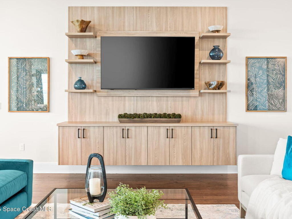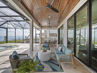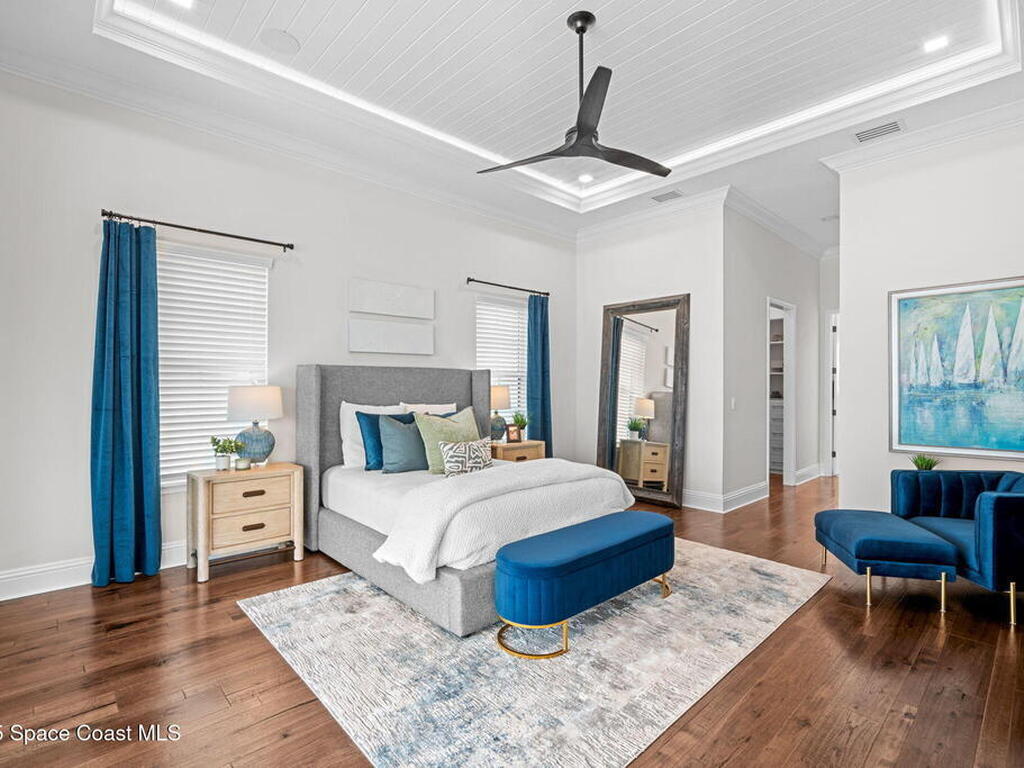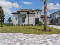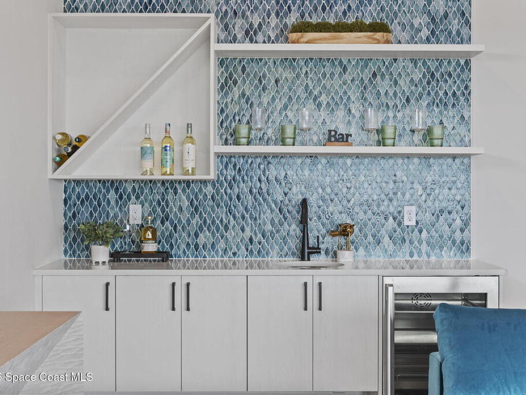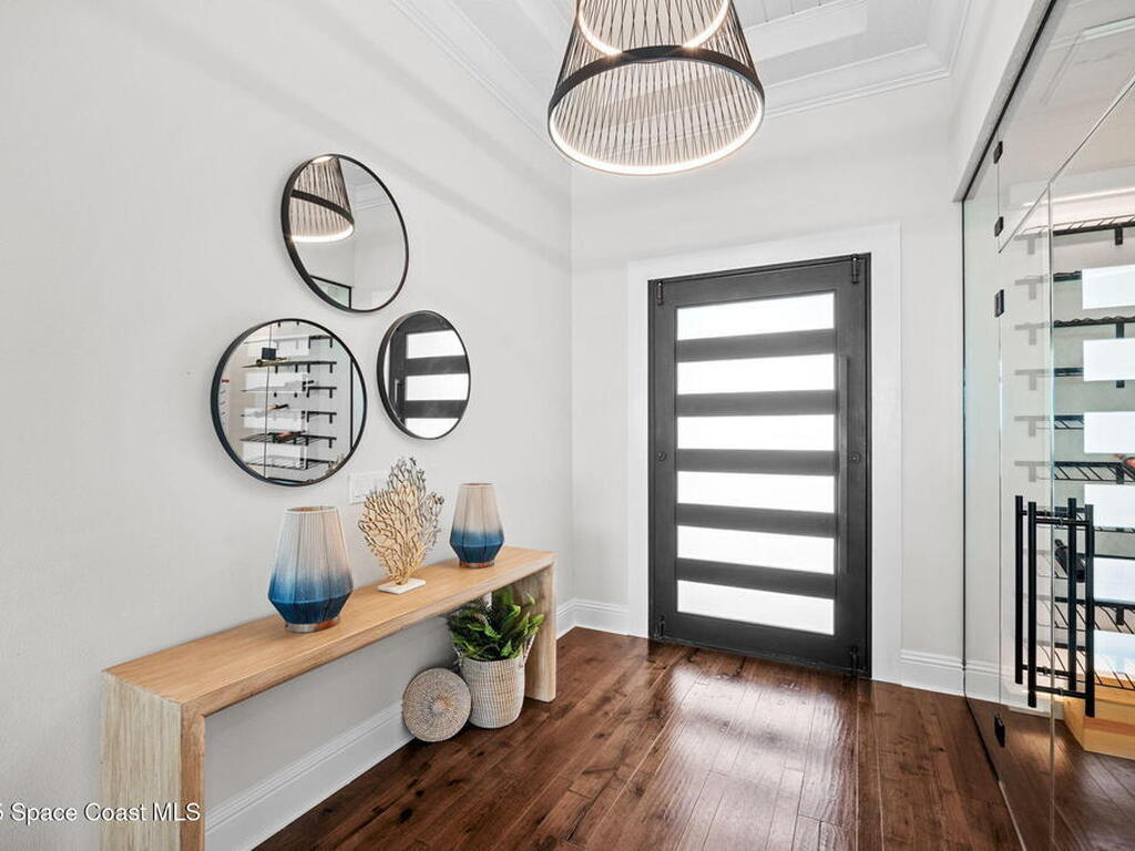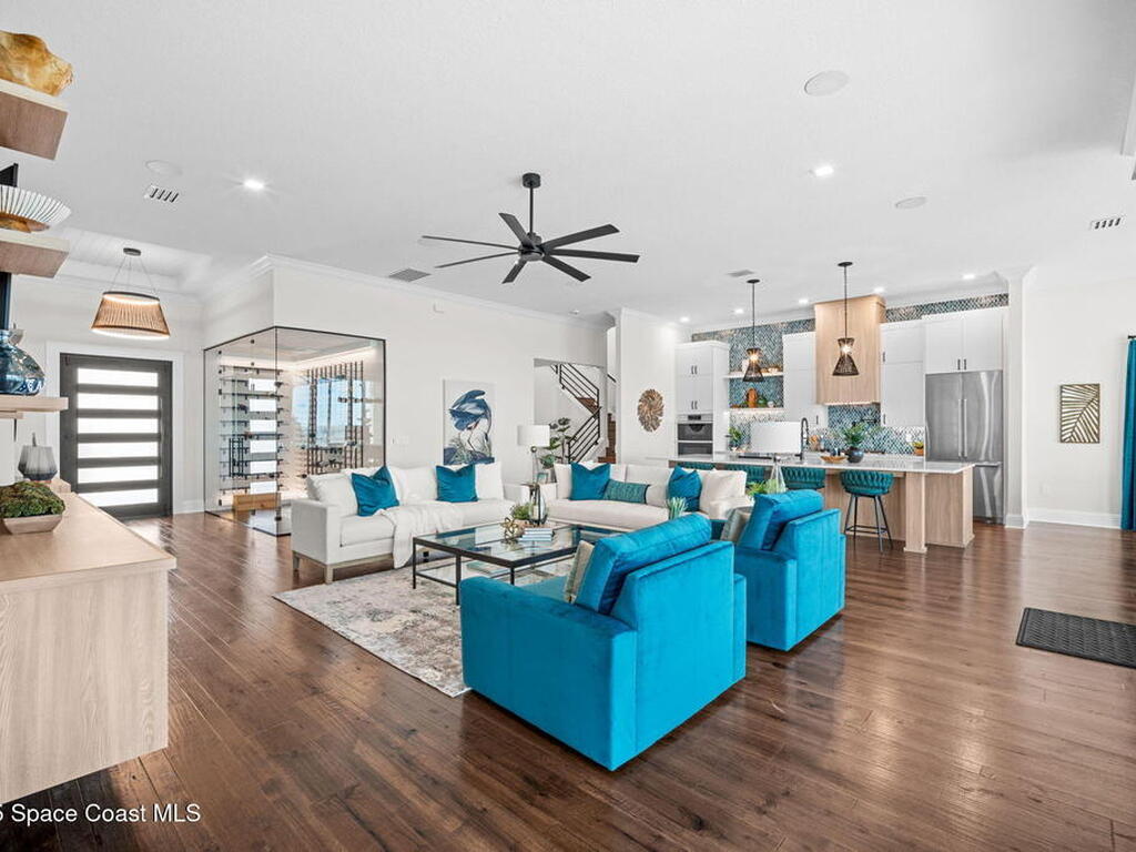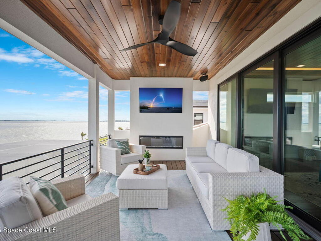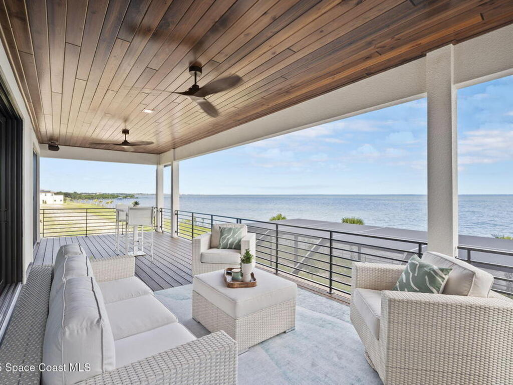 The Shores at Tranquility is a gated lifestyle community with a planned marina, town center, clubhouse, resort-style pool, fitness center, pickleball courts, and more.Experience luxury waterfront living in this beautiful custom Hulbert Homes build featuring 4 bedrooms, 3.5 bathrooms, and a 4-car garage. This home offers breathtaking 3-5 mile views across the Intracoastal Waterway.Inside, elegant details include a climate-controlled wine room, 10' sliders, electronic roll-down shades, and a custom iron pivot entry door.The open-concept design includes a chef's kitchen with a large island, gas stove, and stainless Dacor appliances. The screened saltwater pool with sun shelf and waterfall creates a private retreat perfect for watching rocket launches. A hidden ''Florida Basement'' adds extra storage, blending innovation, comfort, and coastal sophistication.Don't miss this once-in-a-lifetime waterfront home -- a place to build lasting memories and your family legacy.