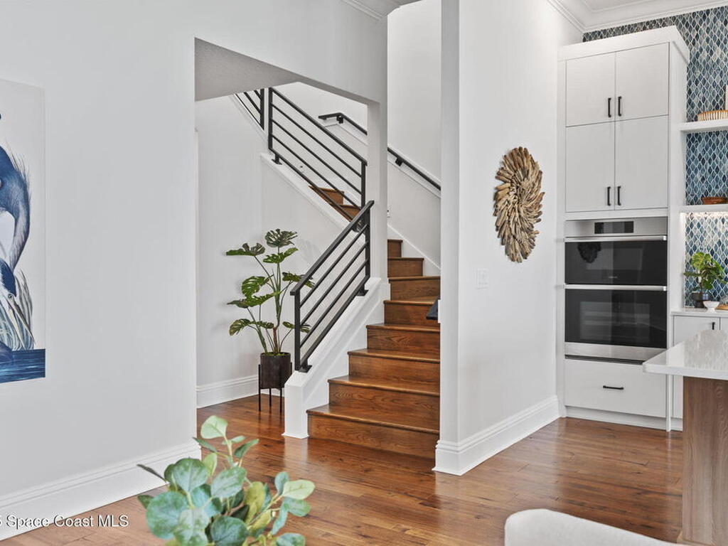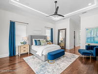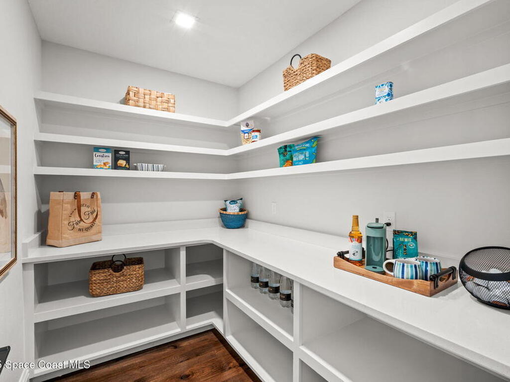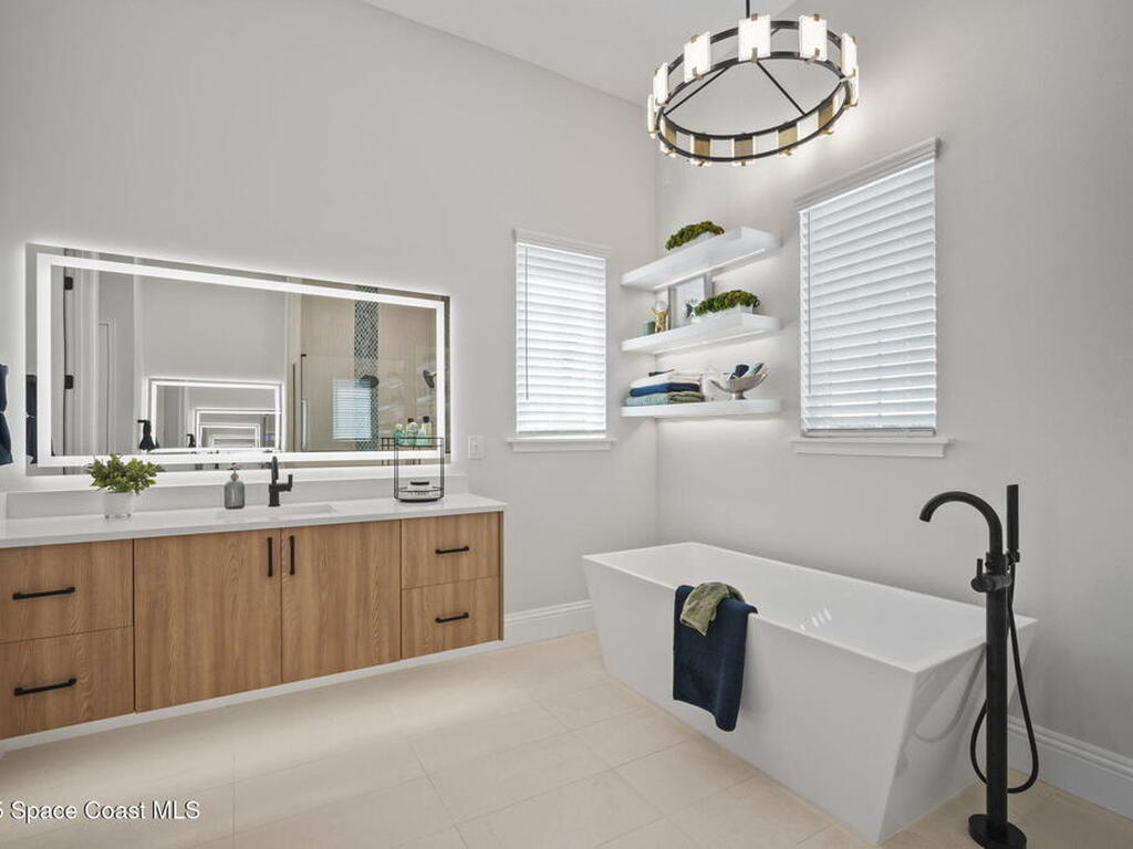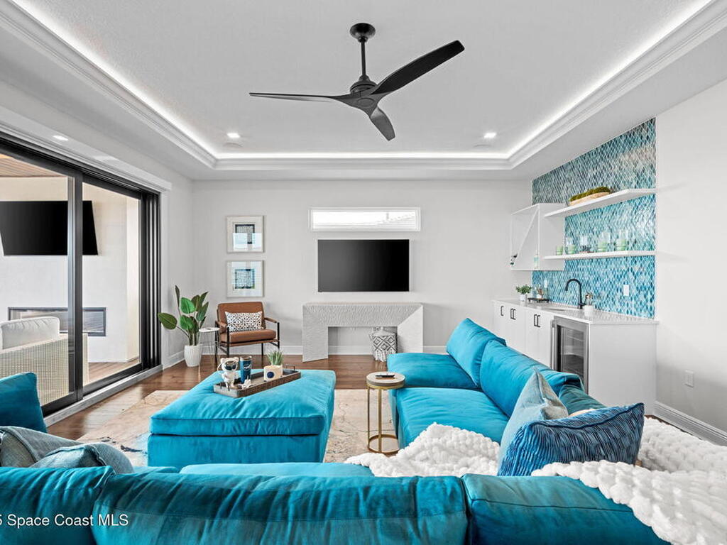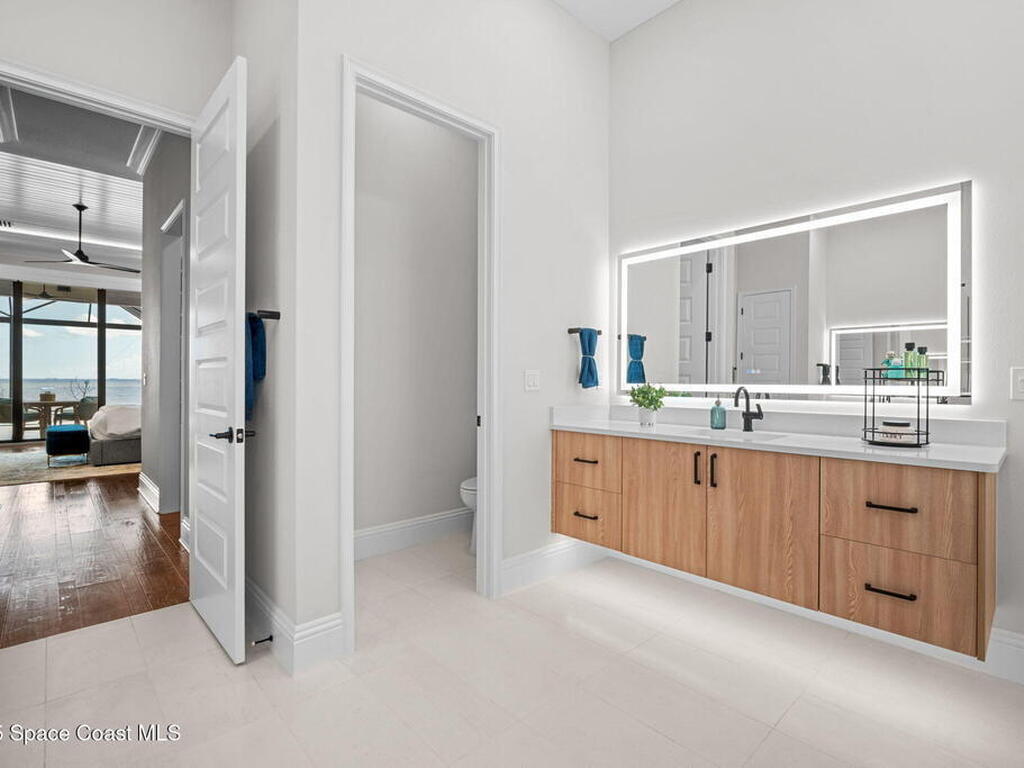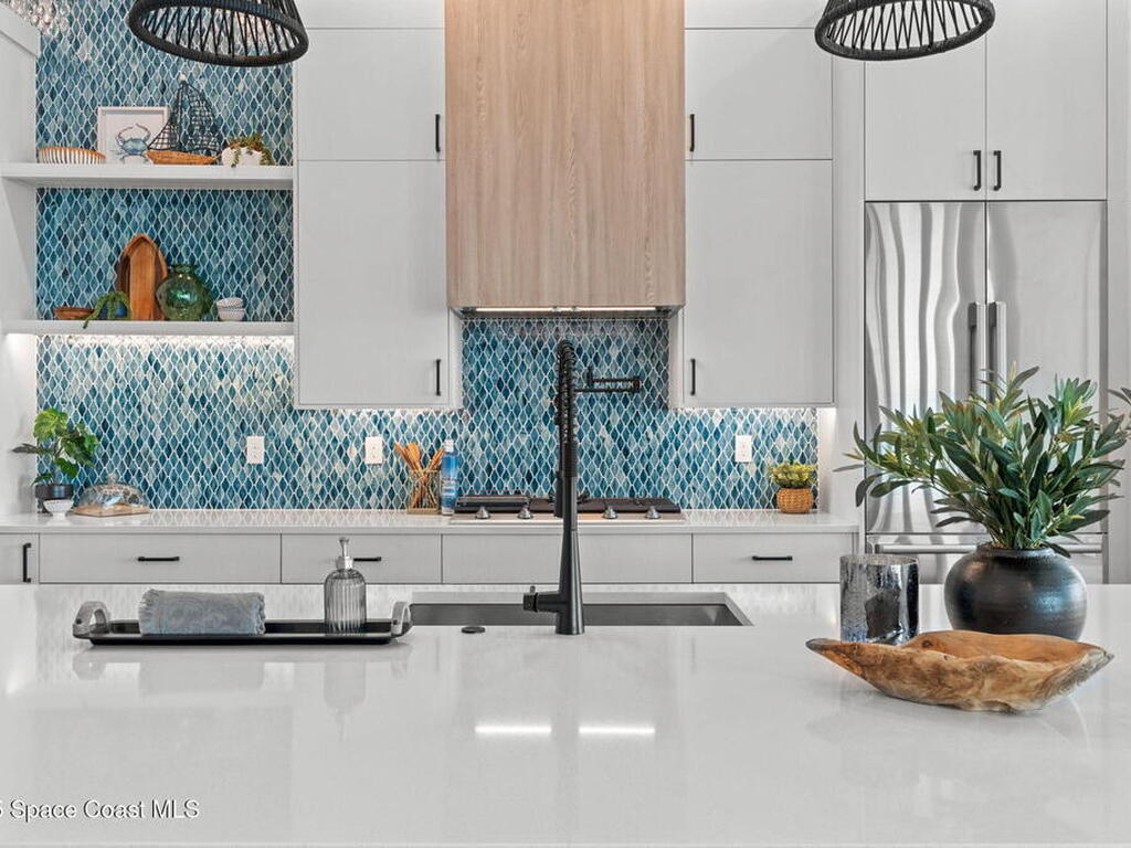 The Shores at Tranquility is a gated lifestyle community with a planned marina, town center, clubhouse, resort-style pool, fitness center, pickleball courts, and more.Experience luxury waterfront living in this beautiful custom Hulbert Homes build featuring 4 bedrooms, 3.5 bathrooms, and a 4-car garage. This home offers breathtaking 3-5 mile views across the Intracoastal Waterway.Inside, elegant details include a climate-controlled wine room, 10' sliders, electronic roll-down shades, and a custom iron pivot entry door.The open-concept design includes a chef's kitchen with a large island, gas stove, and stainless Dacor appliances. The screened saltwater pool with sun shelf and waterfall creates a private retreat perfect for watching rocket launches. A hidden ''Florida Basement'' adds extra storage, blending innovation, comfort, and coastal sophistication.Don't miss this once-in-a-lifetime waterfront home -- a place to build lasting memories and your family legacy.