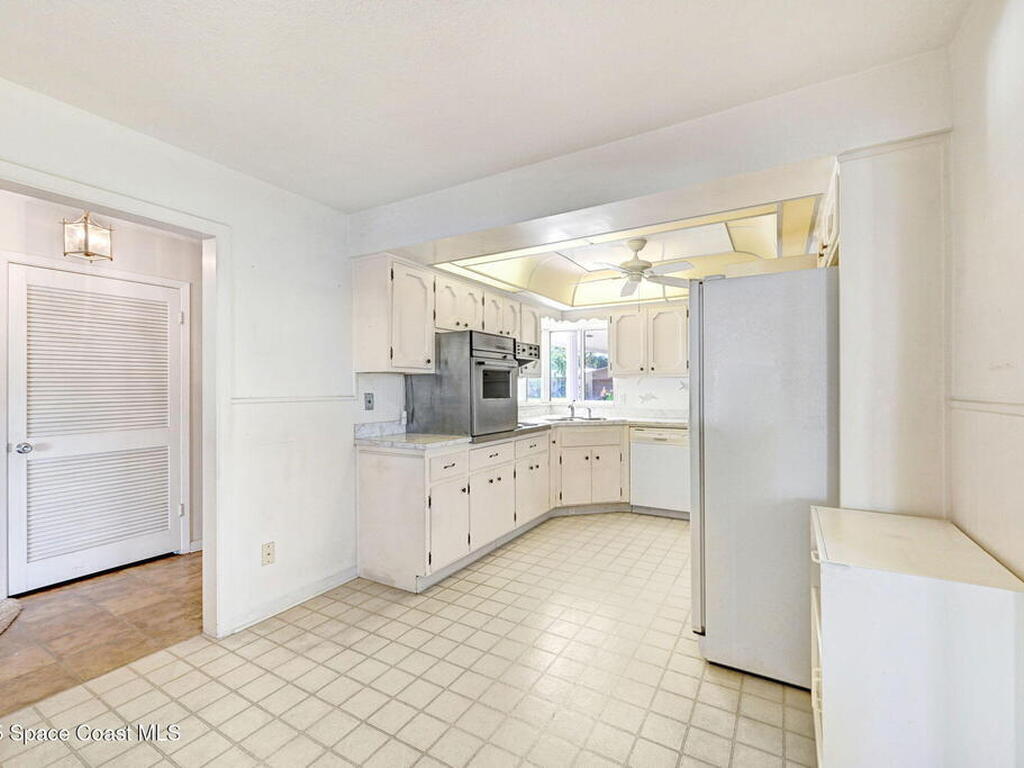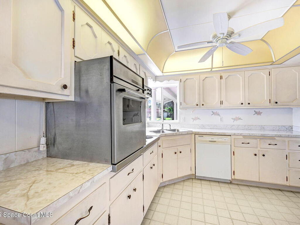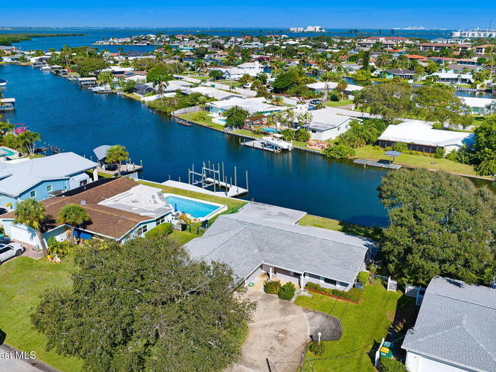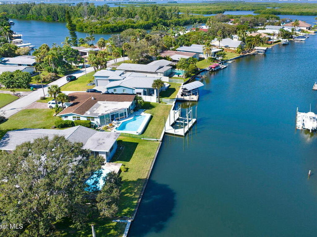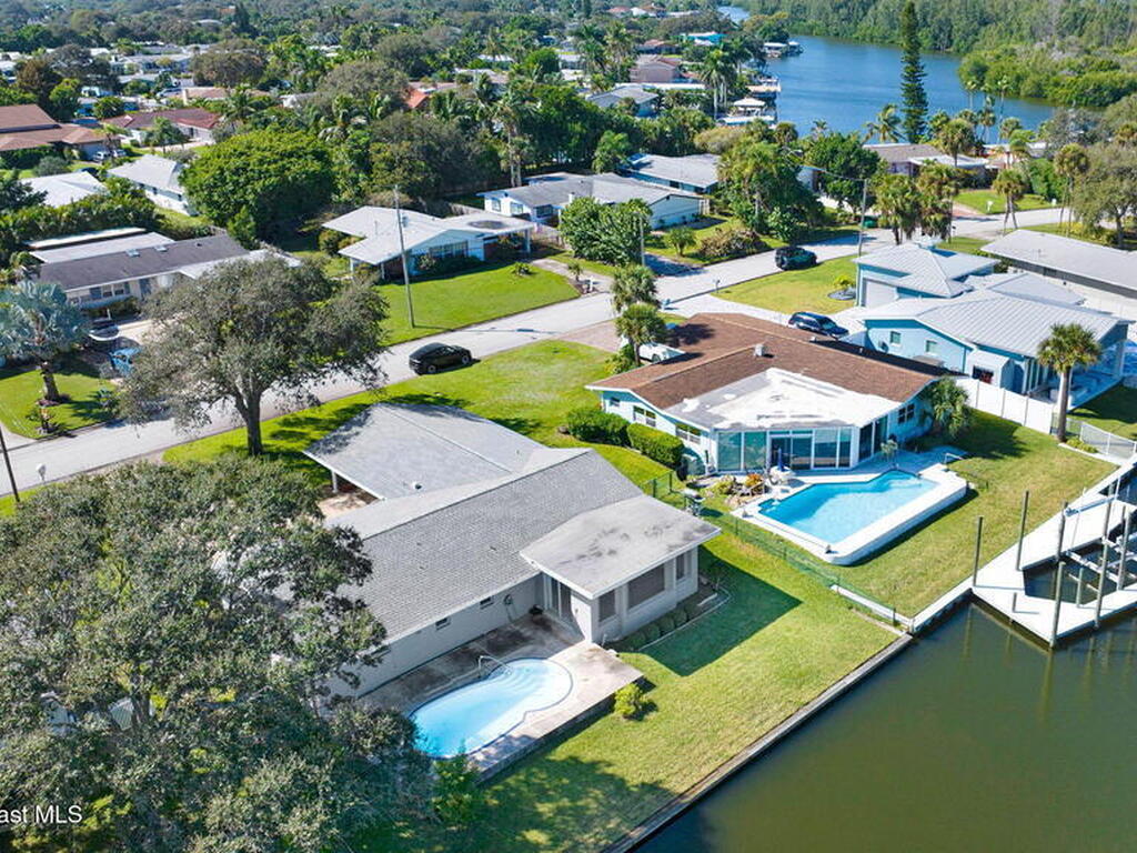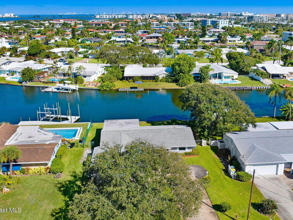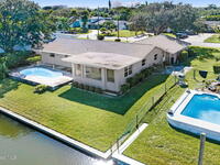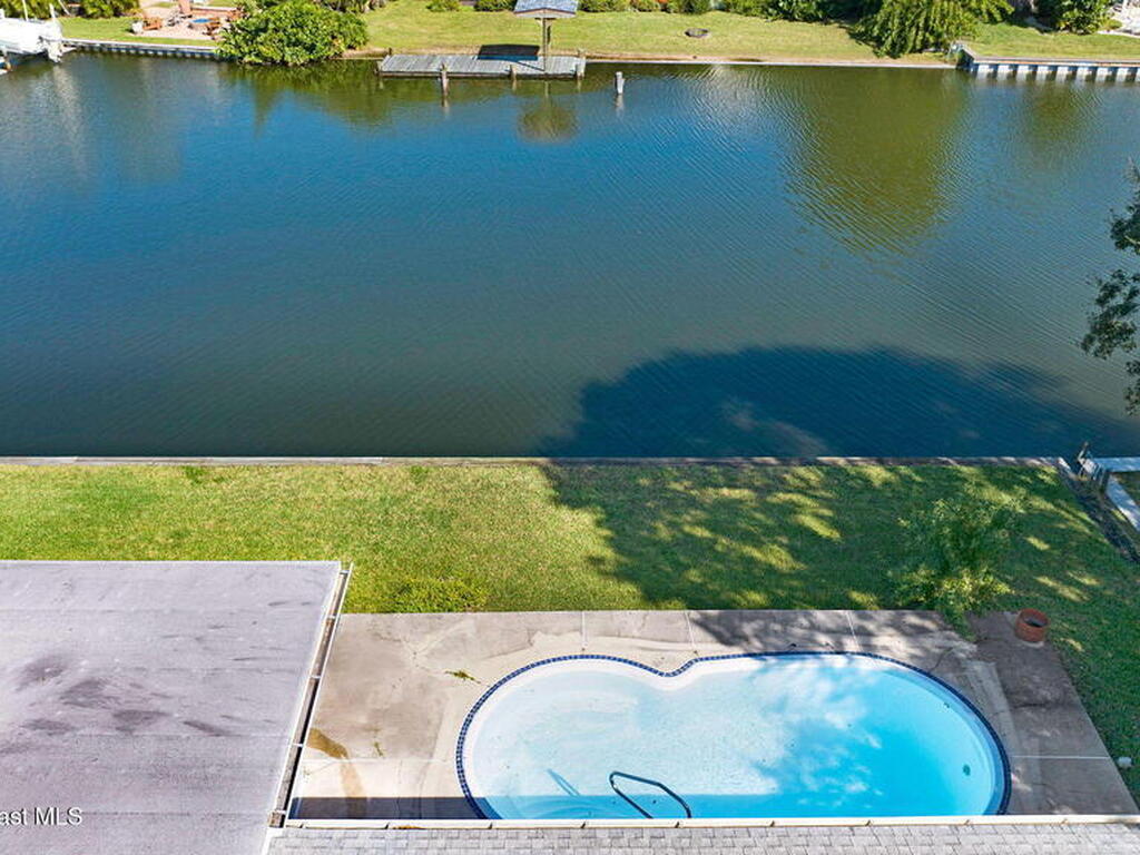 This is your opportunity to live on the water with a pool in the heart of Cocoa Beach! Right across from Lori Wilson Park! Great bones with the opportunity to make it your own! Light & bright eat-in kitchen with a corner front window can easily be remodeled into a modern open kitchen overlooking the two big great rooms! Loads of natural light and neutral colors! Terrazo floors can be preserved or put your choice of flooring down! Open pool overlooking the water! Seawall in great shape with plenty of room for a dock! Fenced yard plus a sprinkler system on reclaimed water! A/C only 1 yr old! Exterior paint only a year old! Seamless gutters! Easy ride to the Banana River or pop over to the beach! No HOA! Time to enjoy some beachside living! Easy to show!