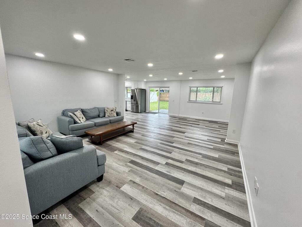 Welcome to 789 Walnut Drive in beautiful Melbourne, Florida -- a fully renovated 3-bedroom, 2-bath home showcasing modern style and thoughtful design. Step inside to discover a bright, open family room and dining area with updated LED lighting throughout. The kitchen features white Shaker cabinetry, elegant Carrara marble countertops, and stainless steel appliances. The spacious primary bedroom is privately set at the rear of the home, offering patio access and serene views of the fenced backyard. Its ensuite bath boasts a beautifully tiled walk-in shower with classic subway details and a stylish vanity. Two guest bedrooms share a full bath with a tub and shower combination. Additional highlights include a newer air conditioner, water heater, full-size stackable washer and dryer, and brand-new rain gutters. The one-car garage and fully fenced yard add convenience and comfort. Impeccably clean and move-in ready -- this home feels brand new! Centrally located near shops, dining, and more.
