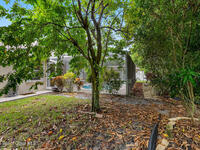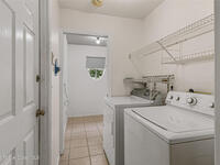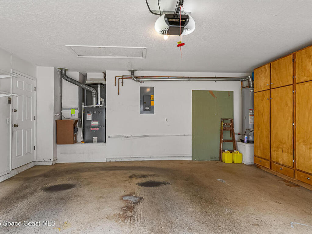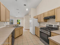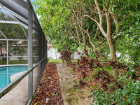 Welcome to your private tropical oasis! This beautifully maintained single-story home blends comfort, style, and peace of mind. Designed for effortless Florida living, it features accordion shutters throughout, a whole-house Generac generator, and a fully enclosed back porch with accordion sliders to protect your outdoor space year-round. Inside, vaulted ceilings and tile floors create a bright, open feel. The spacious kitchen offers a gas stove, Formica countertops, and a sunny breakfast nook, with a nearby laundry room and pocket office. The primary suite includes vaulted ceilings, pool access, his-and-hers closets, and a granite double vanity bath with a walk-in shower. Step outside to your tropical paradise with a sparkling pool, lush landscaping, and fruit trees including mango and starfruit. Mature oak trees add shade and charm. With built-in garage storage and included washer/dryer, this home offers beauty, function, and true Florida living!