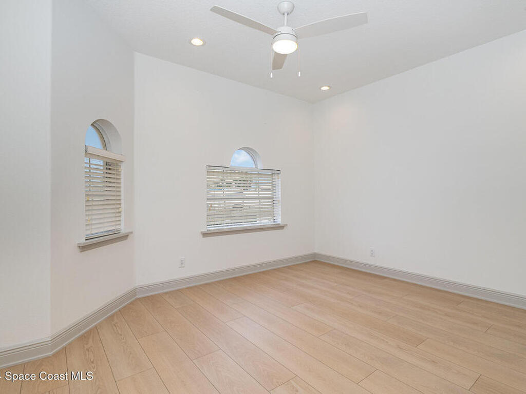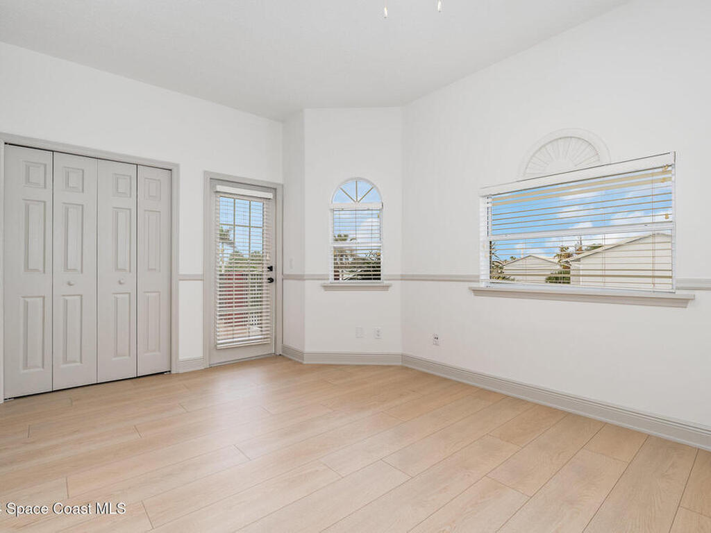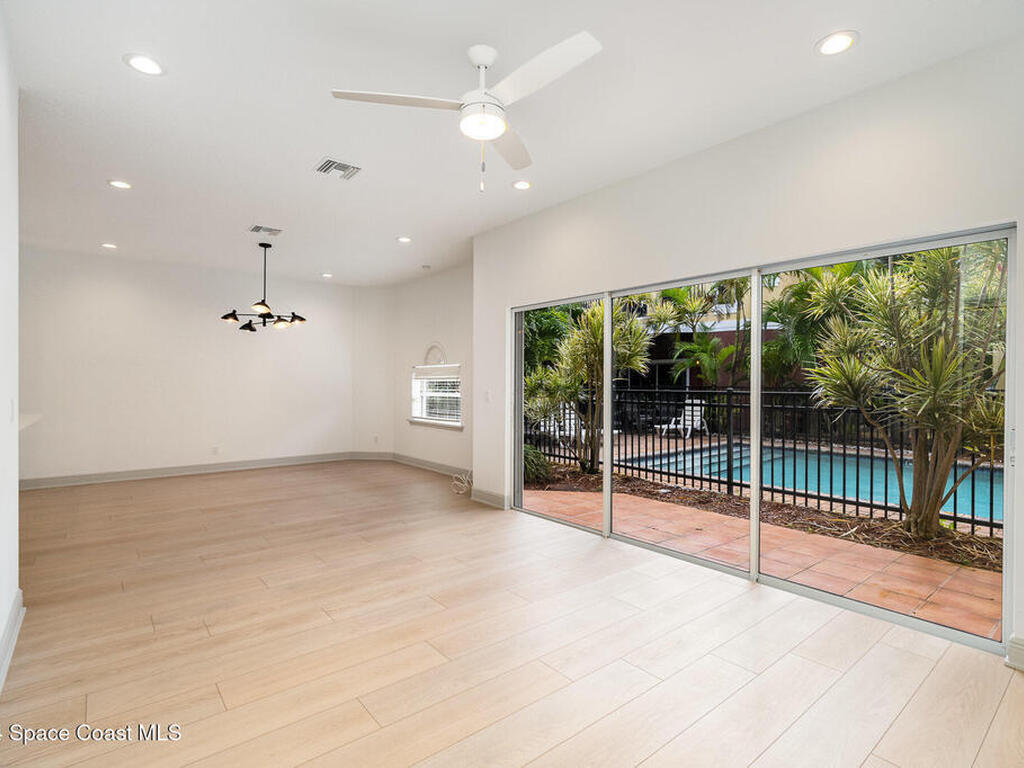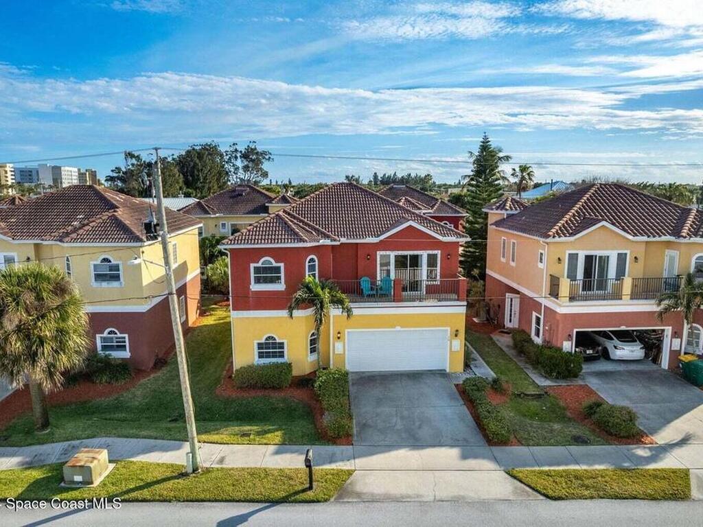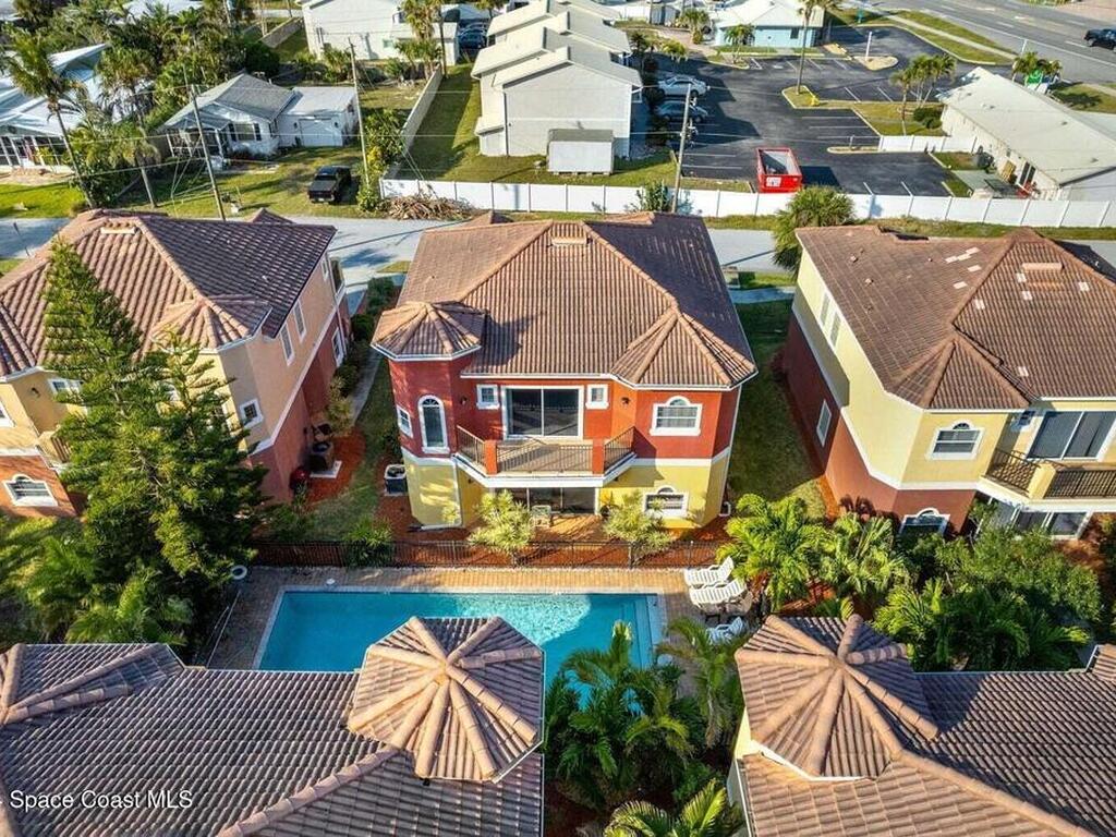 Beautifully updated w/poolside views, 3 bdrms + office & a 3-MINUTE WALK TO THE BEACH! This coastal condominium community stands out from the rest! Unattached units offer the feel of a single-family home while granting the benefits of worry-free condo living. This sunny bungalow boasts a 2023 A/C, TWO balconies & modern interiors! NEW solid surface floors span the downstairs, coursing through a bright living room w/a triple slider to a tropical patio overlooking the crystal-blue community pool. A granite b-fast bar kitchen features SS appliances, a frosted glass door pantry & white crown-molded cabinetry w/custom wine cubbies. The dining area could also be used for additional living. All bdrms are privately located upstairs. Double doors open to the sizable primary retreat exhibiting a personal balcony perched over the pool, a large walk-in closet, 2 sinks, a jetted tub & tiled shower. 2 extra bdrms share a 2nd balcony facing the front of the property. Schools & conveniences nearby!