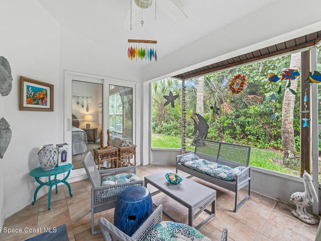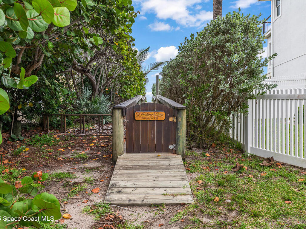 Nestled between the Atlantic Ocean and Indian River Lagoon, this beautifully furnished three-bedroom, two-bath half-duplex sits just across the street from the beach in St. Andrews Village, a gated South Melbourne Beach community. Private ocean access is only steps away, with river access nearby--capturing the essence of barrier island living.The home features vaulted ceilings, a bright open kitchen with granite countertops, walk-in showers, and coastal finishes that blend elegance with comfort. The move-in-ready layout flows seamlessly for both everyday living and entertaining.Less than two minutes from your door are the Aquarina Golf Club and the Barrier Island Sanctuary & Sea Turtle Museum, with dining options and Publix just a short drive away. This home offers a rare chance to enjoy a peaceful coastal lifestyle in one of Florida's most tranquil settings.