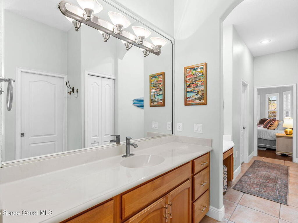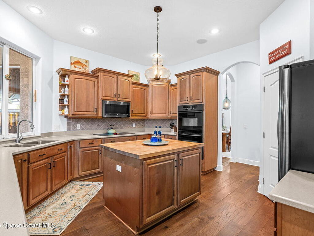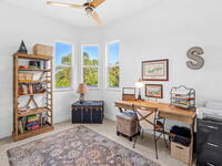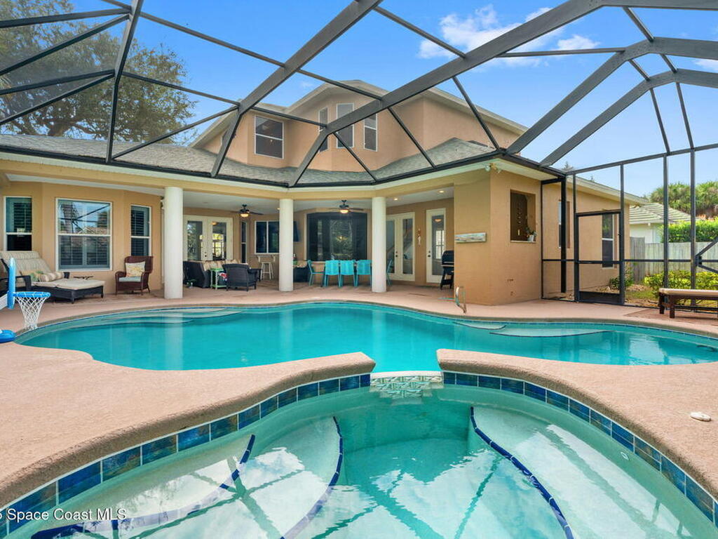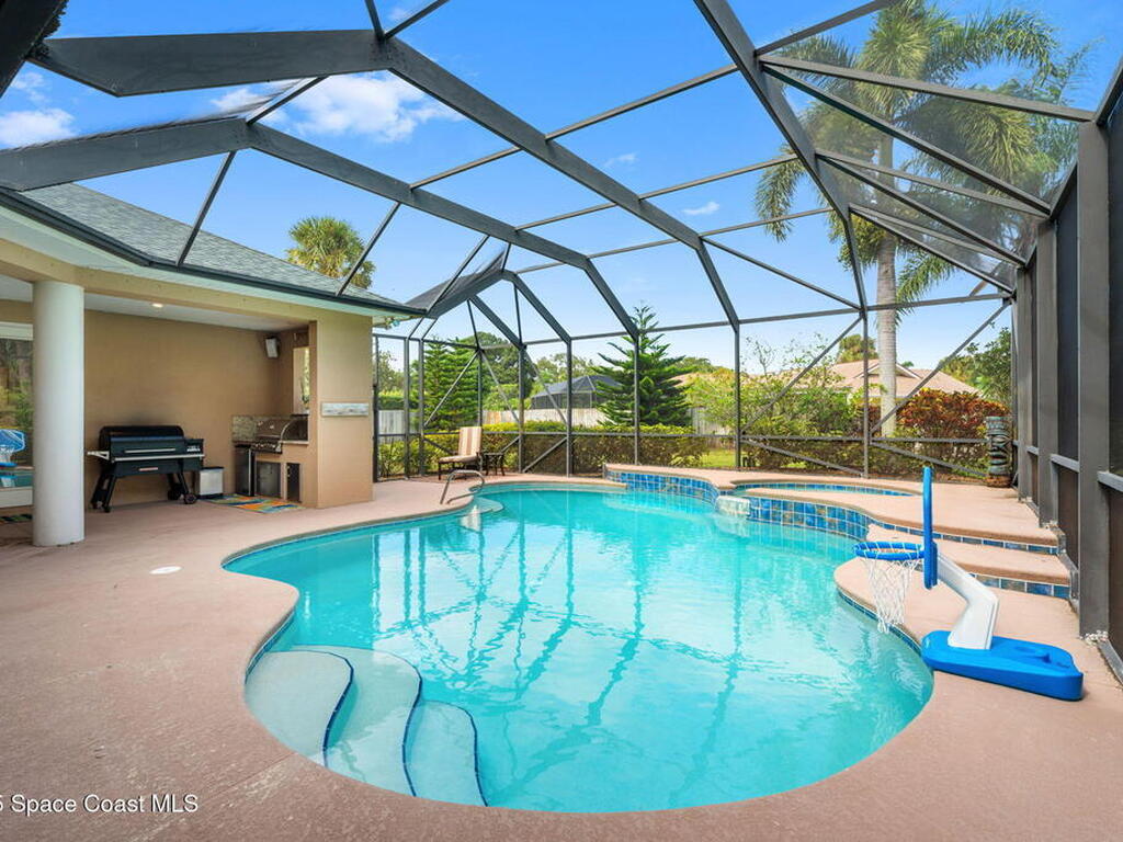 PARADISE FOUND! Welcome to this custom built 6-bedroom, 4-bath pool home in the 'Tropical Paradise' community along scenic South Tropical Trail. Thoughtfully designed for both elegance and everyday comfort, this residence invites you in through a bright foyer with soaring ceilings that open to serene views of the sparkling pool and covered outdoor living area complete with a summer kitchen--the perfect backdrop for family gatherings and weekend entertaining.The spacious owner's suite offers a true retreat, featuring a cozy sitting area, direct pool/spa access, dual walk-in closets, and a spa-like ensuite with garden soaking tub, walk-in shower, dual vanities, and a dressing table. A nearby office--or optional sixth bedroom--offers flexible space, perfect for a home office, playroom, private yoga studio, guest room etc.