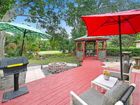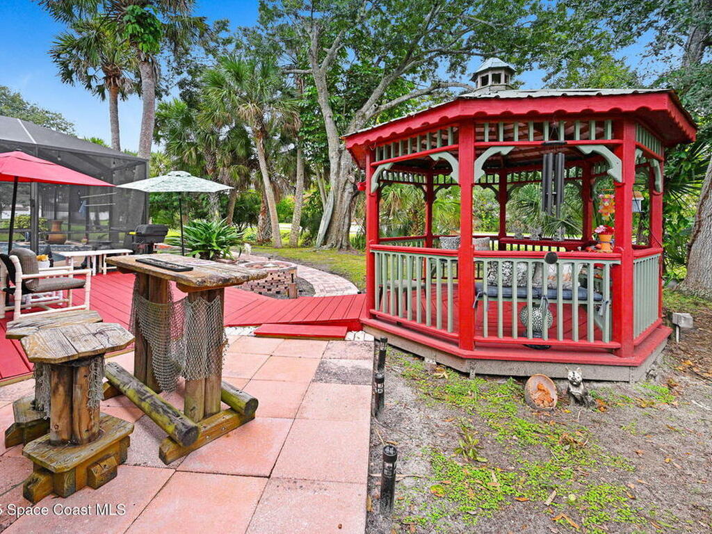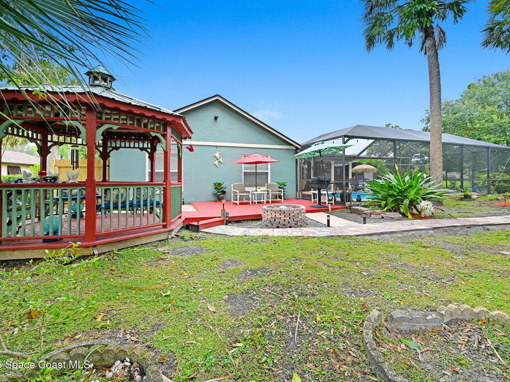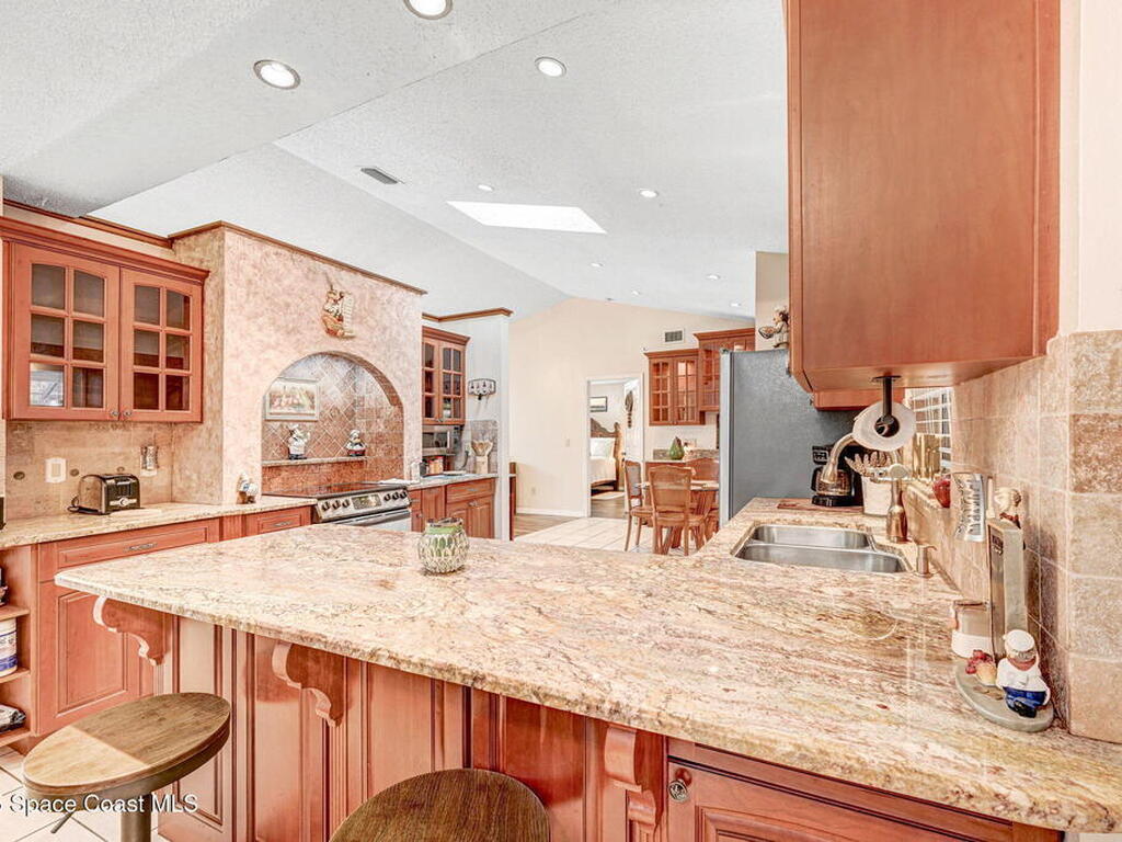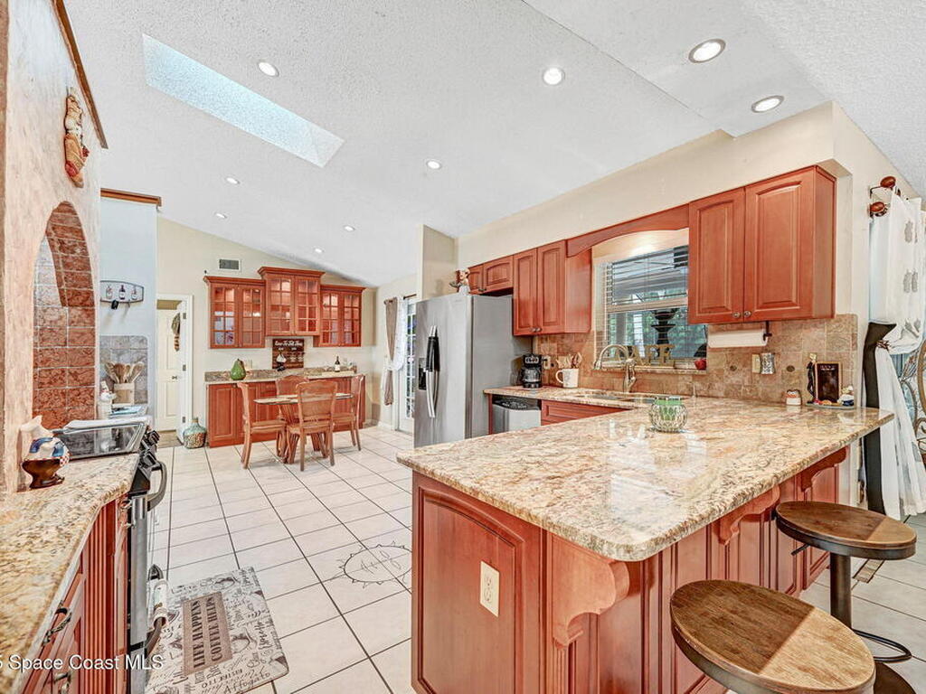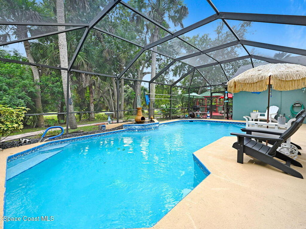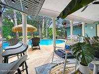 No need to go on vacation -- Paradise is right in your own backyard! This beautifully maintained 3 bedroom, 2 bath home in Lake Washington offers true Florida resort-style living. Step outside to your private retreat featuring a sparkling swimming pool, cabana bar, gazebo, new decking, 2 fire pits, built-in natural gas grill, fenced dog yard, -- perfect for all your entertaining. Relax beneath the palm trees with space for hammocks, or take a stroll along the pavered nature path surrounded by tropical landscaping.Inside, you'll find a newer kitchen with charming brick oven-style decor, updated baths, hurricane-rated skylights that fill the home with natural light. Split plan with one large bedroom can be used as mother-in-law suite with a sitting area or dining area. Brand new roof, larger .27 acre lot. With every detail designed for comfort and outdoor enjoyment, this home truly embodies the best of Florida living.