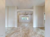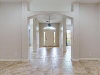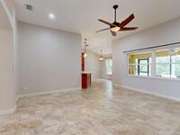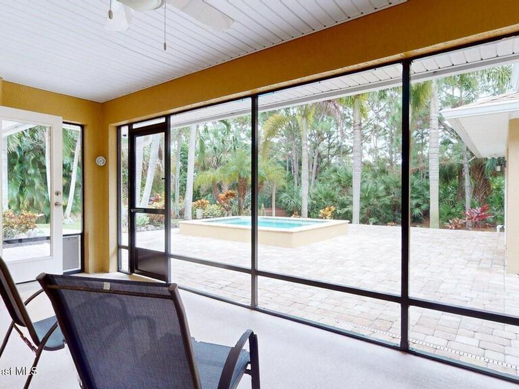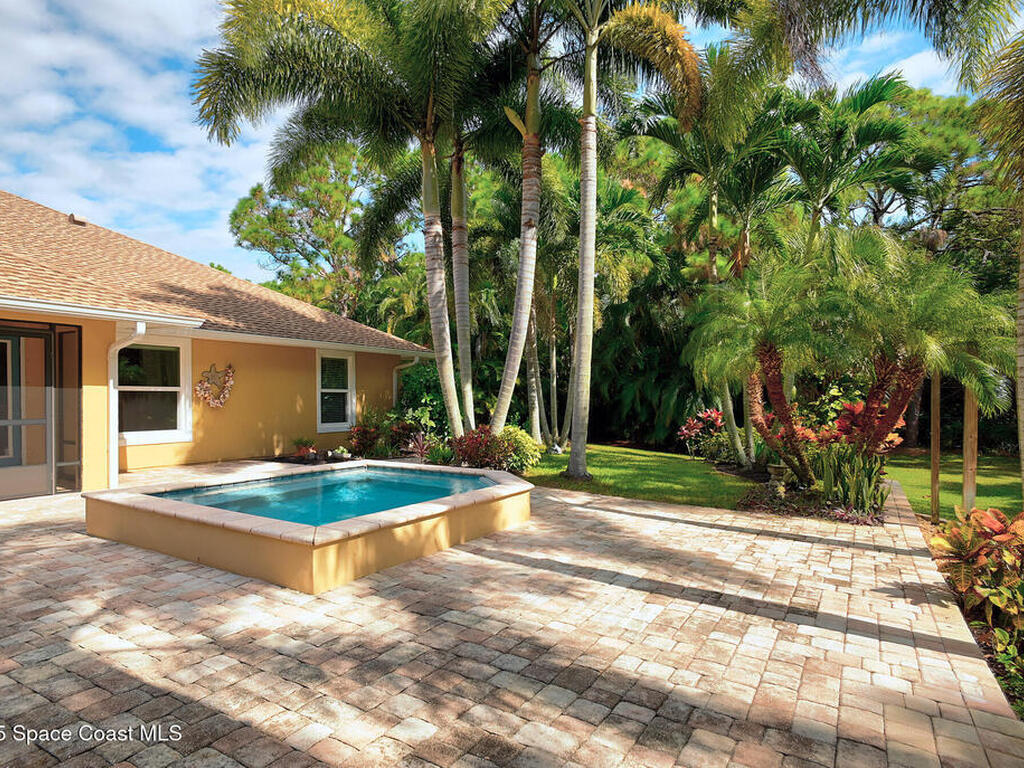 This gorgeous home is better than new!! Boasting10 ft ceilings and was renovated inside and out in 2017! Walls were removed, all new lighting and custom porcelain tile was installed along w/ new double-pane windows and doors. In 2024, new roof, insulation, gutters, water heater and brick pavers. Kitchen was redesigned featuring custom maple cabinets w/ pull out features, top of the line appliances and quartz counter tops. Both baths boast the maple cabinets & quartz counters. Primary has a huge customized shower! Custom porcelain tile throughout! Large screened lanai overlooks a breath taking, private and peaceful oasis w/ 125 palms, brick pavers surrounding an in ground heated spool & a poured concrete work shop building w/ a 5X8 hurricane proof door. Covered space for a BBQ. Yard is fully fenced w/ a 14ft gate, perfect to park a boat or RV. This small, one circle, private community is located near the boat ramps and nature preserves. Don't miss out on this masterpiece!!!!.