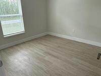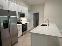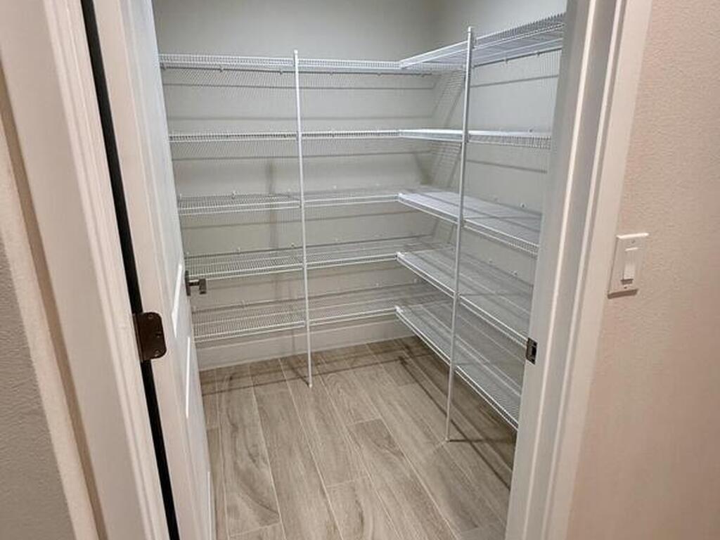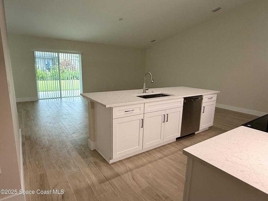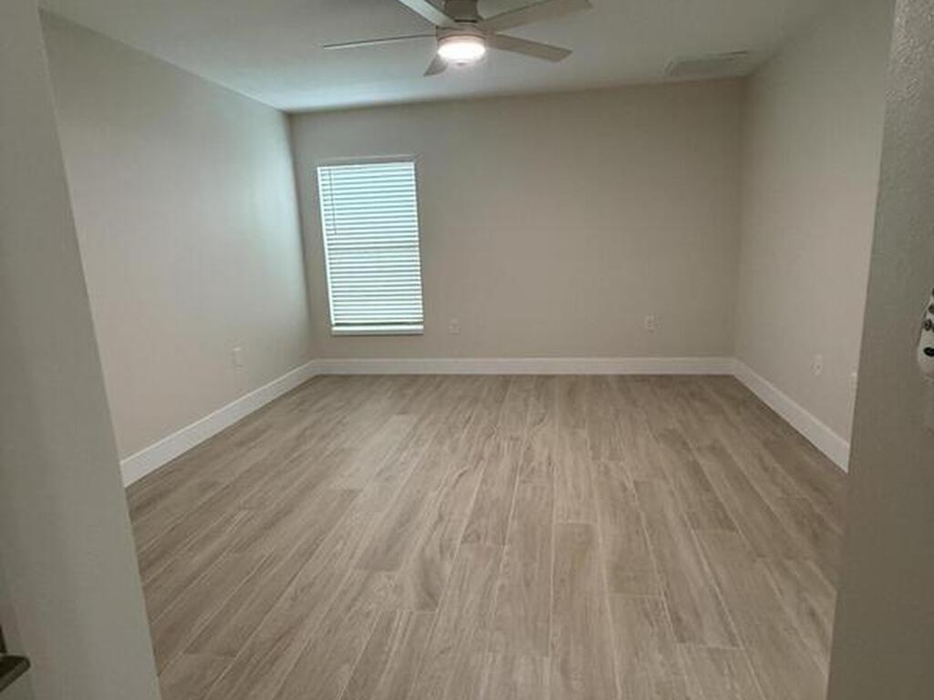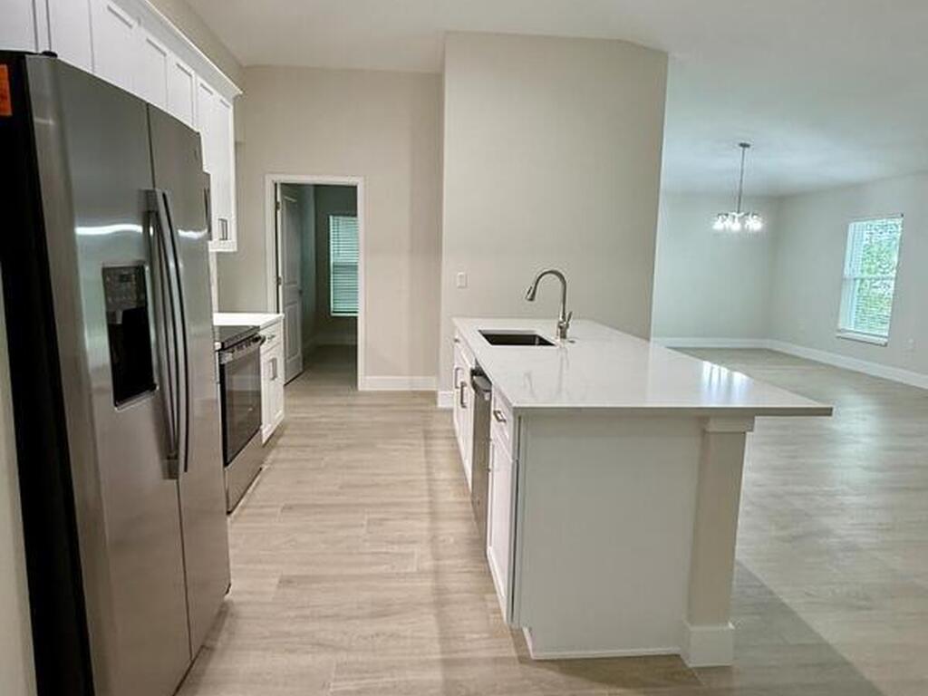 Spectacular new construction home with spacious layout. This great room floor plan features vaulted ceilings, 4 bedrooms, 2 bathrooms, 2 car garage, and covered patio. Kitchen features soft-close cabinet doors and drawers, quartz counter tops, under-cabinet lighting, stainless steel GE appliances, tiled backsplash, and one level island for eating/entertaining. The home has a large walk-in pantry and separate laundry room. All bedrooms have ceiling fans with remotes. Bathrooms feature soft-close cabinet doors and drawers, quartz counter tops, tiled shower/tub to ceiling, and brushed nickel plumbing/light fixtures. Flooring throughout is porcelain wood plank tile. This home is move-in ready with blinds installed at all windows and sliding glass door. Quiet neighborhood.