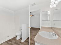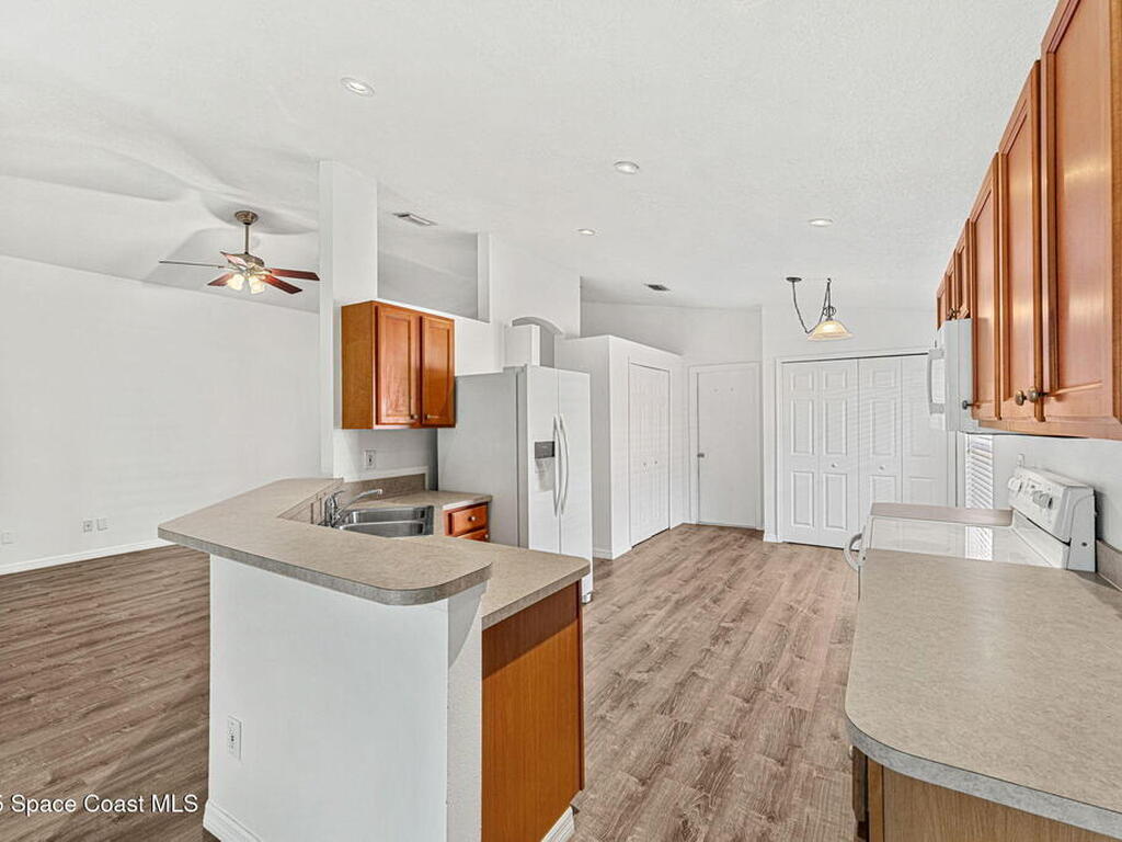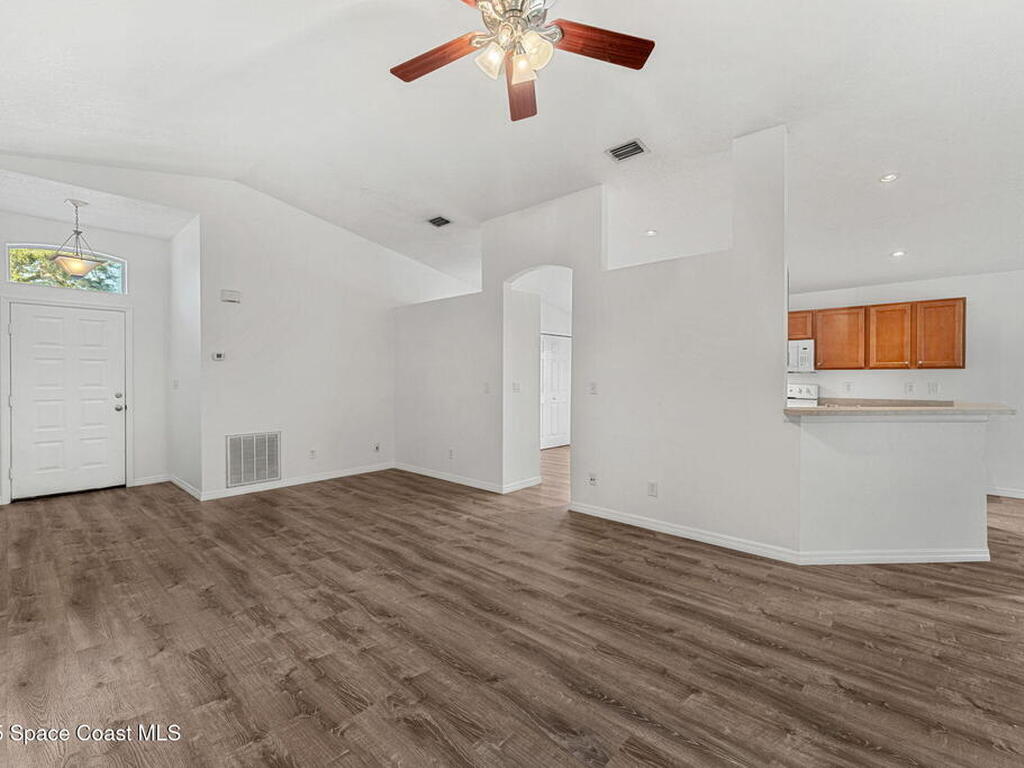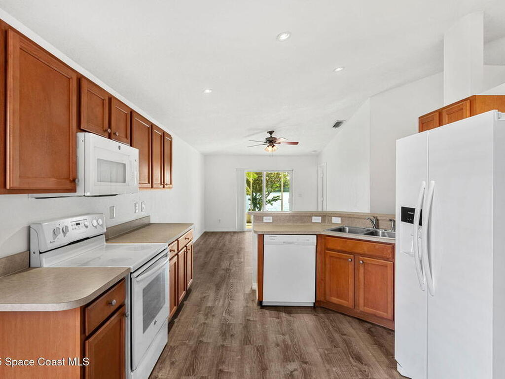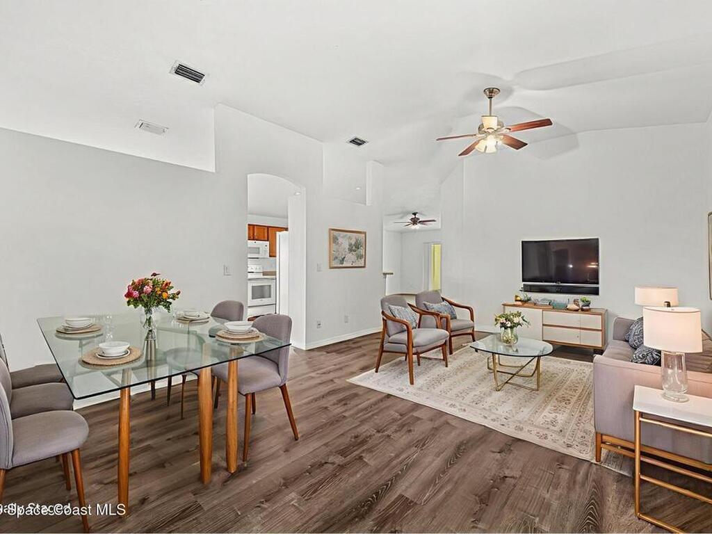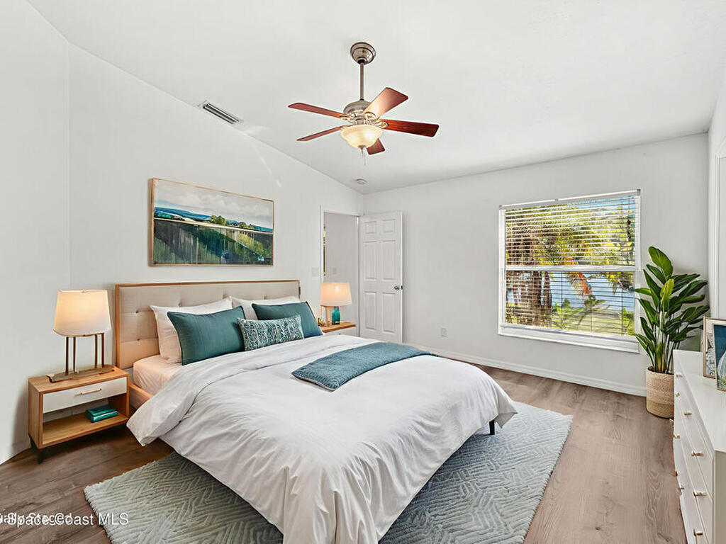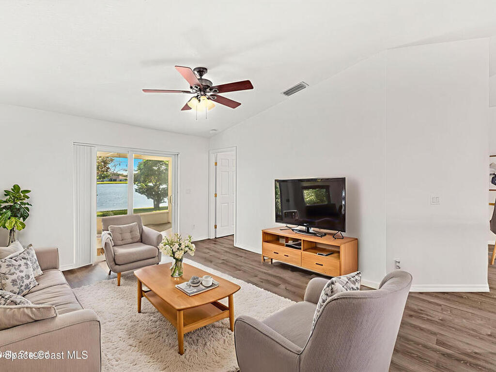 A bright and inviting lakefront home offering 3 bedrooms, 2 baths, & 1, 500 sq ft of thoughtfully updated living space. Inside, fresh interior and exterior paint complement new luxury vinyl plank flooring and vaulted ceilings that enhance the home's open layout. The living and dining areas flow easily into a kitchen designed for connection and daily ease, while sliders frame calming views of the water. The primary suite enjoys its own slice of tranquility with a walk-in closet and private bath featuring both a soaking tub and separate shower. A 2024 roof provides peace of mind, adding to the home's appeal for those who value both style and practicality. Step outside to enjoy the community's amenities, including a pool, basketball court, & playground--all part of the sought-after Bayhill at Viera East neighborhood. Perfectly placed just minutes from the new Viera Boulevard I-95 exit, it offers effortless access to nearby shops, dining, & major routes for a balanced, convenient lifestyle.