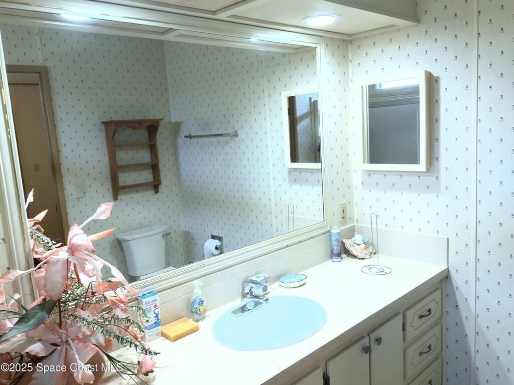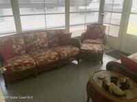 Are you ready to explore a stunning, move-in-ready manufactured you home? This fully furnished home is adorned with beautiful accessories & offers a super floor plan. As you enter through the front door, you'll be greeted by a spacious living room with gorgeous flooring and plenty of windows, all equipped with storm shutters. The dining room features a large, china cabinet with ample storage. The kitchen boasts an eat-in area, a new stainless steel refrigerator and stove, & an abundance of cabinets for all your needs. You'll also find an indoor laundry room with a washer, dryer, and cabinets on both sides. The master bedroom includes two walk-in closets, one of which is very large. The master bath offers a walk-in shower, a spacio vanity, & a large wall mirror. Both bathrooms are updated with new high-efficiency toilets. The guest bedroom is generously sized and includes a walk-in closet. Enjoy the large elevated lanai furnished lanai & inside storage shed. NEW A/C