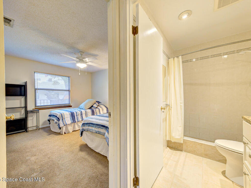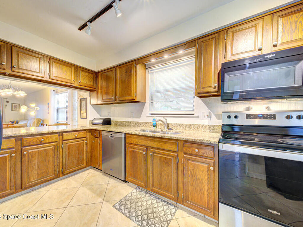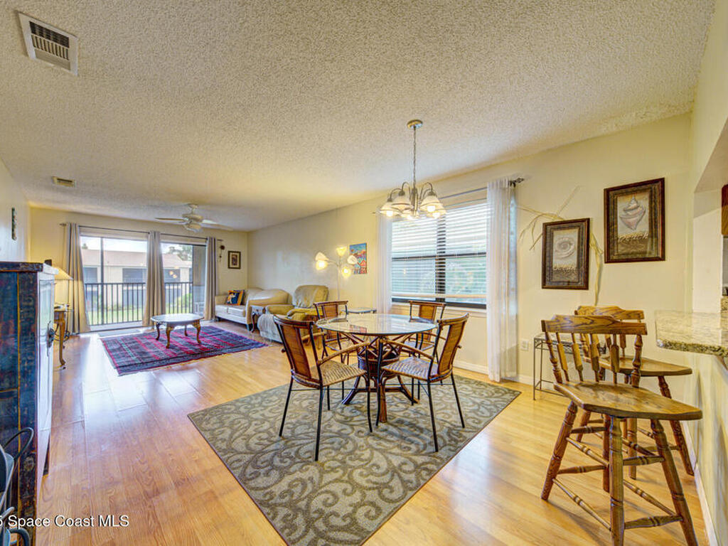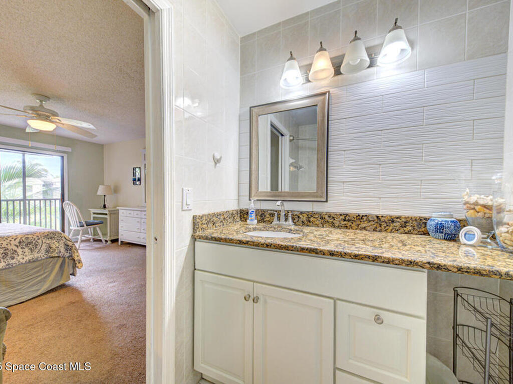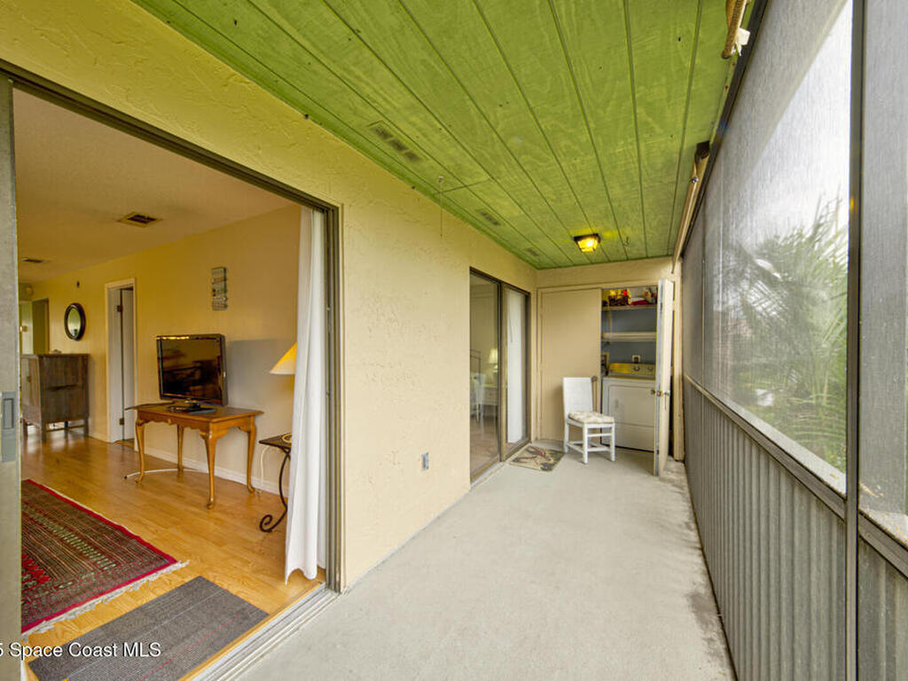 This beautiful condominium boasts the best location in the building, offering unmatched privacy and serene views of the pool from your private screened balcony. The interior features granite countertops, stainless steel appliances, a breakfast bar, and a pantry, making the kitchen both stylish and functional. The spacious master bedroom includes an en-suite bathroom, a walk-in closet, and balcony access via sliding glass doors. The open-concept living and dining area creates a bright and inviting atmosphere, perfect for entertaining or relaxing. Plus, the convenience of an in-unit washer and dryer adds to the ease of living. This resort-style community is full w/ amenities, including tropical grounds, tennis courts, a car wash station, two pools, two clubhouses, and a gazebo on the Banana River--perfect for watching sunsets, dolphins, manatees, and rocket launches! This condo is just a 5-min walk to the beach, a 5-min drive to the Port, and 45 min to the Airport.