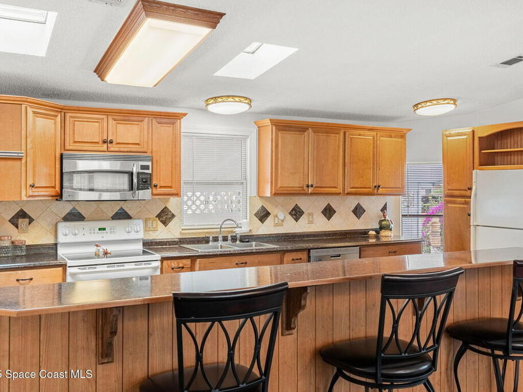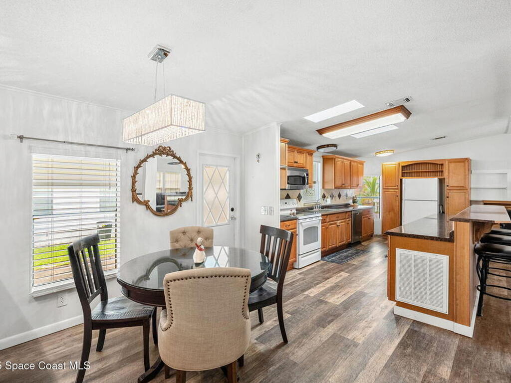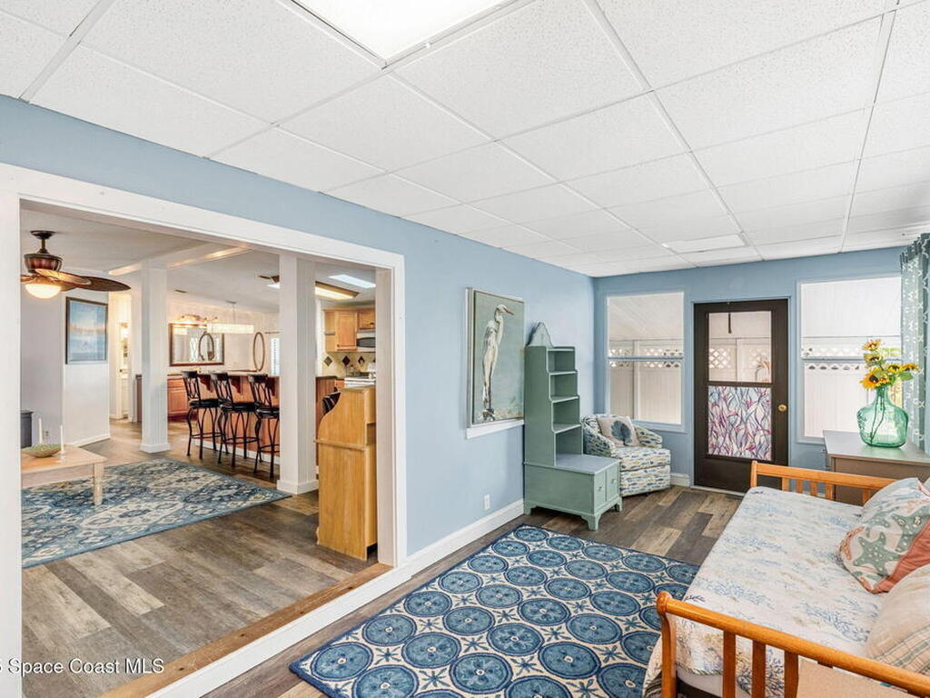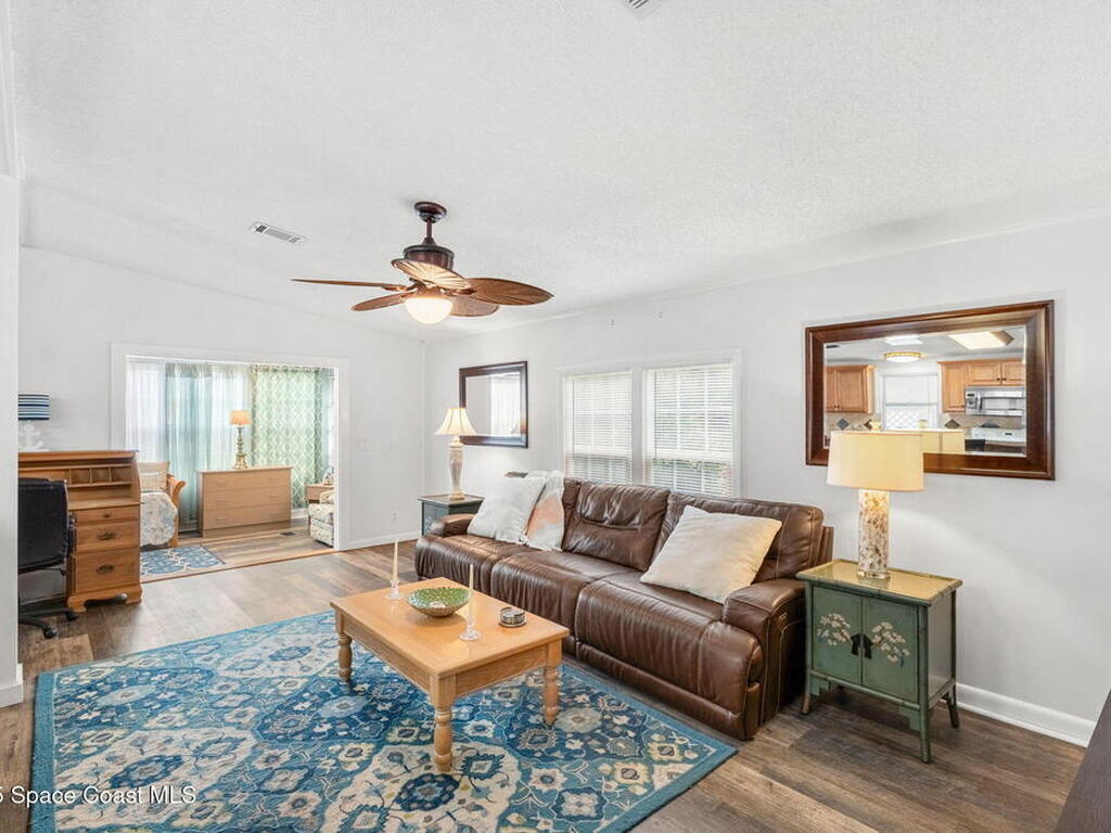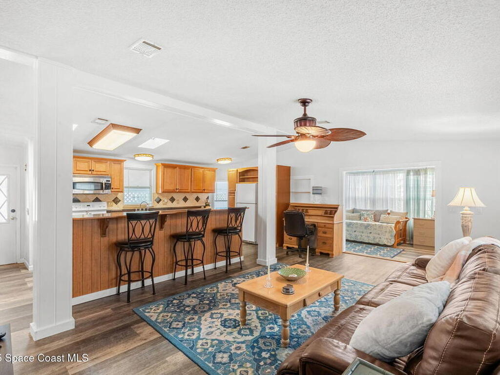 2 bed 2 bath home with open floor plan, perfect for entertaining. Spacious updated kitchen with 12' island that opens to family room. Both full baths were just updated in 2022. This turnkey home comes completely furnished, just bring your suitcase. Primary suite has gorgeous full bath with separate vanity area and walk in closet. The Barefoot Bay community consists of 3 pools, A lounge providing Barefoot Bay residents with entertainment and excellent dining, Barefoot Bay Golf Course 18-Hole Executive course and Barefoot Bay Golf Course's 19th Hole restaurant offers great food and events all year round. Barefoot Bay Beach is 2.3-acres and located on the ocean side of A1A. The nearby pavilion gives visitors a place to relax and enjoy the beautiful scenery.