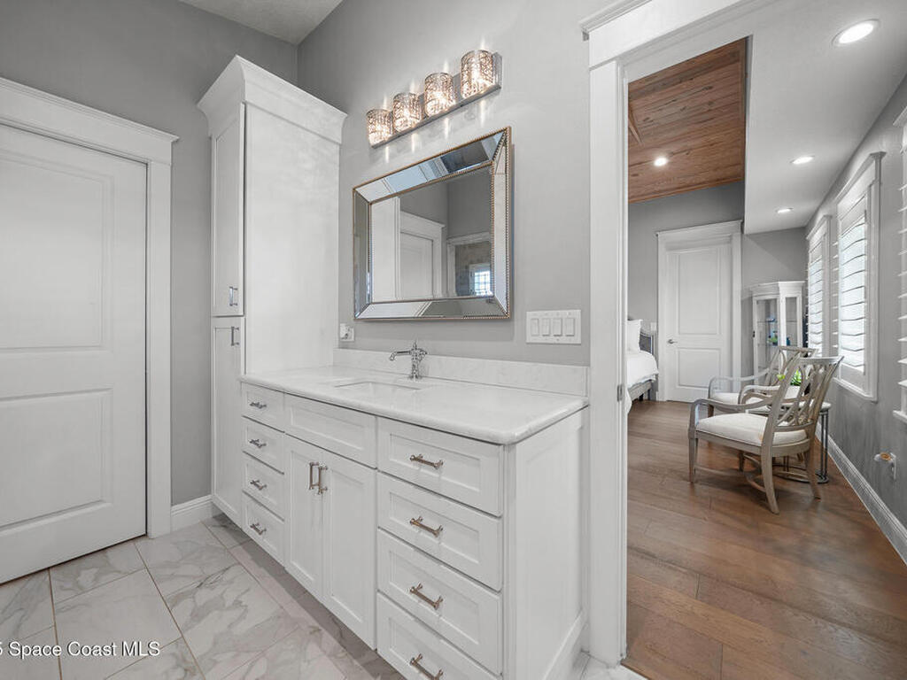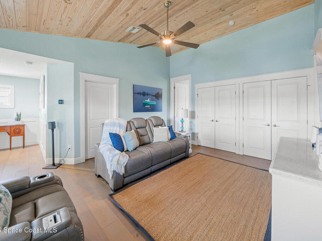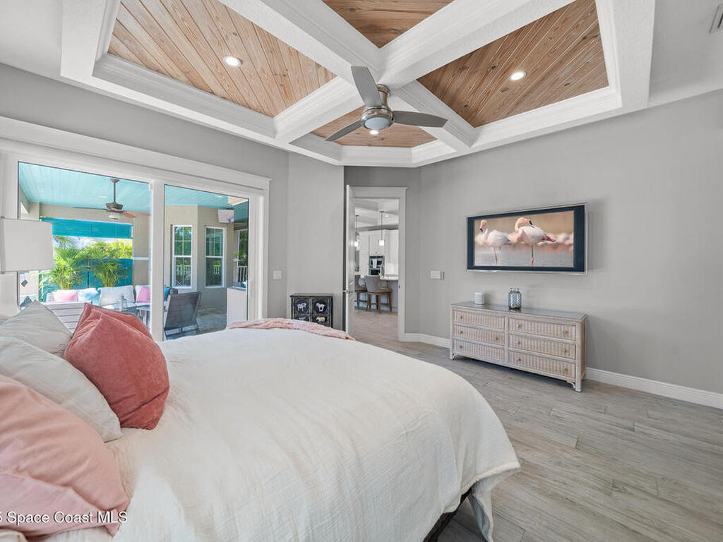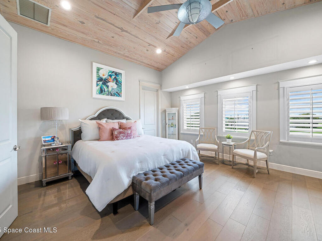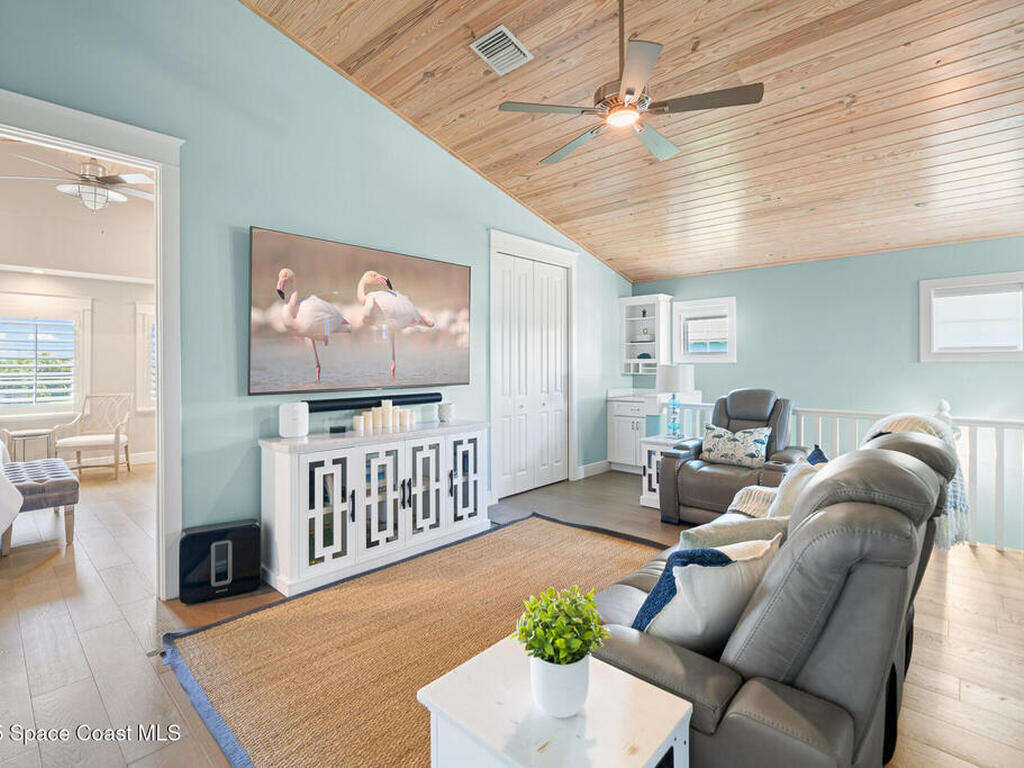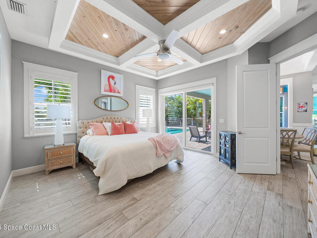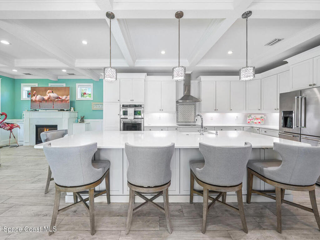 GORGEOUS EXECUTIVE COCOA BEACH POOL HOME FOR LEASE!!! Built in 2017 and backing to the Cocoa Beach Golf Course, this 2, 863 sq ft luxury home blends coastal charm with elevated modern living. Enjoy 3 bedrooms & 3.5 baths, including two private en suites--one on the main level and one upstairs paired with a secondary living space for privacy and multigenerational living. Soaring vaulted, coffered, and tongue-and-groove ceilings add warmth and character. The gourmet kitchen features premium stainless appliances, double oven, convection cooktop, beverage fridge, farmhouse sink & large quartz island. Step outside to a private tropical retreat with saltwater pool, heated spa & lush landscaping. Fully furnished with 2-car garage + extra paver parking. Pool & lawn care included. Walk or golf-cart to Cocoa Beach Country Club, and you're just about 1 mile from the heart of downtown Cocoa Beach--restaurants, shops, events & public beach access. Also listed for sale at $1.31M. Seeking annual lease.