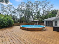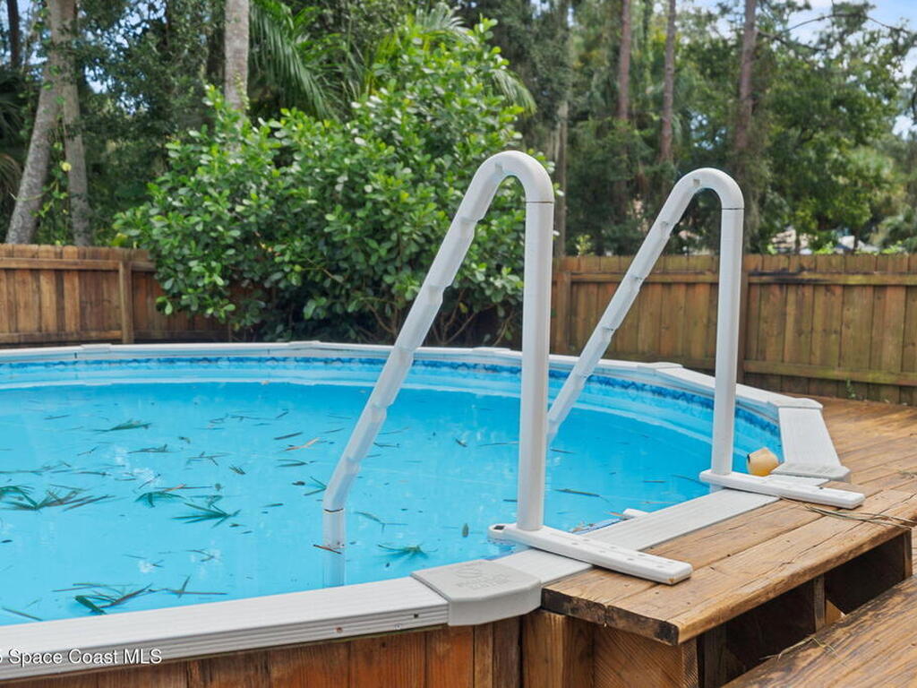 There's no place like home--and this one proves it! The backyard is a showstopper featuring a brick paver patio, firepit, gazebo with hot tub & bar, above-ground pool with raised deck, and lush tropical landscaping. Inside, the open floor plan has no carpet, with formal living and dining rooms plus a family room and sun porch that opens into a screened patio. Major updates done: roof 2021, HVAC 2020, pool/deck 2017, fence 2014, hot tub & gazebo 2022, water heater 2025, dishwasher 2024, washer/dryer 2021. Freshly pressure washed and wood re-stained, this home is truly move-in ready! Even the TVs convey! Privacy abounds with fenced yard & no rear neighbors. Located in desirable Cypress Woods--enjoy sidewalks, ponds, and playground with no connecting neighborhoods. Conveniently near I-95, Hwy 50, and US-1, just minutes to shopping, Indian River, Kennedy Space Center, Port Canaveral, and beaches. Paradise found right on the Space Coast!