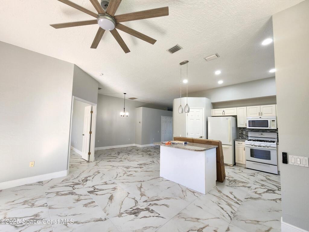 Breakfast Bar, Ceiling Fan(s), Kitchen Island, Open Floorplan, Primary Bathroom - Tub with Shower, Primary Downstairs, Split Bedrooms, Vaulted Ceiling(s), Walk-In Closet(s)