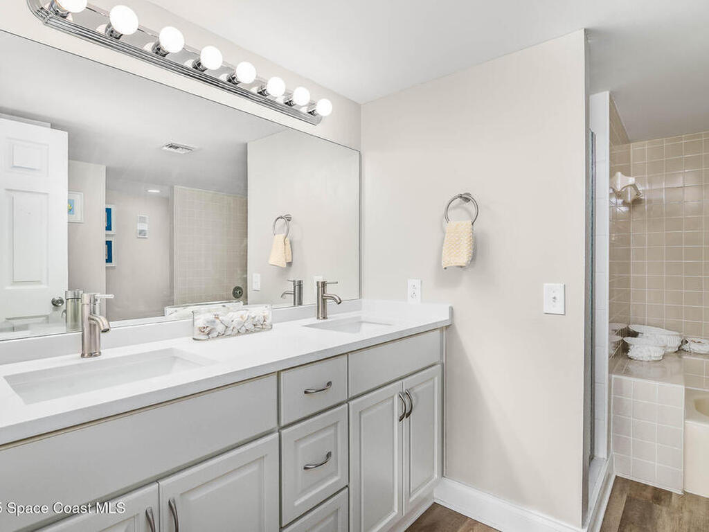 Wake up to the sound of waves & breathtaking views from this stunning 8th-floor oceanfront condo in one of Indialantic's premier buildings. This beautifully updated 2BD/2BA w/small office blends coastal comfort & modern style. Perched high above the shoreline, enjoy sea breezes, spectacular sunrises over the Atlantic & peaceful river sunsets--plus the comfort of living well above humidity & coastal pests. Inside, luxury wood-look vinyl floors flow throughout w/5'' baseboards & soft carpet in BDs. The kitchen shines w/quartz counters, breakfast bar, SS appliances & dual-oven range. Both Baths feature matching quartz surfaces. The spacious primary ste offers a walk-in closet w/custom organizers & sliding doors to the balcony w/endless views. All SIRS inspections complete, 30-yr restoration finished & assessments paid. Move right in & enjoy underground parking, storage, pool, clubhouse & private beach access. The owner's confidence shows--they also purchased the neighboring unit!