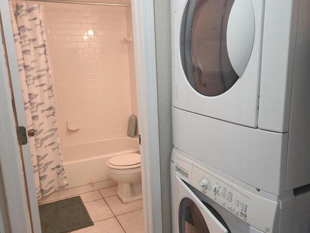 Dishwasher, Electric Range, Refrigerator, Washer/Dryer Stacked