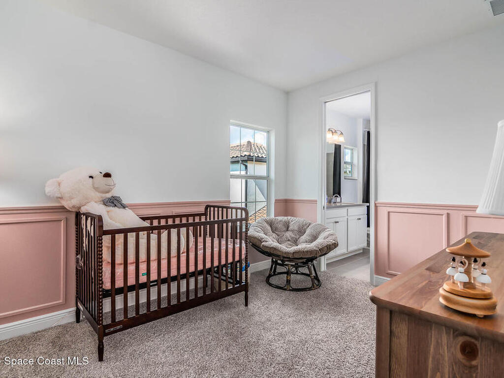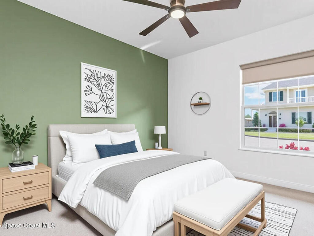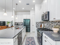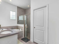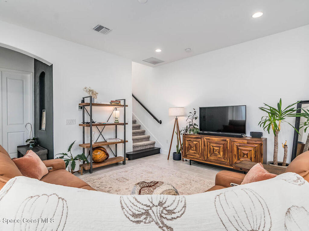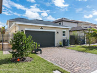 Experience modern luxury in this stunning 2022 home w/premium upgrades throughout. The kitchen space features a large center island, quartz countertops, Samsung Bespoke fridge, touch-enabled faucet & upgraded cabinetry. Elegant tile floors grace all living areas. An expansive great room w/10' ceilings & 9' sliding glass doors opens to a private 600 sqft paver courtyard--pre-plumbed for outdoor kitchen (water & gas). The owner's suite offers a walk-in closet, dual sinks, tub & shower. Upstairs, 2 bdrms provide flexibility for guests or office, w/French doors to a private balcony w/lake views. Impact windows on 2nd floor & front provide storm protection. Smart home features include WiFi-enabled garage door, Nest front camera & door lock, plus security system on every door & window. Enjoy resort-style community amenities: 2 pools, tennis, pickleball & indoor basketball court. Minutes from Costco, Publix, A+ schools, Viera Hospital & The Avenues shops. Easy I-95 access & 20 min to the beach
