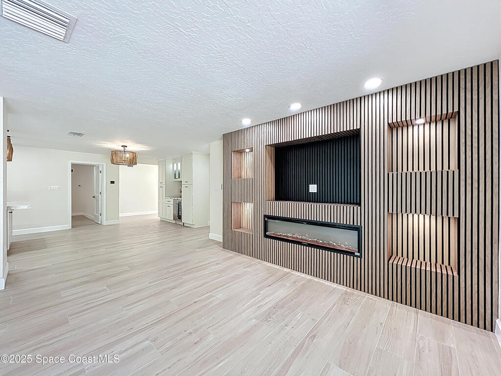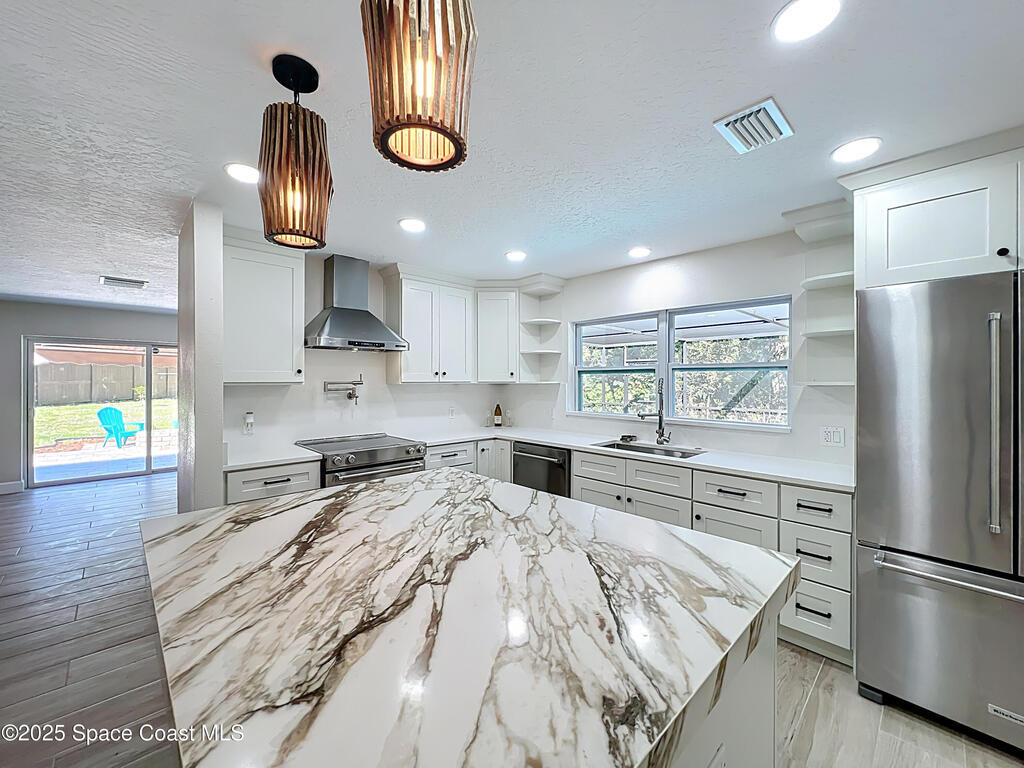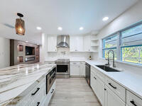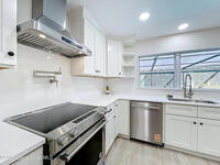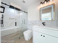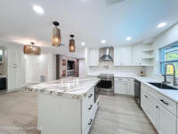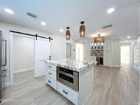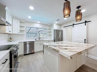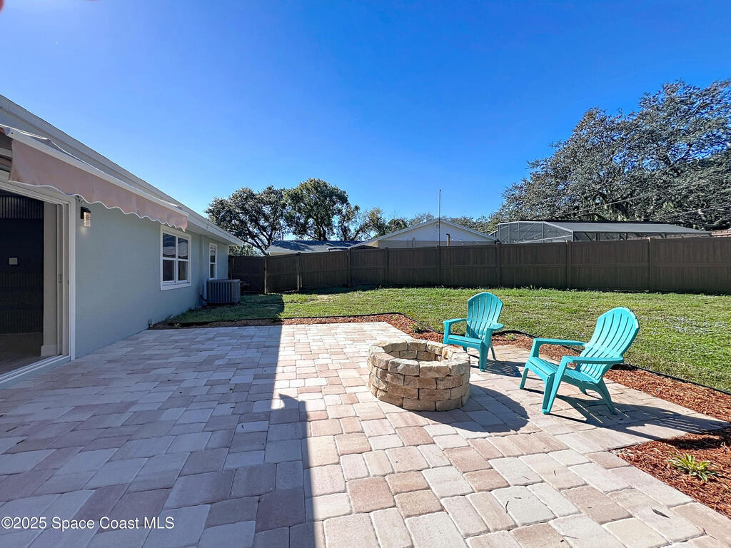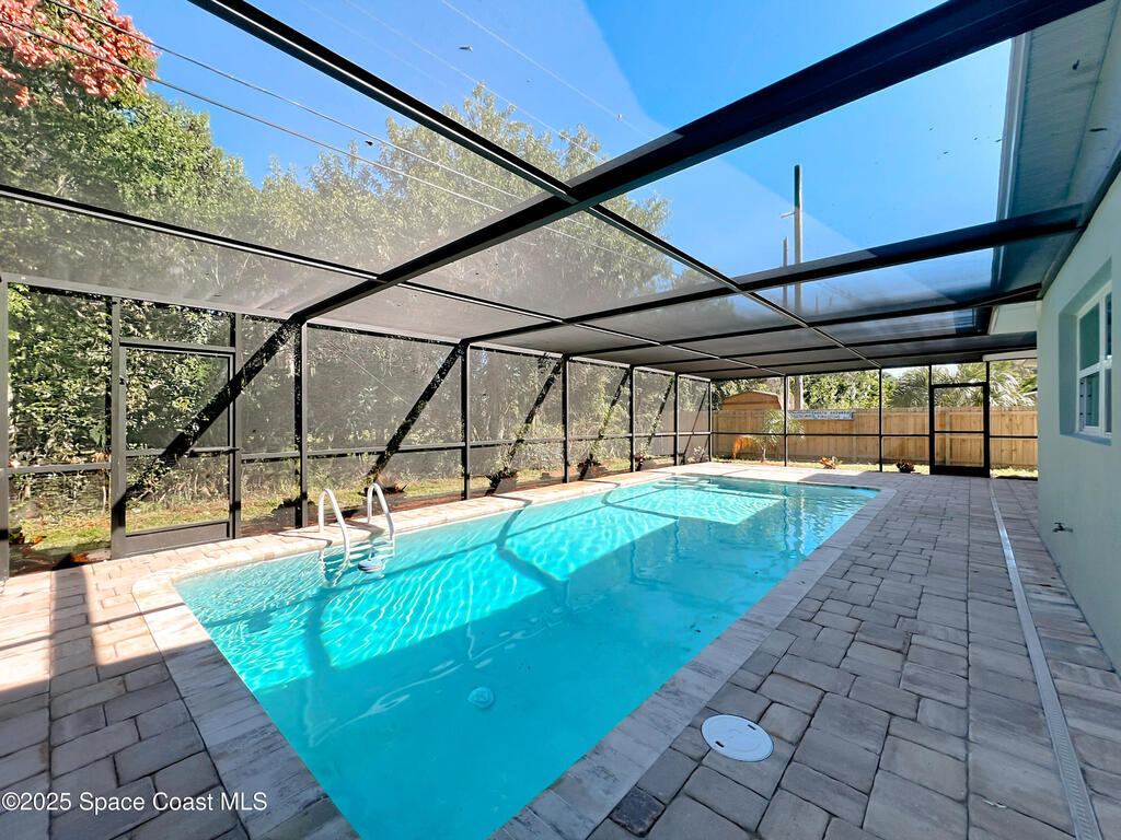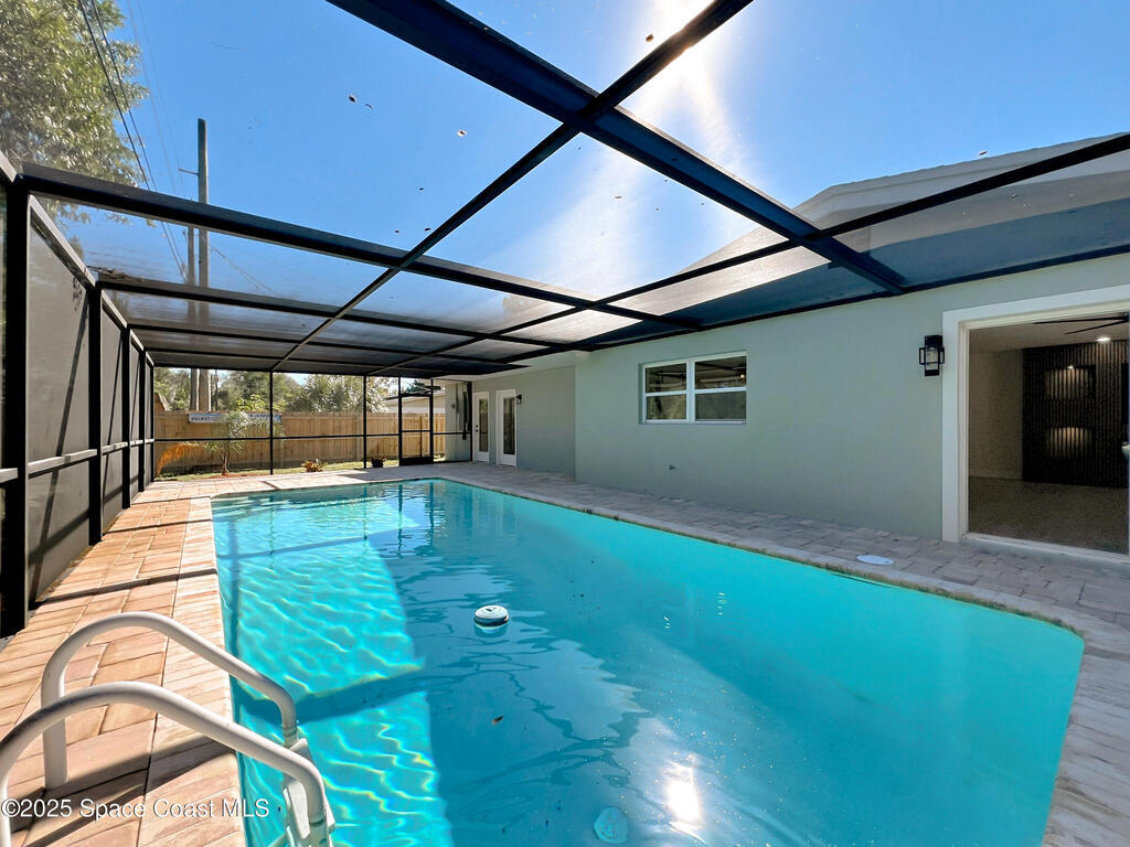 Stunning Fully Renovated Pool Home with Guest Suite in Titusville! Welcome to 614 West Court, a beautifully renovated 4-bedroom, 3 bath pool home tucked away on a private cul-de-sac in the heart of Titusville. This modern residence includes a separate guest or in-law suite, perfect for multi-generational living or hosting visitors. Roof (2023), Impact-rated windows, One NEW HVAC (2025) Second HVAC updated, Smart tankless water heater (2025), Updated electrical panels & plumbing all new (NO CAST IRON), NEW exterior faux stone accent and hardie board siding plus a fully fenced yard. Step inside through a spacious foyer that opens to a seamless, open-concept living and entertaining space. The living room features a custom accent wall with a built-in electric fireplace and warm wood detailing, creating a cozy yet contemporary atmosphere. The chef's kitchen is a showstopper, showcasing quartz countertops, a custom range hood, pot filler, built-in microwave drawer, large single basin sink