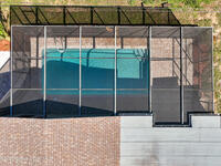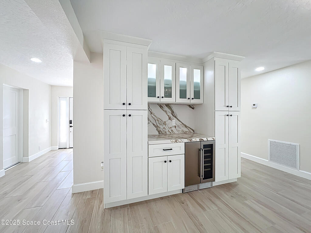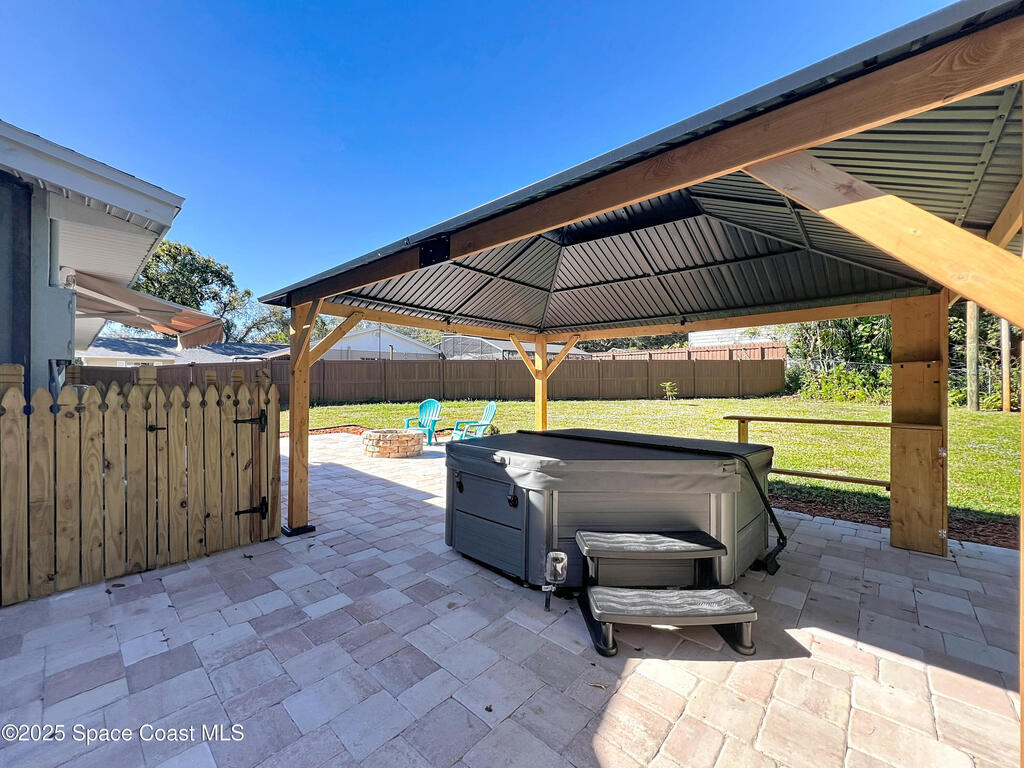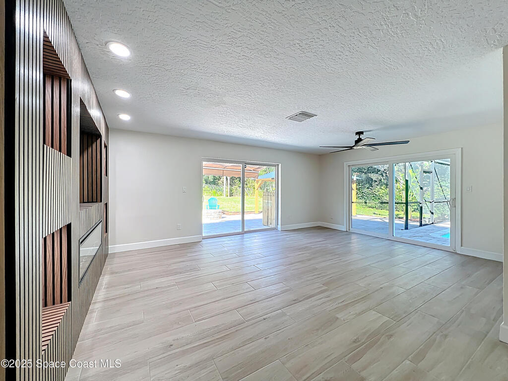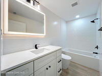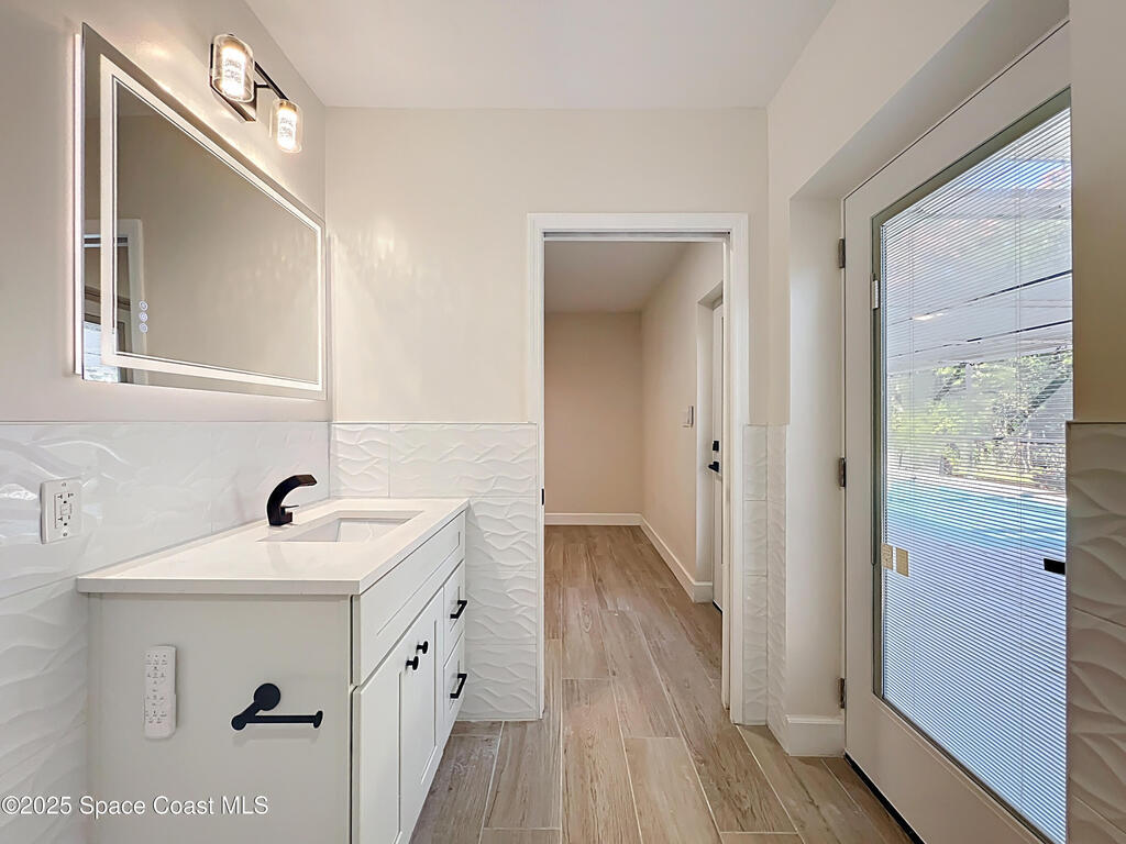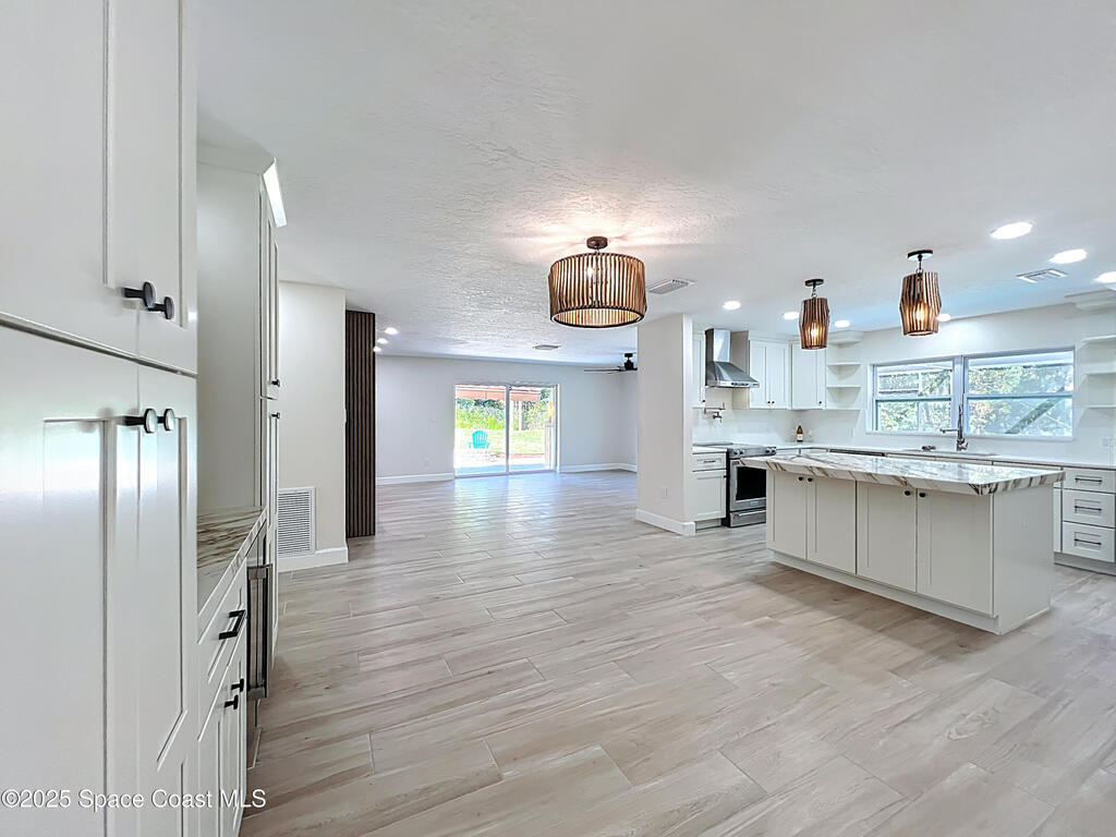 Stunning Fully Renovated Pool Home with Guest Suite in Titusville! Welcome to 614 West Court, a beautifully renovated 4-bedroom, 3 bath pool home tucked away on a private cul-de-sac in the heart of Titusville. This modern residence includes a separate guest or in-law suite, perfect for multi-generational living or hosting visitors. Roof (2023), Impact-rated windows, One NEW HVAC (2025) Second HVAC updated, Smart tankless water heater (2025), Updated electrical panels & plumbing all new (NO CAST IRON), NEW exterior faux stone accent and hardie board siding plus a fully fenced yard. Step inside through a spacious foyer that opens to a seamless, open-concept living and entertaining space. The living room features a custom accent wall with a built-in electric fireplace and warm wood detailing, creating a cozy yet contemporary atmosphere. The chef's kitchen is a showstopper, showcasing quartz countertops, a custom range hood, pot filler, built-in microwave drawer, large single basin sink