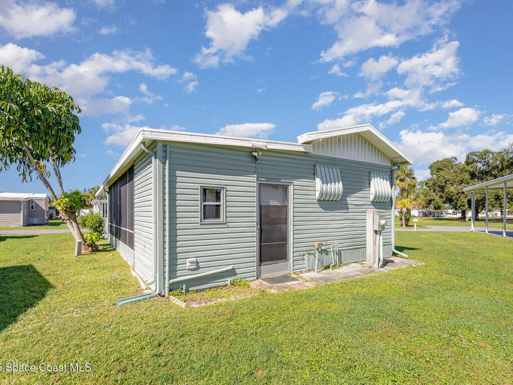 Fantastic 2-bedroom, 2-bath home with carport located on a quiet cul-de-sac in a gated 55+ community. Features include a laundry room with washer and dryer hookups, clam shell and hurricane board protection for select windows, gutters, and a spacious patio with roll-up hurricane shutters. The community offers two pools a heated & non-heated pool, pool tables, dart boards, basketball hoop, bocce ball, shuffleboard, a recreation hall, library, and more. Conveniently located near shopping, dining, and entertainment with quick access to I-95. Move-in ready and waiting for you to make it home!