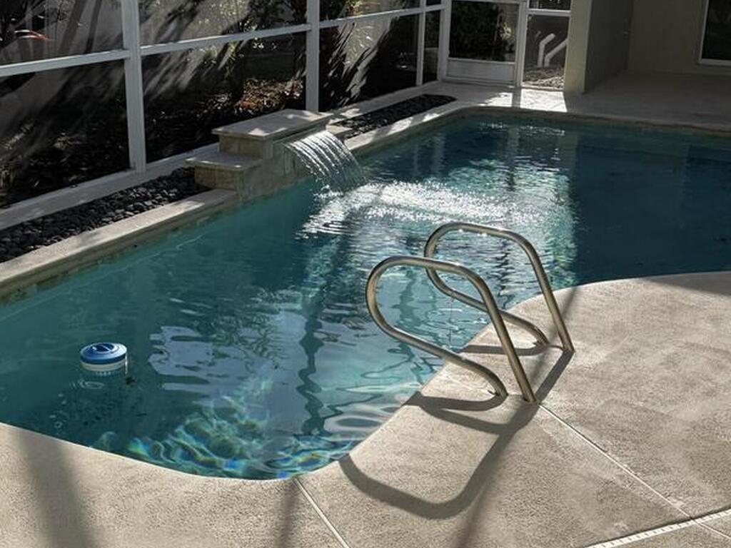 Come & enjoy Mission Lake Villas @ 466 Carmel Dr. One of Suntrees most desirable neighborhoods. Sitting on a serene lake front lot, this block home features 3 bedrooms, 3 full bathrooms, 2 car garage, & courtyard w/ a sparkling heated pool. A unique floor plan, the main home consists of a huge master bedroom & bath along with a generous 2nd bedroom. Across the courtyard is private, the 3rd bedroom, office, or guest suite w/ a full bathroom. Best of all a brand new CLAY TILE ROOF, just completed. A/C 2023, new LVT plank flooring in (2) bedrooms, tile in the rest of the home, NO carpet, fresh new interior paint. Kitchen has stainless steel appliances w/ granite countertops. Tons of natural light w/ 10 ft ceilings throughout. Extra large laundry room w/ sink. HOA covers exterior painting, roof cleaning, & lawn maintenance. Quiet peaceful neighborhood close to everything, golf, shopping, & all the restaurants of Viera less than 10 mins away.Beach 15 minutes away as well. Come see today