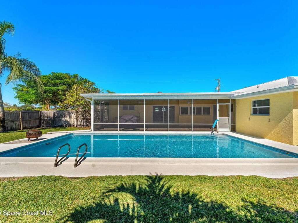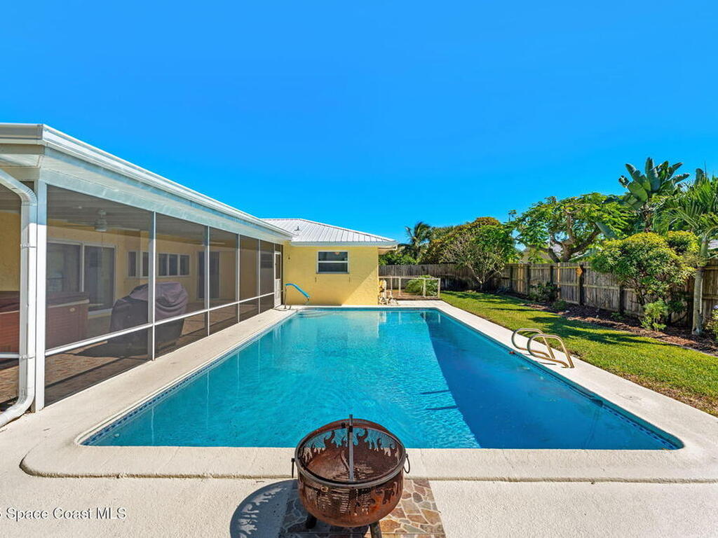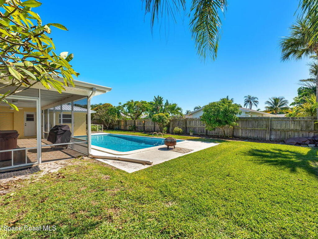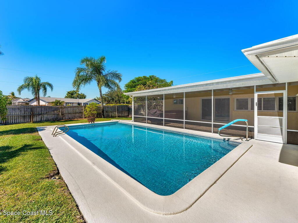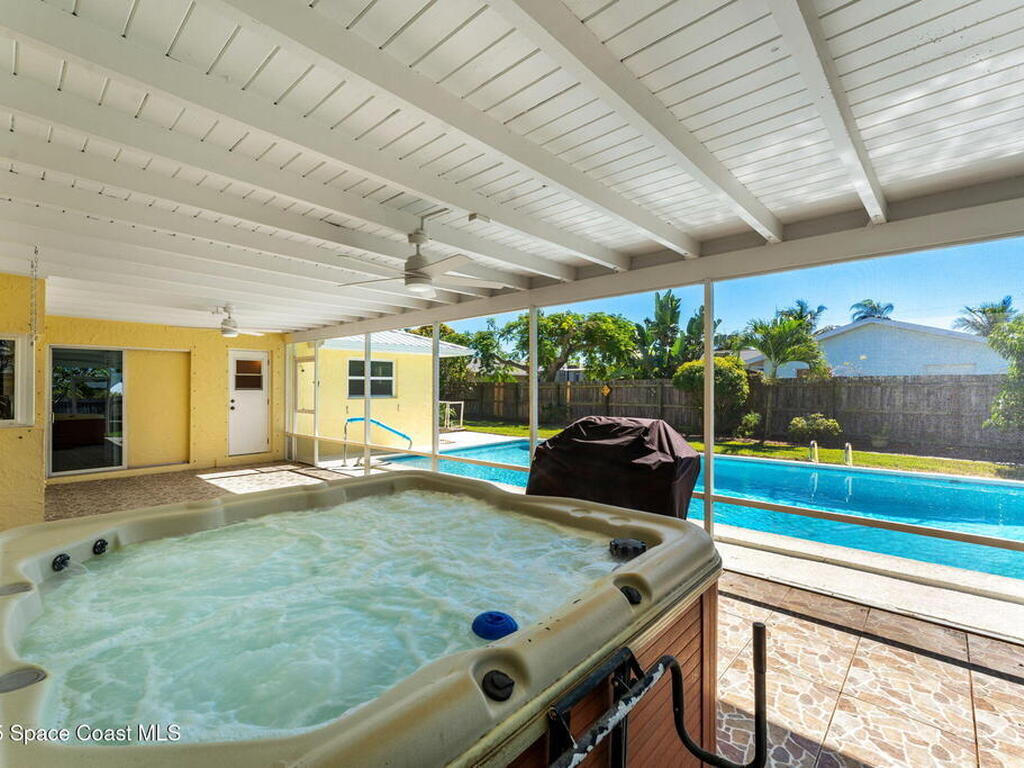 Just minutes from the beach! This spacious Satellite Beach pool home offers a split-floor plan on a large fenced corner lot, perfect for families, kids, and pets. Enjoy the Florida lifestyle with a sparkling solar-heated pool, hot tub, and covered screened porch ideal for entertaining. Featuring impact front windows, hurricane shutters, a 2021 metal roof, 2022 water heater, and 2018 AC. Conveniently located near top-rated Brevard County schools, parks, and beaches.