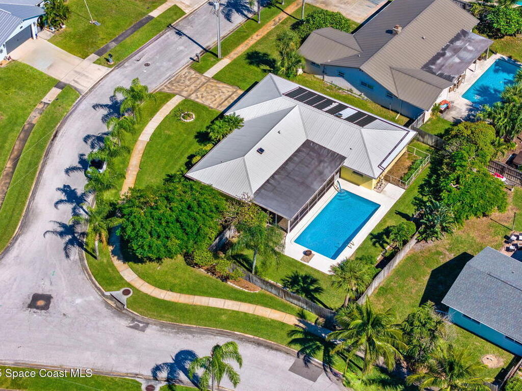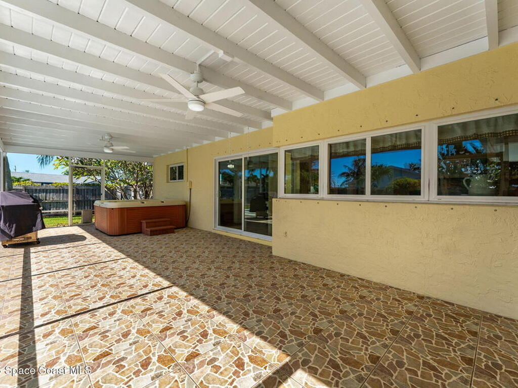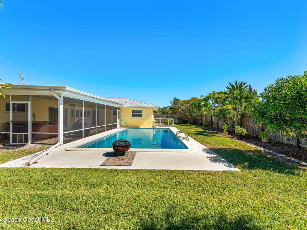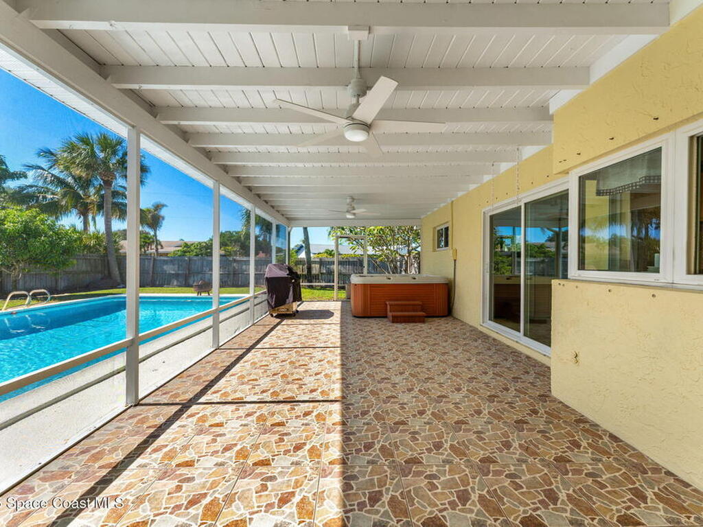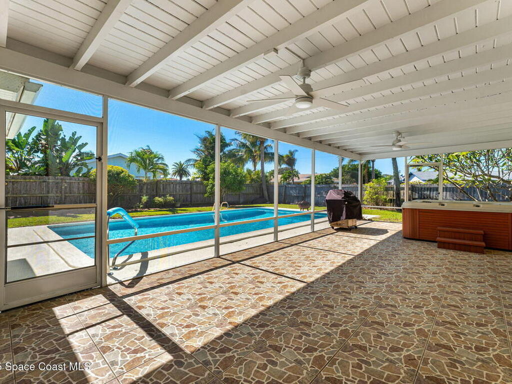 Just minutes from the beach! This spacious Satellite Beach pool home offers a split-floor plan on a large fenced corner lot, perfect for families, kids, and pets. Enjoy the Florida lifestyle with a sparkling solar-heated pool, hot tub, and covered screened porch ideal for entertaining. Featuring impact front windows, hurricane shutters, a 2021 metal roof, 2022 water heater, and 2018 AC. Conveniently located near top-rated Brevard County schools, parks, and beaches.