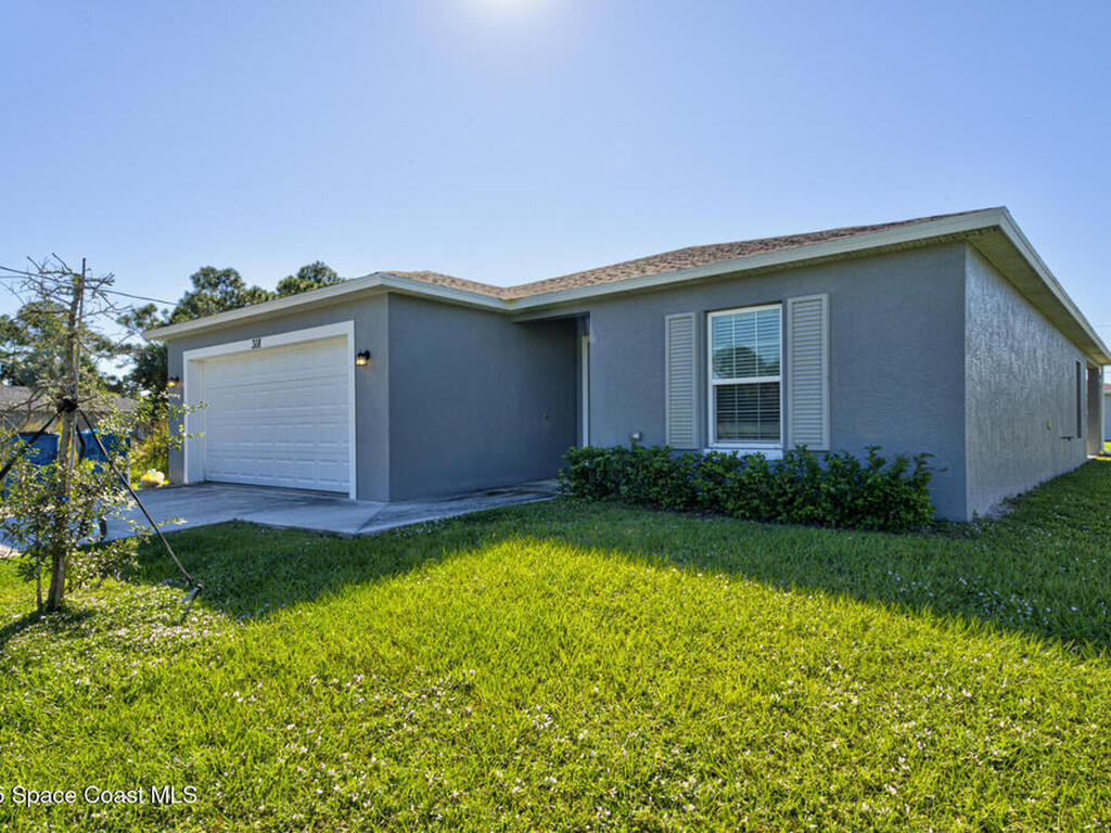 Discover modern comfort in this move-in-ready 4-bedroom, 2-bath home in sought-after Southeast Palm Bay. Built with quality and style, this newer construction offers an open, light-filled layout perfect for both relaxing and entertaining. The spacious kitchen features contemporary finishes, ample cabinetry, and a large island overlooking the living area. The primary suite includes a walk-in closet and a private bath with dual sinks. Enjoy peace of mind with newer systems, energy-efficient design, and low-maintenance living. Conveniently located near shopping, schools, parks, and just a short drive to the beach--this home blends modern living with everyday convenience. Move right in and start your next chapter!