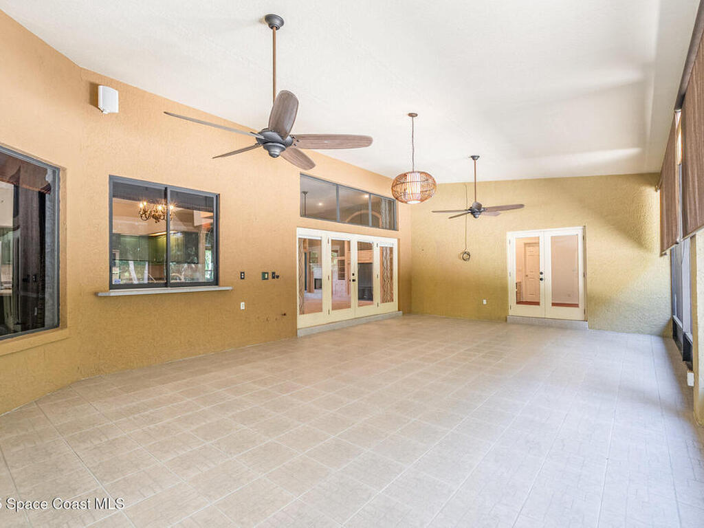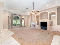 Spacious 4-bedroom, 3-bath split-plan home offering over 3, 000 sq. ft. of comfortable living space. The open-concept layout features a center-island kitchen with an eat-in area, perfect for family gatherings or entertaining. A cozy fireplace anchors the main living area, creating a warm and inviting atmosphere. Enjoy both a large screened porch and an open-air paver patio overlooking a peaceful wooded backyard -- ideal for relaxing or outdoor dining. Additional highlights include a tile roof, circle driveway, built-in safe, and an indoor laundry room for everyday convenience. A truly inviting home combining generous space, thoughtful design, and natural surroundings. Close to shopping, entertainment, waterways, and interstates plus NASA, SpaceX, BlueOrigin, ULA, etc. are a short commute.
