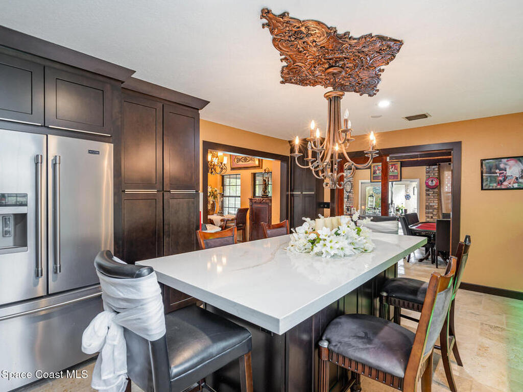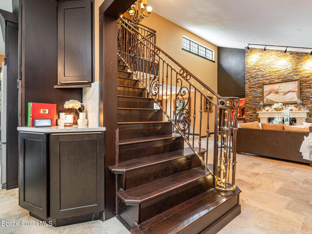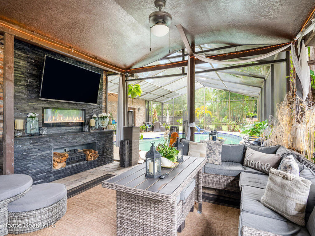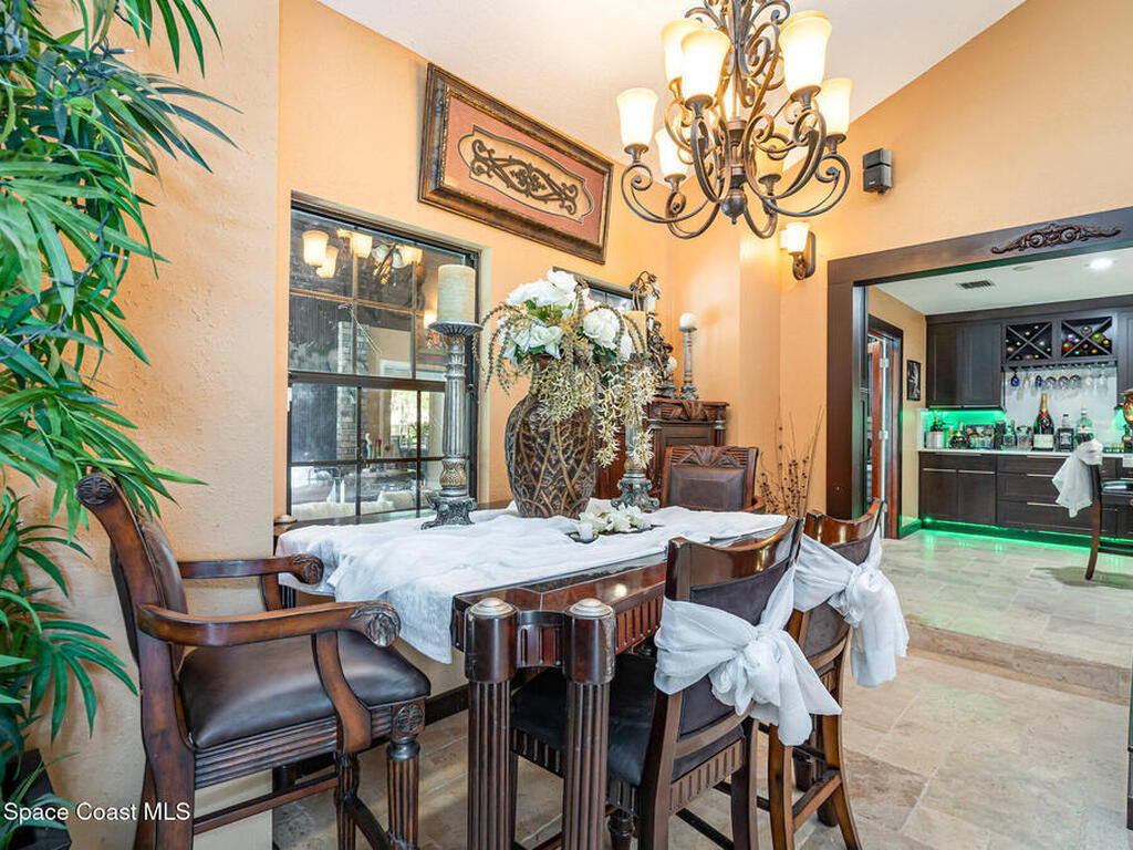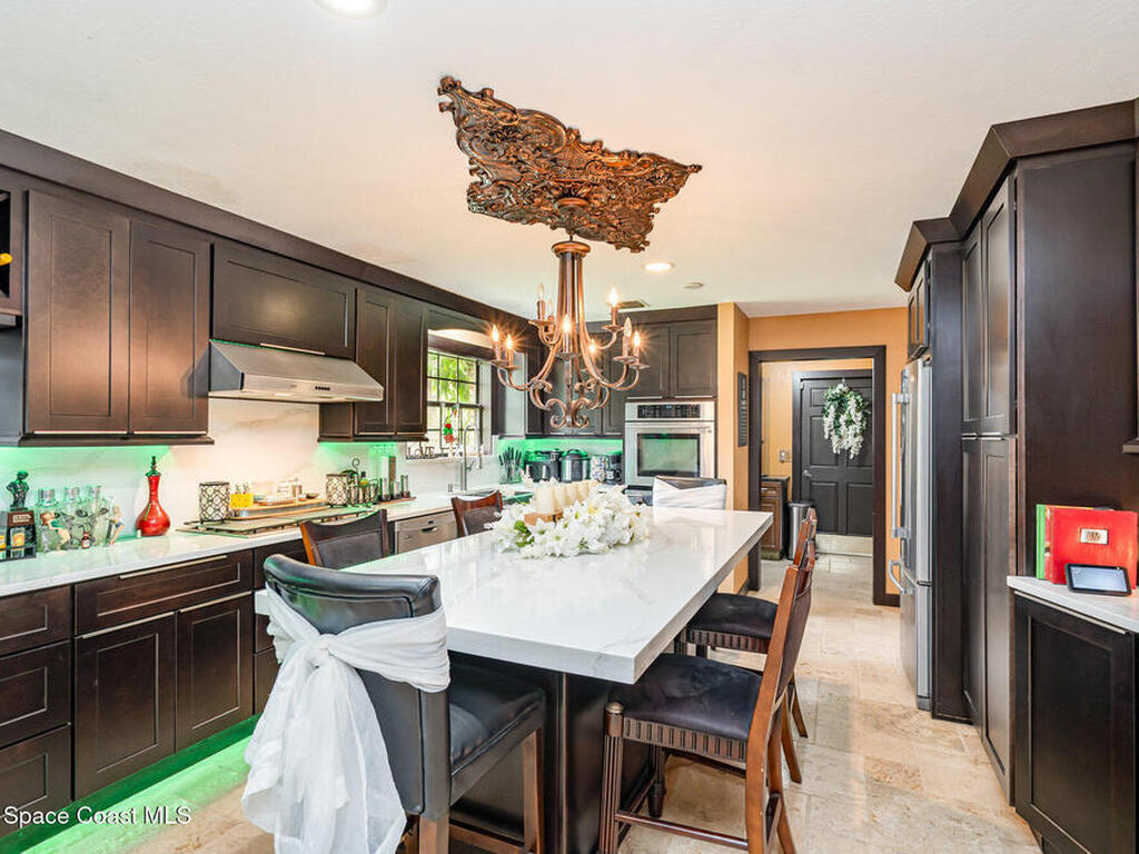 Welcome to your luxurious Florida Oasis. Discover timeless elegance and resort-style living in this meticulously designed West Melbourne sanctuary. From travertine marble floors and pool deck to a gourmet kitchen, home features onyx, granite, and quartz finishes, every detail reflects luxury and tranquility. Step outside to a stunning pool, outdoor kitchen, and lush oversized yard with fruit trees--perfect for entertaining or unwinding. The Florida room offers a cozy fireplace and bar, while the lavish first floor primary suite features dual vanities, a soaking tub, and walk-in shower. This is more than a home--it's a lifestyle of elegance, comfort, and tropical charm.