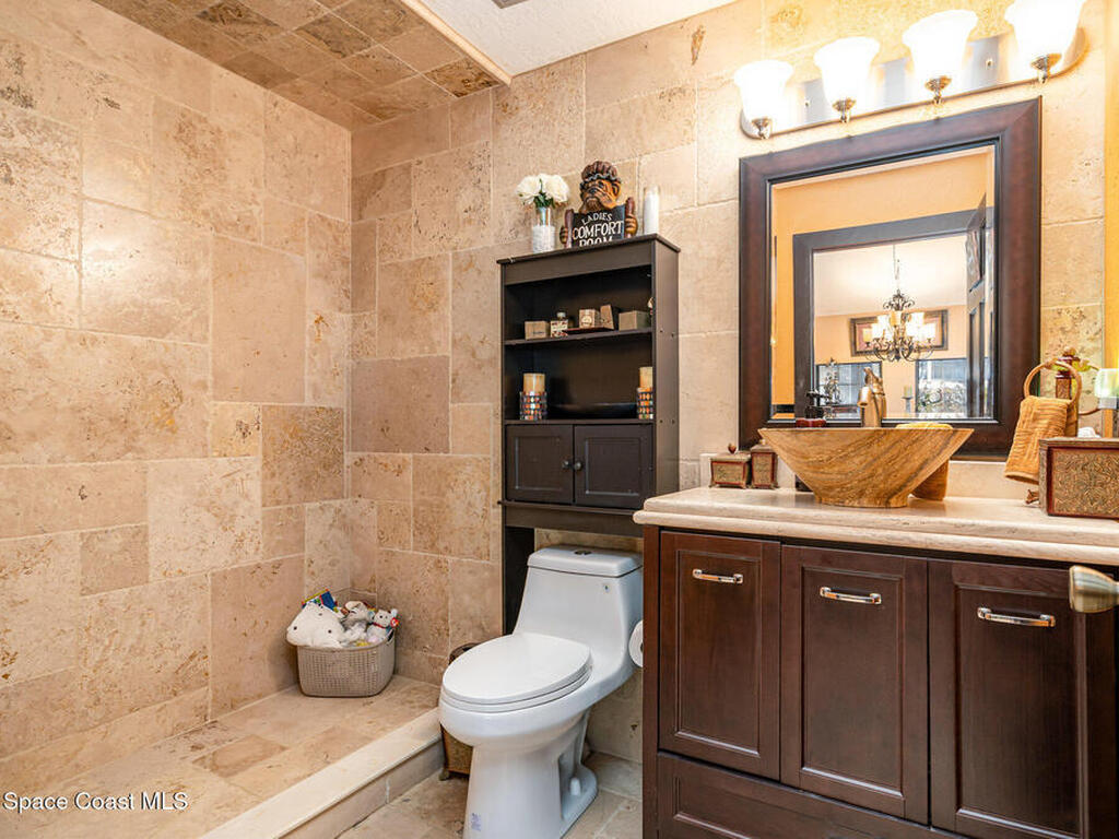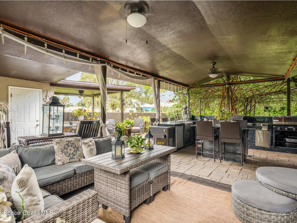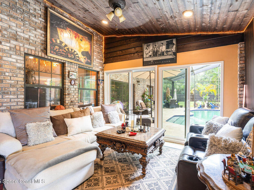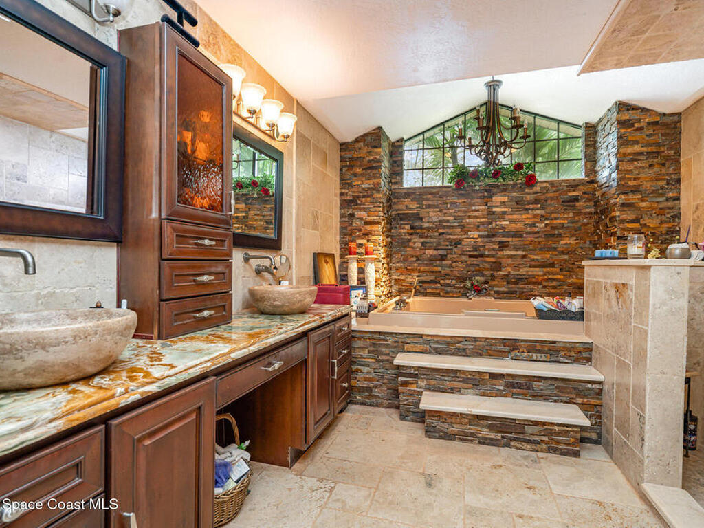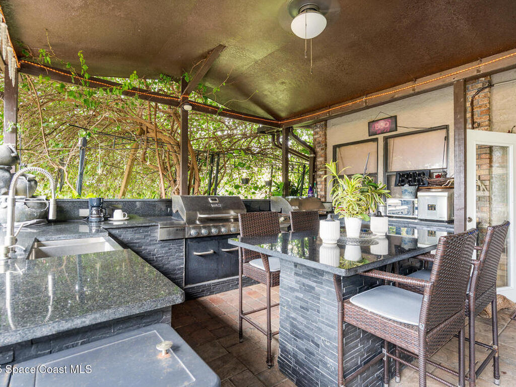 Welcome to your luxurious Florida Oasis. Discover timeless elegance and resort-style living in this meticulously designed West Melbourne sanctuary. From travertine marble floors and pool deck to a gourmet kitchen, home features onyx, granite, and quartz finishes, every detail reflects luxury and tranquility. Step outside to a stunning pool, outdoor kitchen, and lush oversized yard with fruit trees--perfect for entertaining or unwinding. The Florida room offers a cozy fireplace and bar, while the lavish first floor primary suite features dual vanities, a soaking tub, and walk-in shower. This is more than a home--it's a lifestyle of elegance, comfort, and tropical charm.