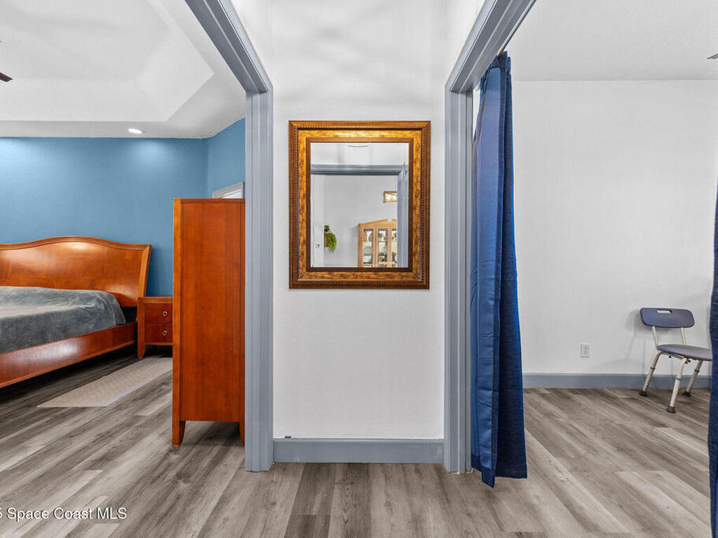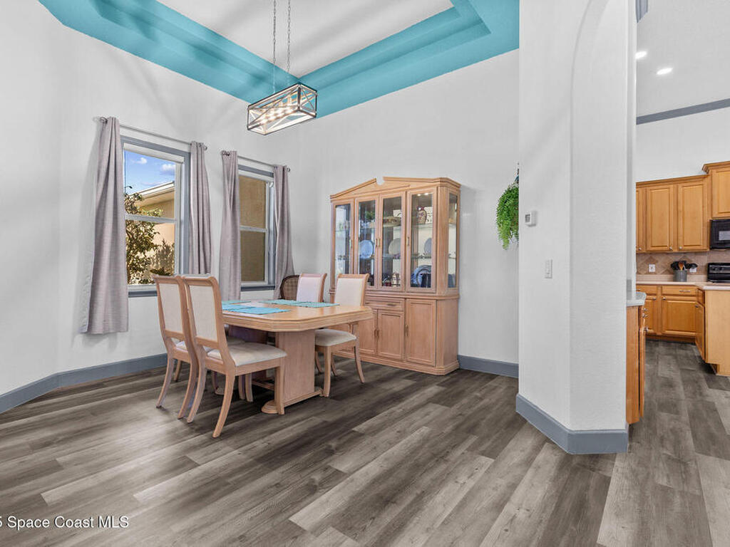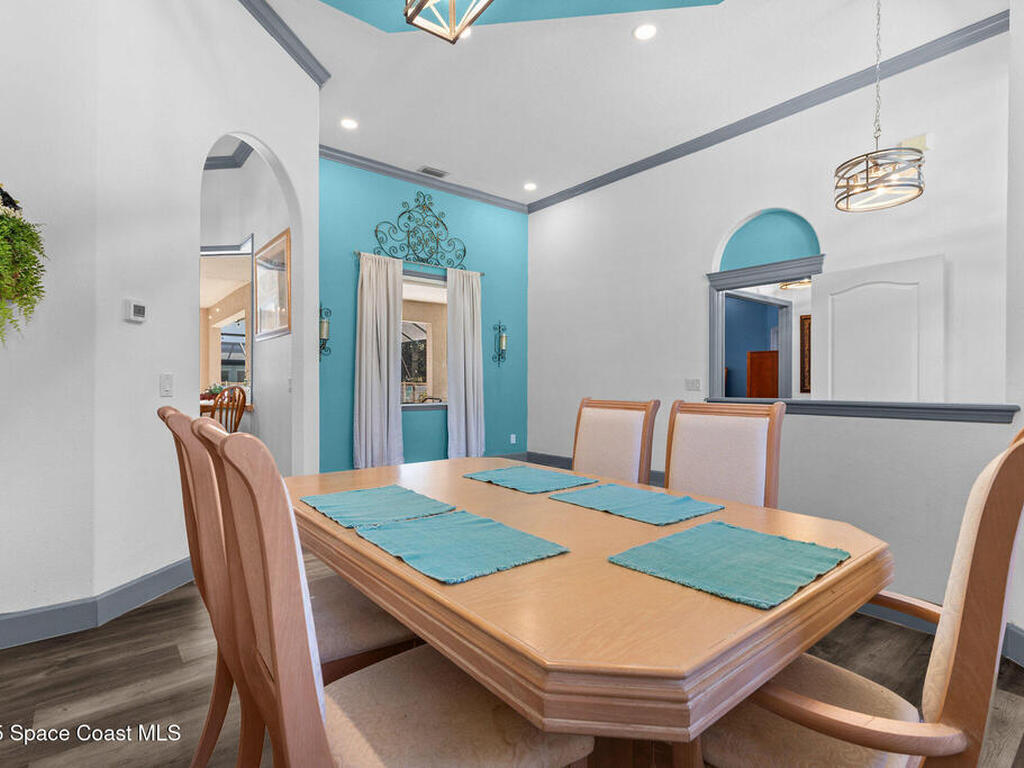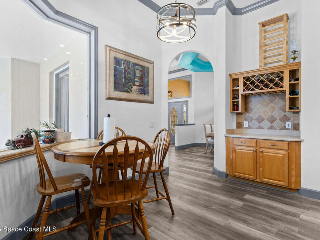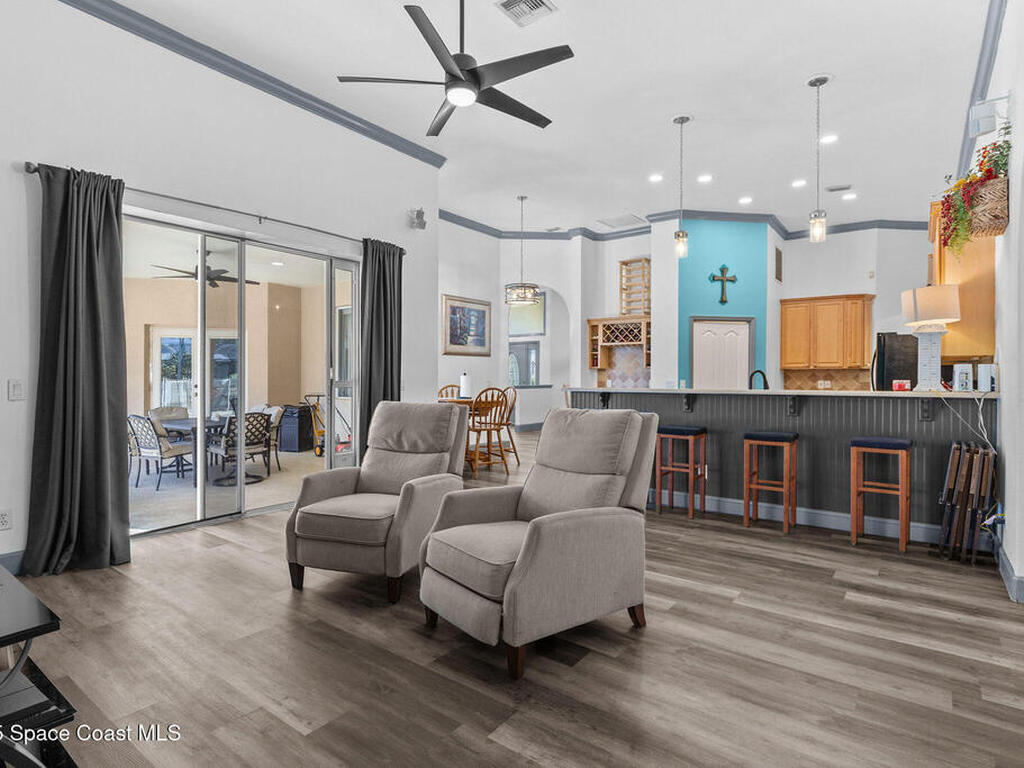 Spacious 5-Bedroom Home with Office and 3-Car Garage in South Merritt Island - Well maintained 5-bedroom, 4-bath home offers 2, 764 sq. ft. of comfortable living space. Inside you'll find tall ceilings, an open-concept layout with a split floor plan, and new vinyl flooring throughout, creating a light, modern, and cohesive feel. The kitchen is the centerpiece of the home, equipped with a large island, expansive countertop space, and dedicated coffee, breakfast, and wine bar areas--ideal for both daily living and entertaining. The primary suite features: A private office/sitting room, Two walk-in closets and a spa-style bathroom Two guest bedrooms are connected by a Jack & Jill bathroom, while the upstairs suite is perfect for guests, extended family, or a quiet hobby space. The 3-car garage offers plenty of room for vehicles, storage, or a workshop. Additional features include a 2019 roof, security system, crown molding, built-in pest control system, and easy attic access for storage.