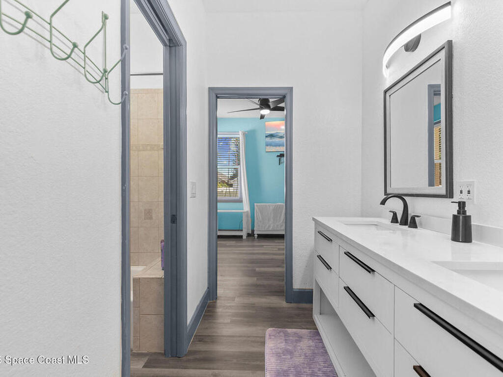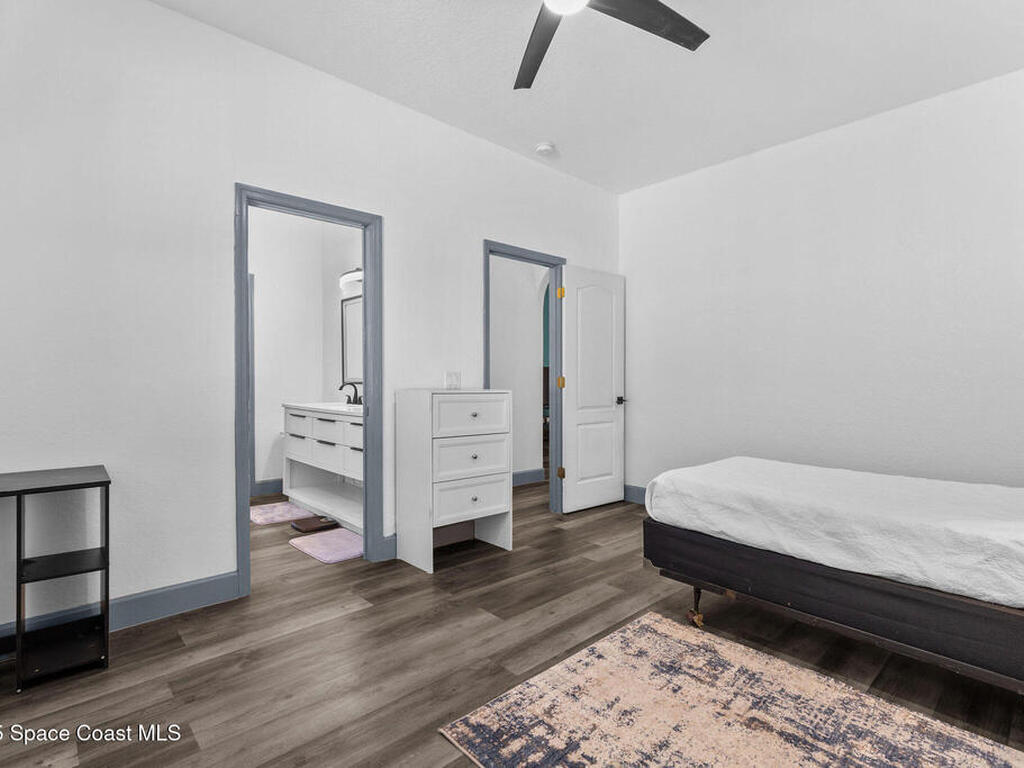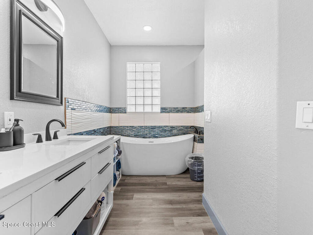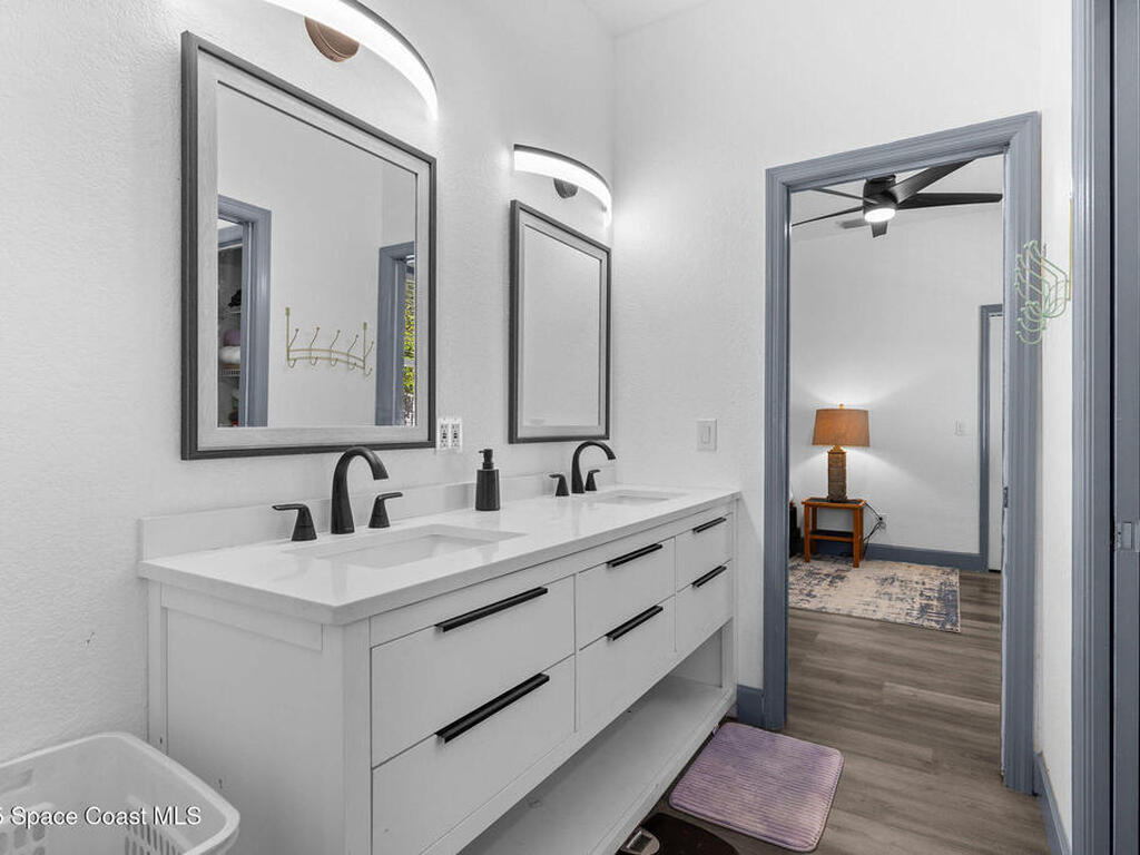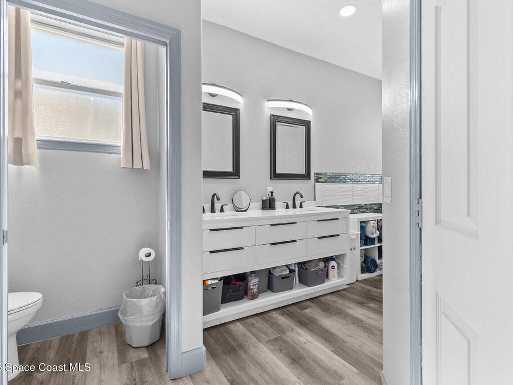 Spacious 5-Bedroom Home with Office and 3-Car Garage in South Merritt Island - Well maintained 5-bedroom, 4-bath home offers 2, 764 sq. ft. of comfortable living space. Inside you'll find tall ceilings, an open-concept layout with a split floor plan, and new vinyl flooring throughout, creating a light, modern, and cohesive feel. The kitchen is the centerpiece of the home, equipped with a large island, expansive countertop space, and dedicated coffee, breakfast, and wine bar areas--ideal for both daily living and entertaining. The primary suite features: A private office/sitting room, Two walk-in closets and a spa-style bathroom Two guest bedrooms are connected by a Jack & Jill bathroom, while the upstairs suite is perfect for guests, extended family, or a quiet hobby space. The 3-car garage offers plenty of room for vehicles, storage, or a workshop. Additional features include a 2019 roof, security system, crown molding, built-in pest control system, and easy attic access for storage.