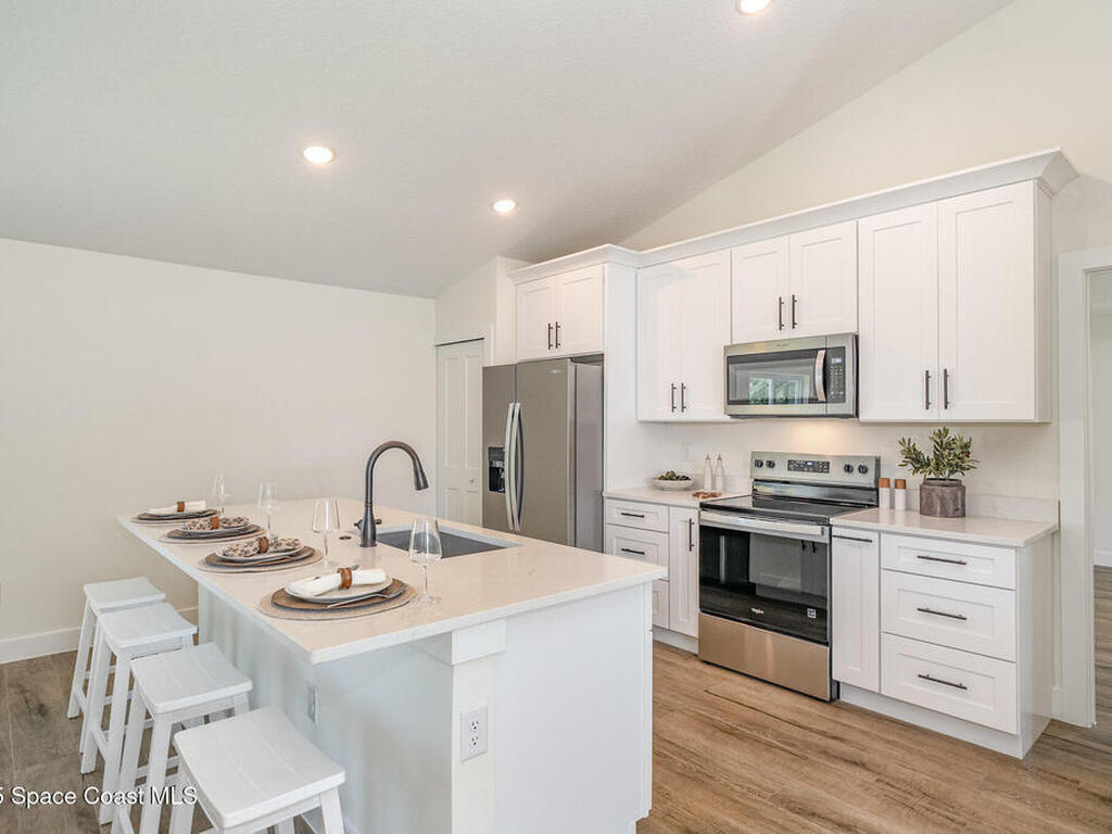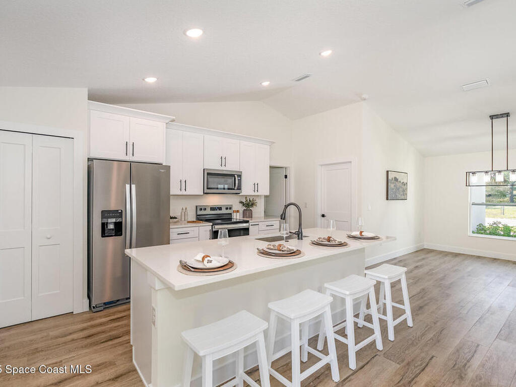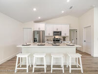 Brand NEW and READY for you! Here's your chance to own a beautiful brand-new home featuring 4 bedrooms, 2 bathrooms, and a 2-car garage! This home showcases a spacious open-concept kitchen complete with a large island, elegant quartz countertops, and stainless steel Whirlpool appliances, including a range, refrigerator, dishwasher, and above-range microwave. The kitchen is beautifully designed with white shaker style cabinets and striking 42'' upper cabinets, alongside plank tile flooring throughout the home!The generous master suite includes a roomy walk-in closet and a luxurious bathroom featuring a freestanding tub, a beautifully tiled walk-in shower, and a double sink vanity. Other notable features include ceiling fans in all bedrooms and the living room, 5 1/4'' baseboards, impact windows, inside laundry room, irrigation system and fenced backyard. Don't wait--schedule your showing today!