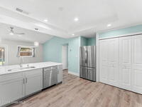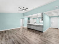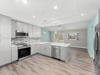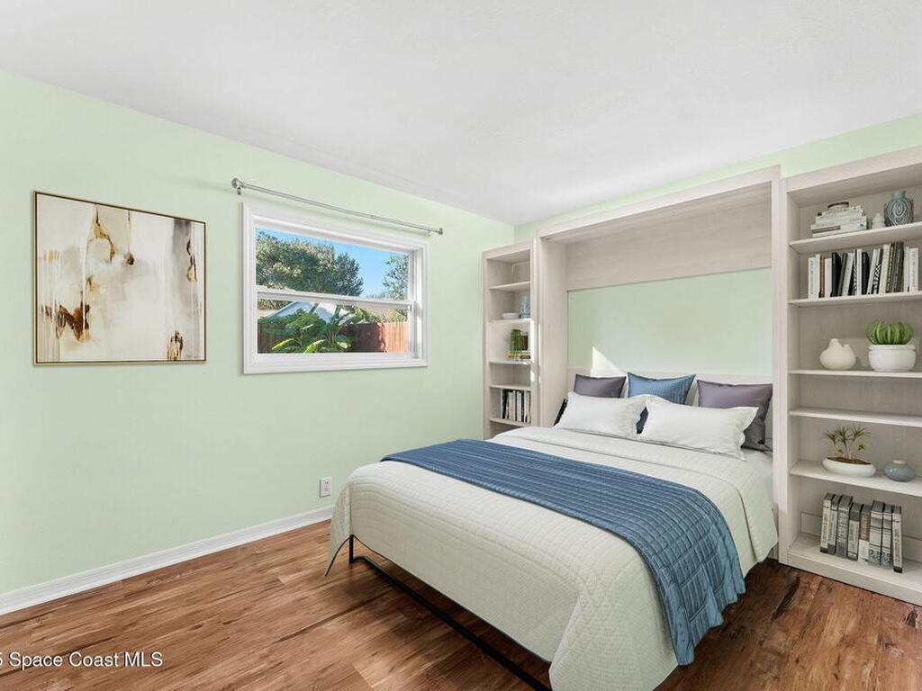 Looking for your first home or to downsize? This home is move-in ready for you to spend years in secure comfort. Beautifully updated open living and kitchen with so much storage and space for counter seating is ideal for modern living. With impact-rated windows, brand new front door, A/C 2023, Roof 2017, WH 2019, all the insurance items are in place for an affordable policy and ownership costs low! A Murphy bed in the back bedroom maximizes the use of the bright room for office and guests. The privacy fence will keep your pets or children safe with room to enjoy your outdoor space in this centralized community.