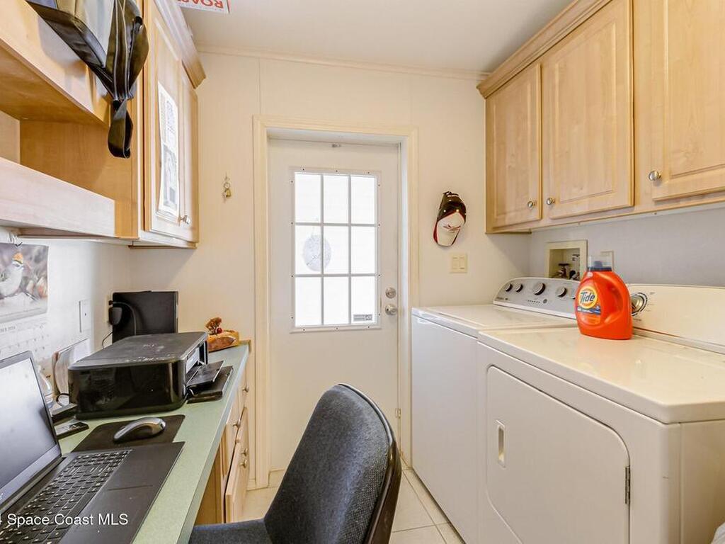 Look at this senior community where you own your land. This well maintained home the perfect place to retire. This home has a brand new roof, june 2025...This 2/2 home will be great for snowbirds or year round living.Watch rocket launches from home or sit on the back patio enjoying the wildlife. Your HOA dues cover cable, internet, lawncare and security.Community clubhouse has many activities, pickleball, tennis or shuffleboard.Close to beaches and shoppingDon't wait, you may be too late !