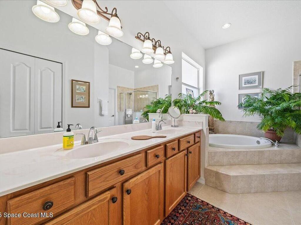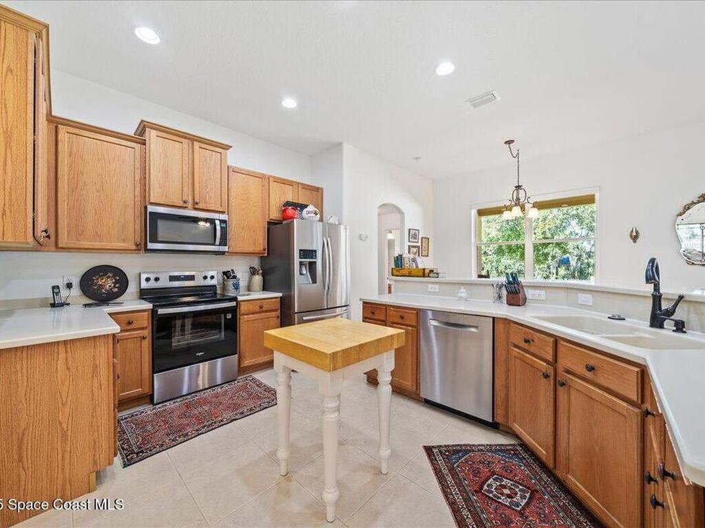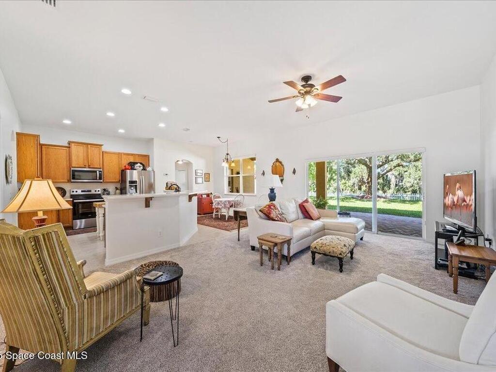 The perfect home for any family! Presenting this meticulous maintained Move in Ready Home in a Gated Community. Beautiful & Welcoming entrance in this 3 bedroom, 2 bath, 2 car garage home. Enjoy large living room / flex space, dining room, A large family room with triple slider door to oversized porch with extensive brick pavers. The Spacious Kitchen offers 42'' wood cabinets with bump stagger design and crown, step up breakfast bar, overlooks the nook area with serene views of backyard. Enjoy a split bedroom plan, owners suite has slider door to porch, a large deluxe bathroom with soaking tub, separate tile shower, dual sink vanity and large walk in closet. Other: roof 2024, new interior paint, Serene views, Dimmers on lightswitch, hurricane panels, All appliances convey, Custom Shades by 3-day blinds, Canal view, private / quiet street with sidewalks, Arch windows, Tall-flat ceilings, Carpet 2024, Lavish landscape, beautiful views, quiet, private, a real Gem of a Home!