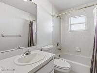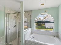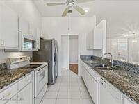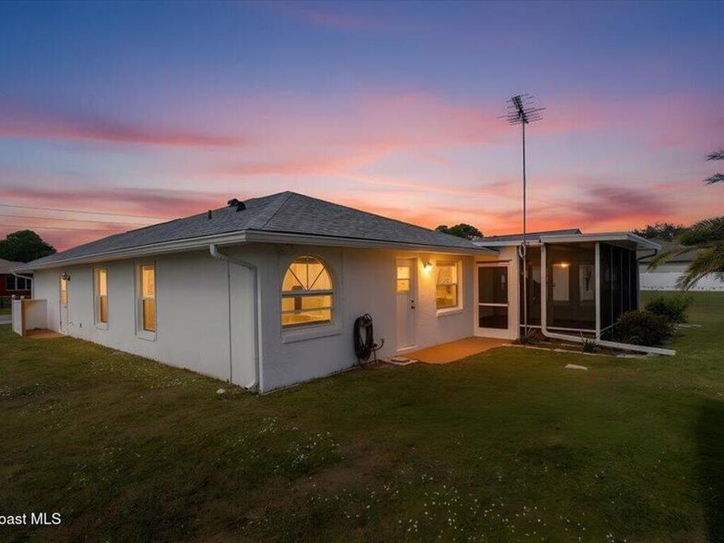 Welcome to this inviting Palm Bay home, featuring an open-concept living space with beautiful real granite in the kitchen and an effortless flow throughout. The bright breakfast nook provides a warm spot to start your day, while the primary bedroom offers generous space and soft, natural light. The primary bath includes both a walk-in shower and a relaxing soaking tub framed by an elegant arched window. A well-kept secondary bathroom continues the home's bright, fresh feel. Enjoy a spacious backyard with room to roam, complete with an electrically equipped shed. The screened porch offers a breezy place to unwind while overlooking the tropical greenery, and the in-unit laundry leads directly into the garage with removable sliding screen doors for added convenience. This well-maintained home blends comfort, functionality, and Florida living at its best.
