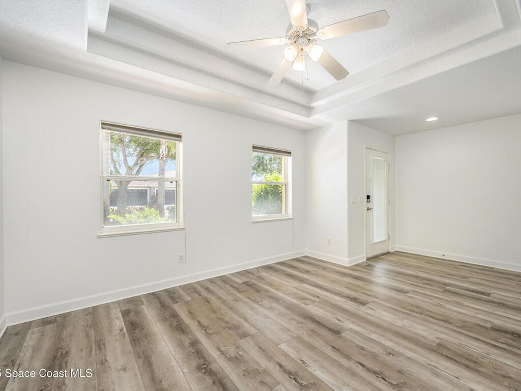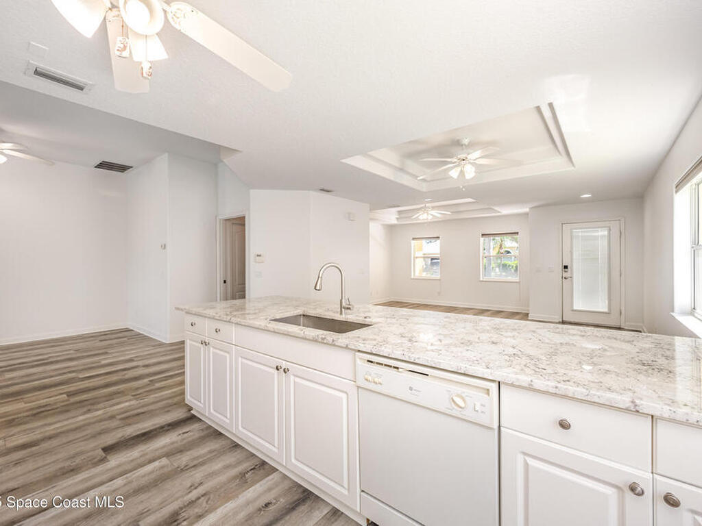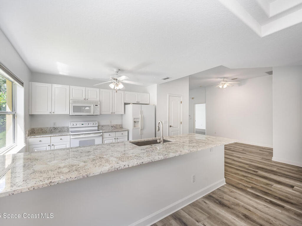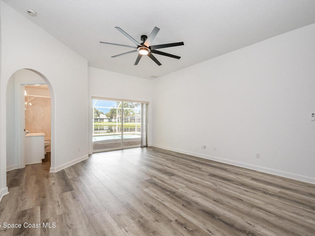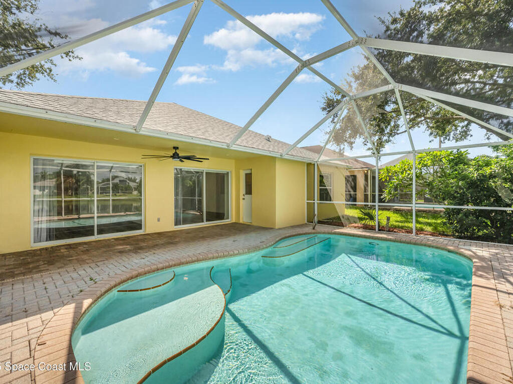 Pool Home in the prime location of Viera East. OCCUPY IMMEDIATELY. Just painted and new luxury vinyl plank flooring installed and ready for new tenants. A 4 minute walk via the sidewalks to A-Rated Ralph Williams Elementary School.Step inside and be the first tenants to enjoy the updated kitchen island, new sink and new granite counters. This spacious layout boasts tall ceilings, two living spaces, 3 bedrooms, 2 baths including a convenient pool bath. Your primary suite features two walk-in closets, plenty of space in the bathroom, walk-in shower, garden tub, and two vanities. Peaceful lake views and screened patio is the perfect way to relax and enjoy the Viera Florida lifestyle. Somerville is very convenient to all things Viera, including golf courses, shopping, dining, and healthcare. 2 convenient ways to access Us-1 to visit beaches, or I-95 should you want to visit Orlando, or take a cruise out of Port Canaveral. This is one of the most central locations in Brevard, schedule no