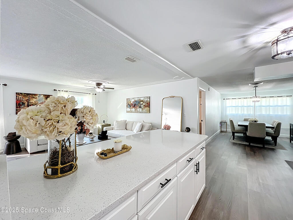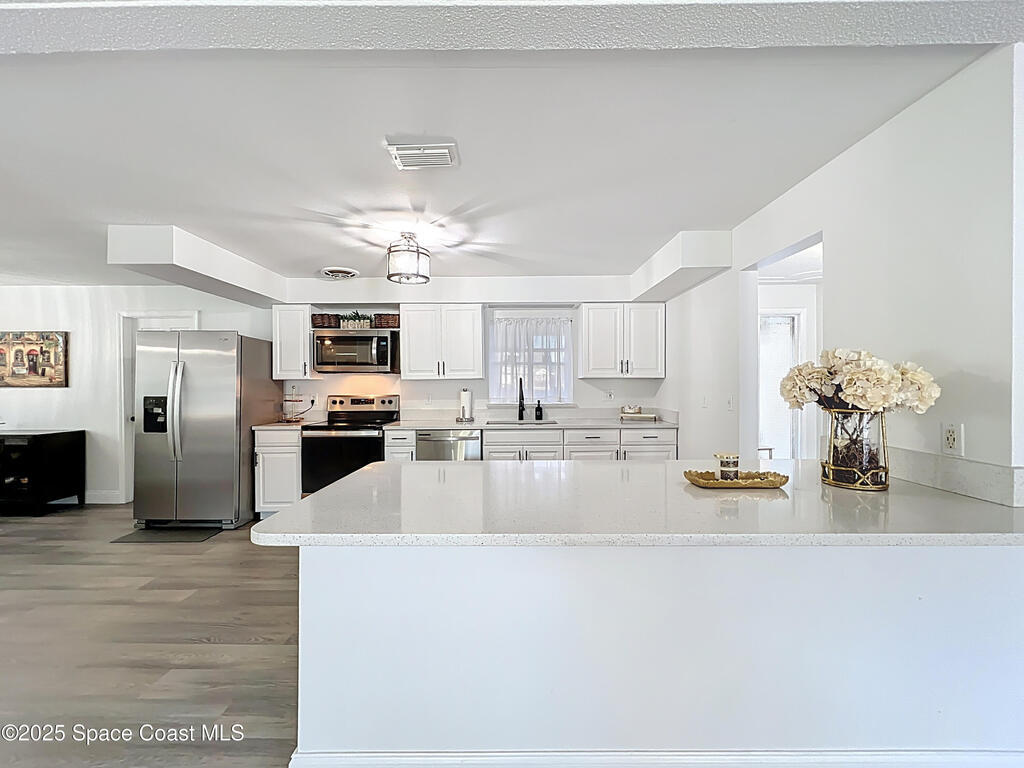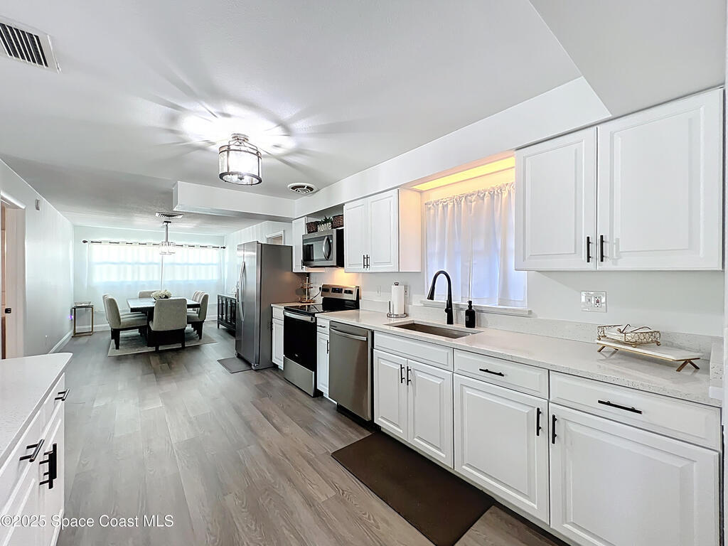 Please submit your highest and best offers by Monday, Nov 10th. Renovated Block Home in Royal Oak Golf & Country Club! Welcome to 3431 Worsham Place, a beautifully renovated 3 BR / 2 BA home tucked away on a quiet cul-de-sac with NO HOA, sitting on almost a 1/4-acre lot! Modern upgrades include a metal roof (2023), impact-rated windows (2024), updated electrical panel, HVAC (2017), new white vinyl fence (2025), and a 2-car garage. Enjoy bright open-concept living and a chef's kitchen with quartz countertops, white cabinets, new stainless-steel appliances, and custom lighting. Luxury vinyl floors throughout, no carpet! The primary suite features a walk-in shower and closet, while secondary bedrooms are spacious and light-filled. Step outside to a private fenced backyard with outdoor seating and room for a pool. Refresh driveway 11/5. Minutes from Parrish Medical Center, Kennedy Space Center, SpaceX, Blue Origin, and Playa Linda Beach--experience the best of Titusville living!