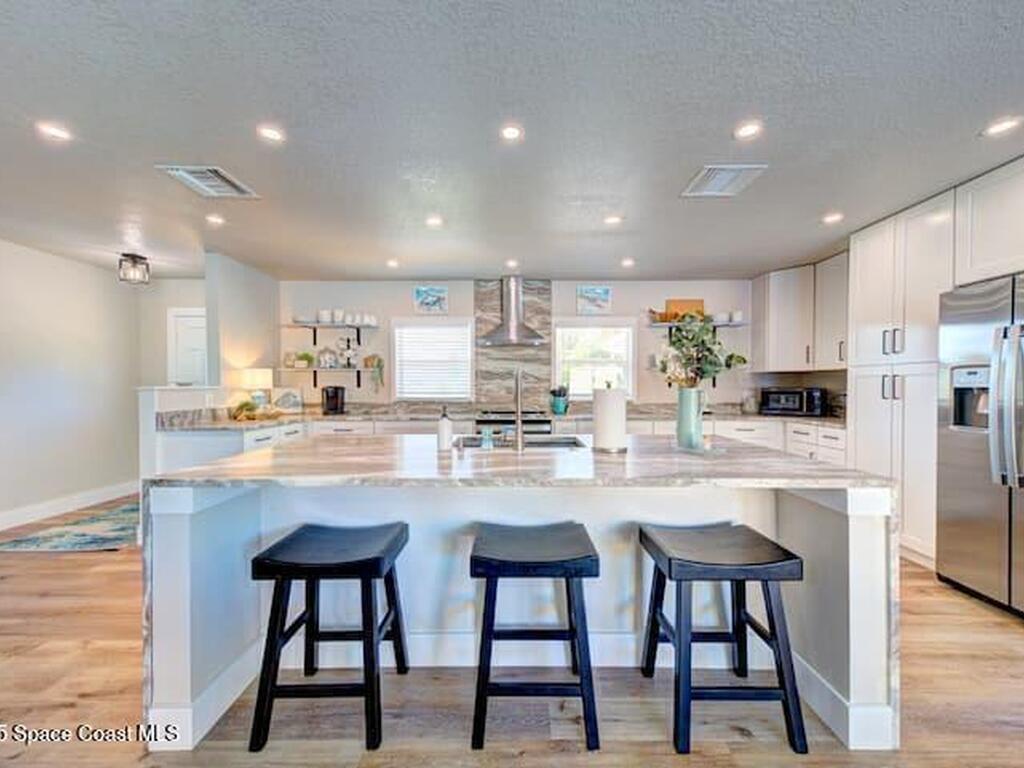 Discover coastal living at its finest in this stunning Cocoa Beach home. Located on a spacious lot, the property boasts a beautifully landscaped yard with a heated swimming pool. Inside, enjoy a well-designed, floor plan featuring a large modern kitchen that creates an inviting space to entertain. The open, bright and airy living room, with multiple bedrooms offers ample space and comfort. With its prime location near local amenities and beaches, this home offers a superb retreat for relaxation and leisure. Home comes fully furnished with everything you need!