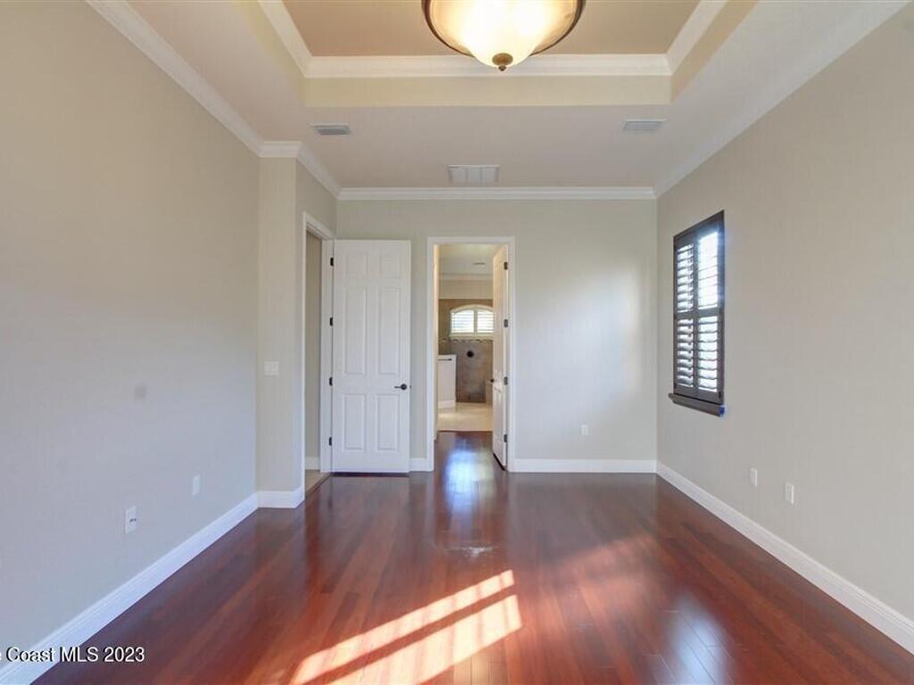 AVAILABLE NOW!! Phenomenal 4-bedroom, 3 bath plus office executive home in the gated community of Colfax Landing in the heart of Viera. Stunning water views from most rooms. Spacious kitchen with large pantry, island, breakfast bar and lovely breakfast nook. Owner suite features custom vanities, tub and walk-in shower. Wood floors in all bedrooms. 100+ sq. ft. screened patio with paver flooring is perfect for relaxing and taking in the views. Tray ceilings, crown molding, custom wall finishes, plantain shutters, granite counters and more... A+ schools and close to everything. Long Term Lease opportunity!