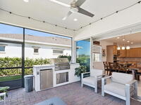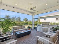 Have you seen the Wilford? Probably not -- it's rarer than a Florida winter sweater. The builder teased us with this floor plan for about five minutes and then took it off the market, making this 3-bedroom, 3-bath beauty a true unicorn in the neighborhood. Privacy? You've got it. The guest suite even has its own en-suite, so your in-laws might never leave (sorry about that). Every inch has been designed with intention -- even the cords are hiding in the walls like they're in witness protection. The primary suite? Massive. Sun-soaked. Tray ceilings. Custom closet straight out of a home magazine. The kitchen? Let's just say Gordon Ramsay would move in -- giant granite island, 42'' cabinets with pull-outs, a 5-burner gas cooktop, vented hood, and every shiny stainless thing you could want. Open the sliders and boom -- your outdoor kitchen's ready to host every BBQ, tailgate, or margarita Monday. And don't even get me started on Twin Lakes -- it's like summer camp for adults.